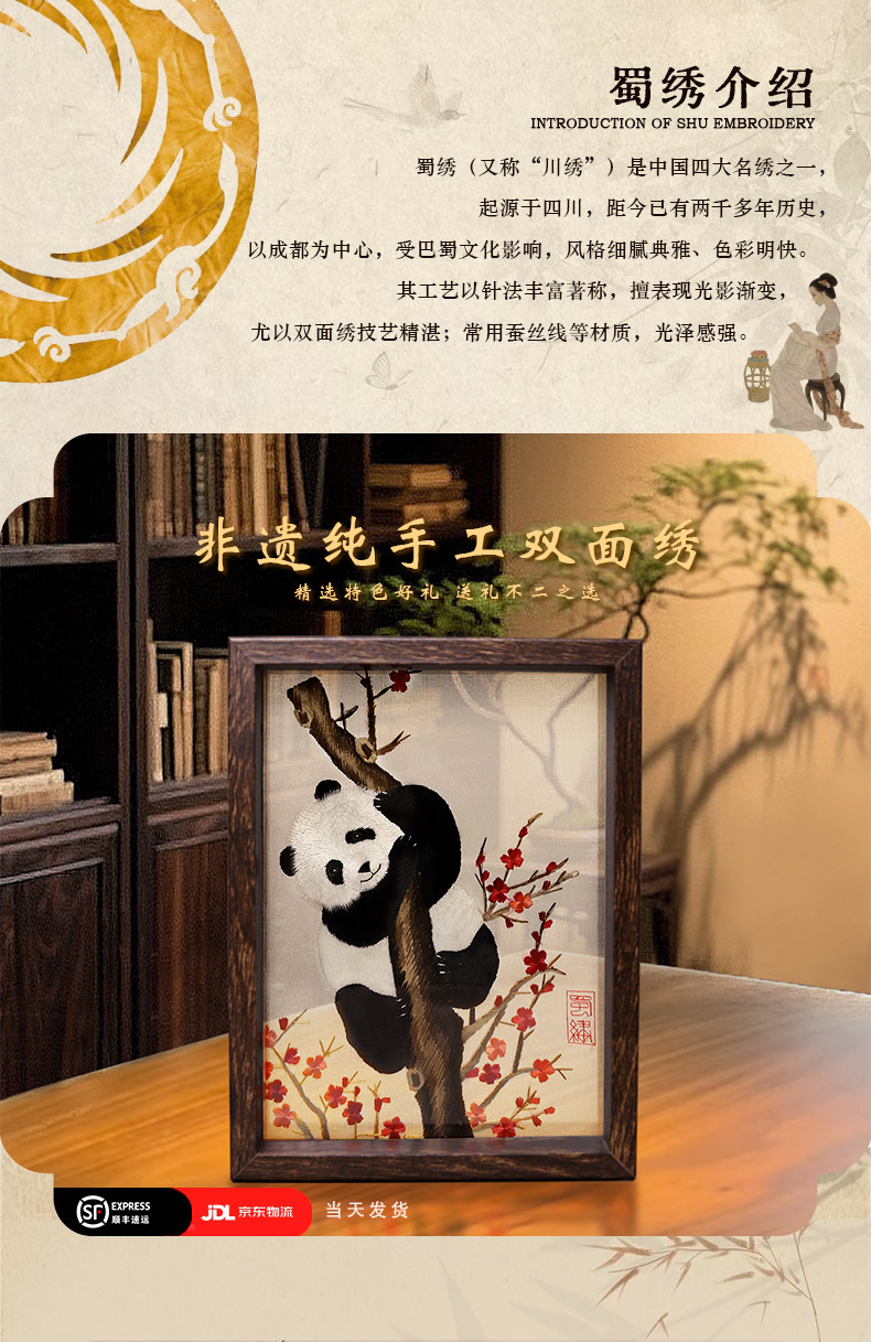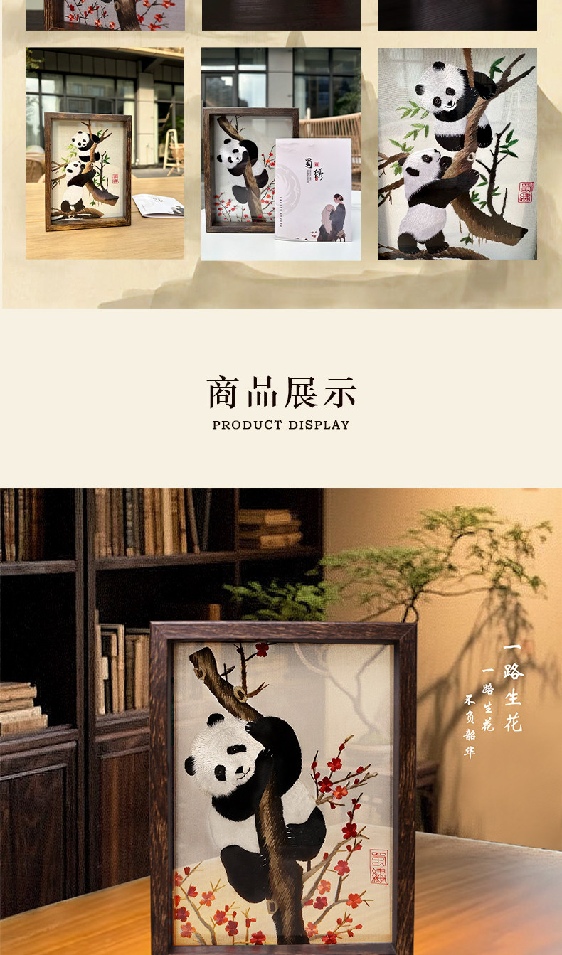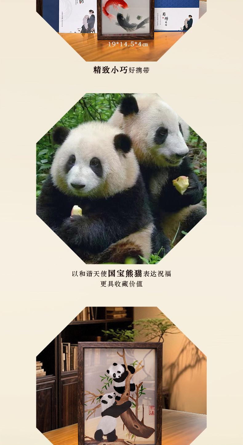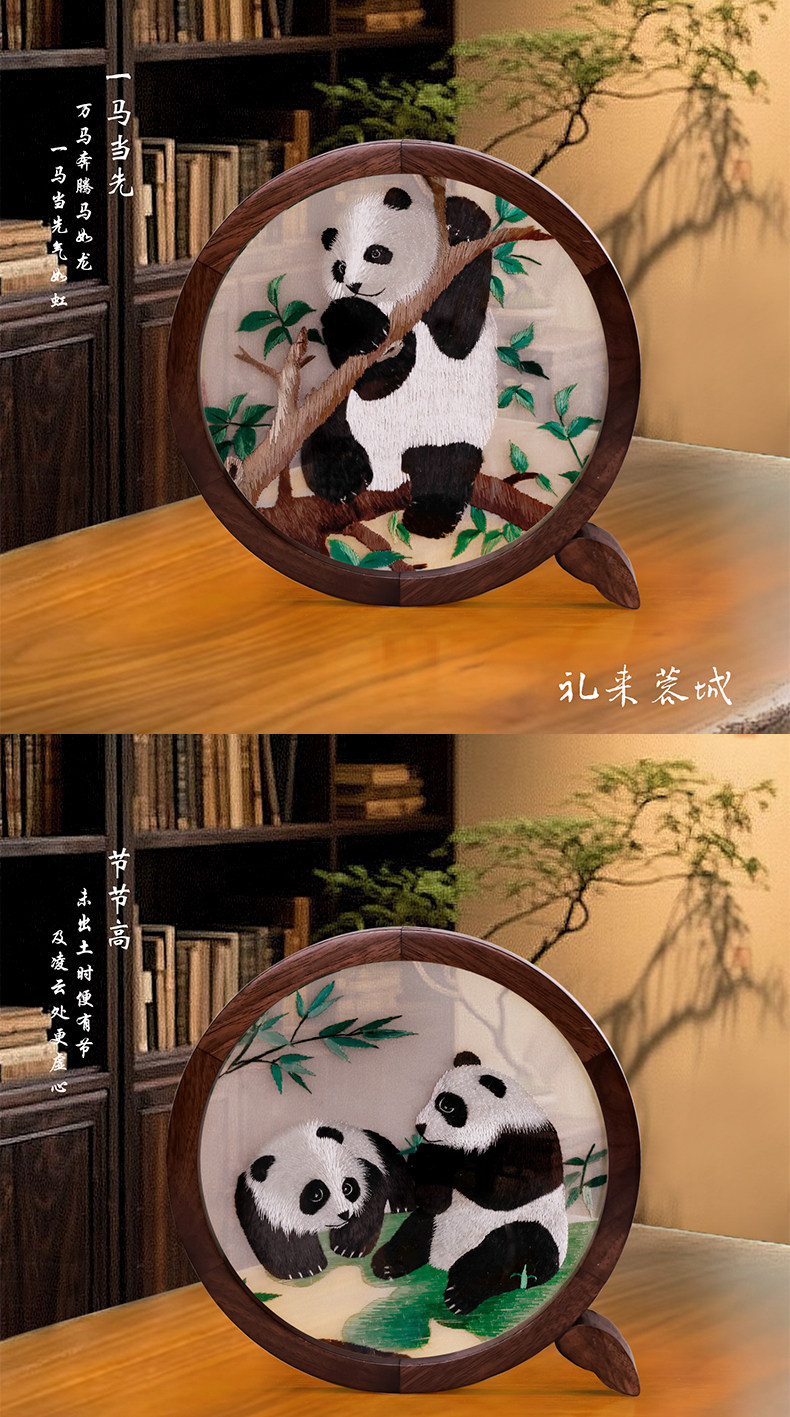 Sichuan Embroidery Panda Intangible Cultural Heritage Handmade Embroidery Suzhou Embroidery Chinese Characteristic Gift for Foreigners Going Abroad Panda Base Souvenir