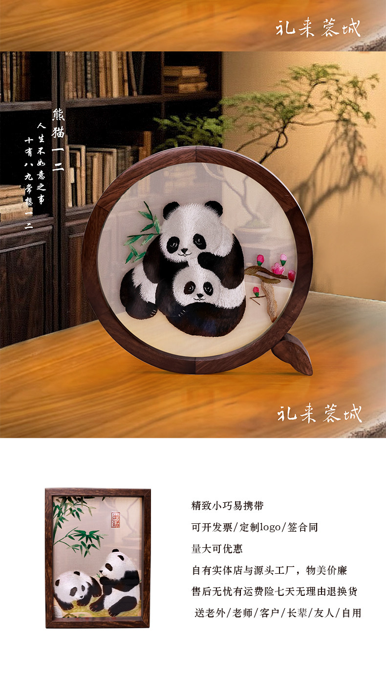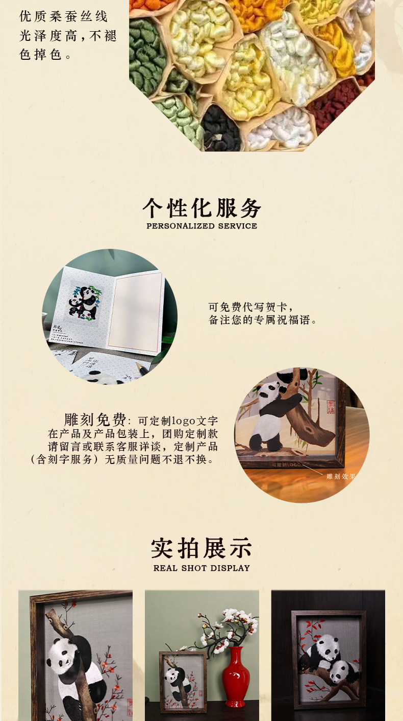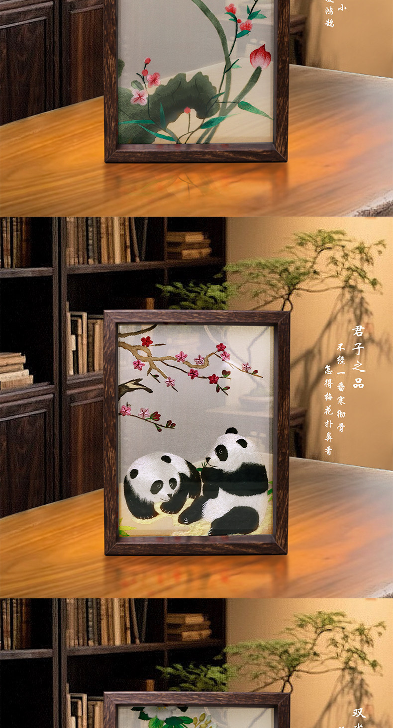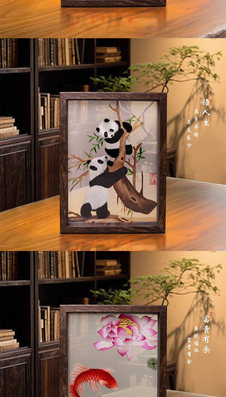 Sichuan Embroidery Panda Intangible Cultural Heritage Handmade Embroidery Suzhou Embroidery Chinese Characteristic Gift for Foreigners Going Abroad Panda Base Souvenir