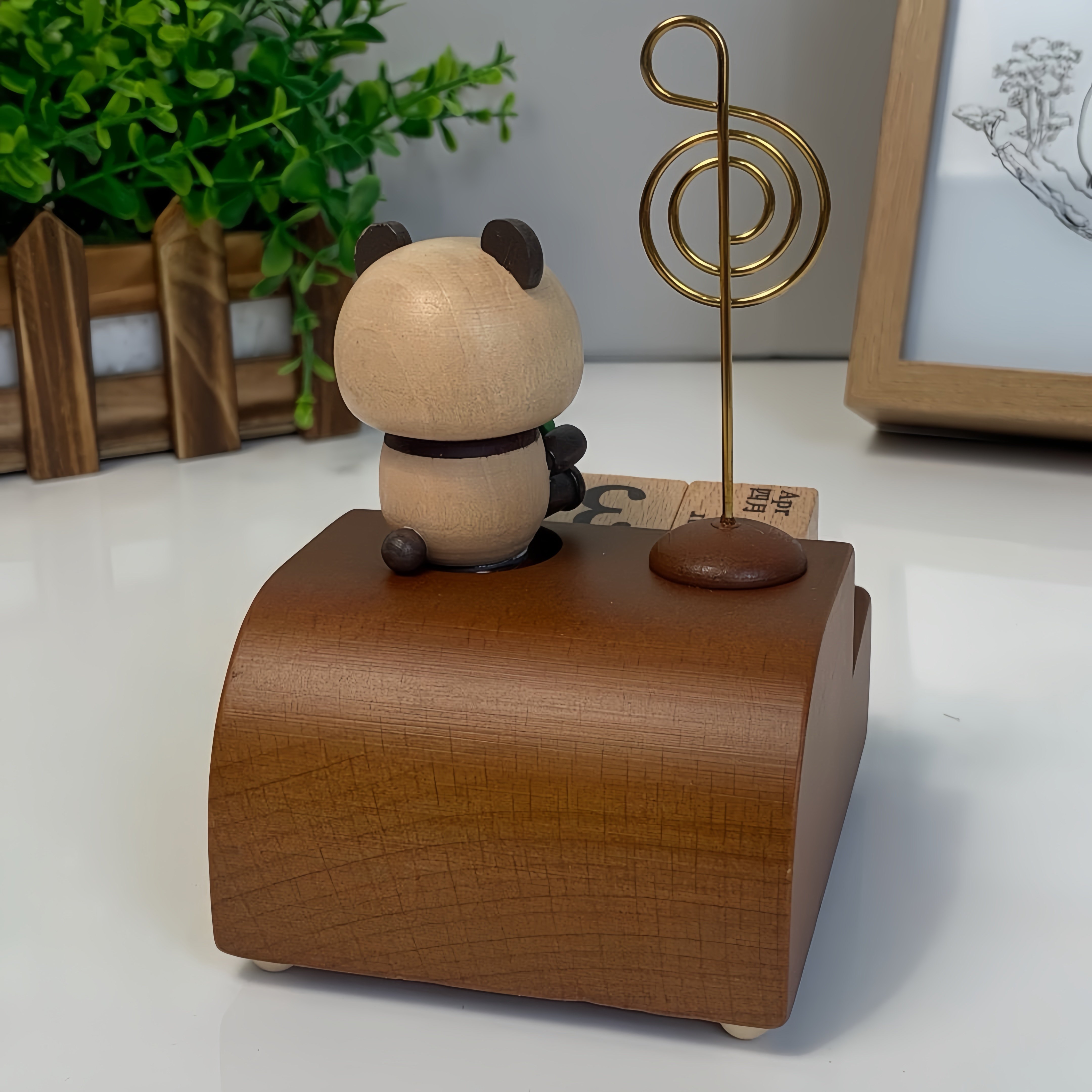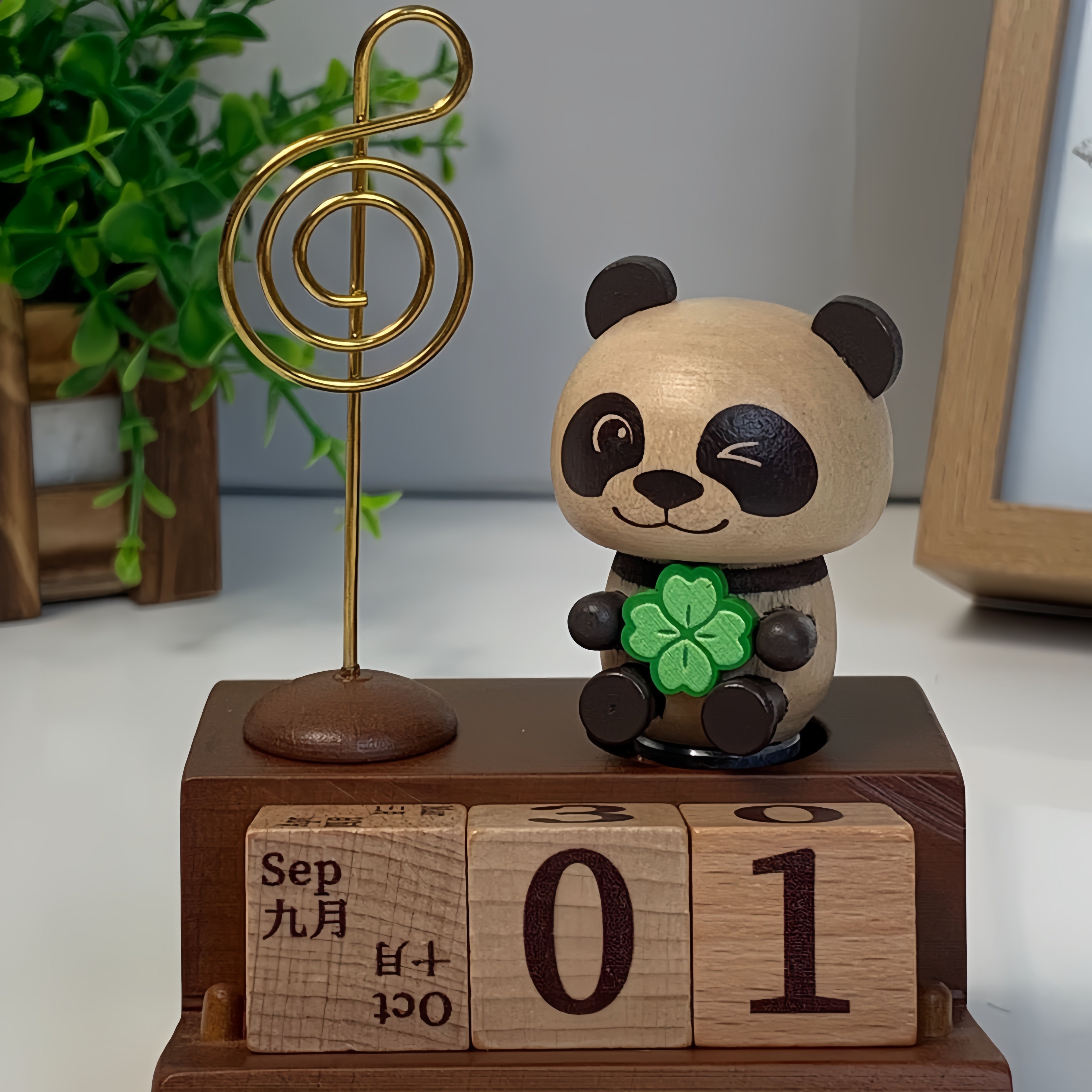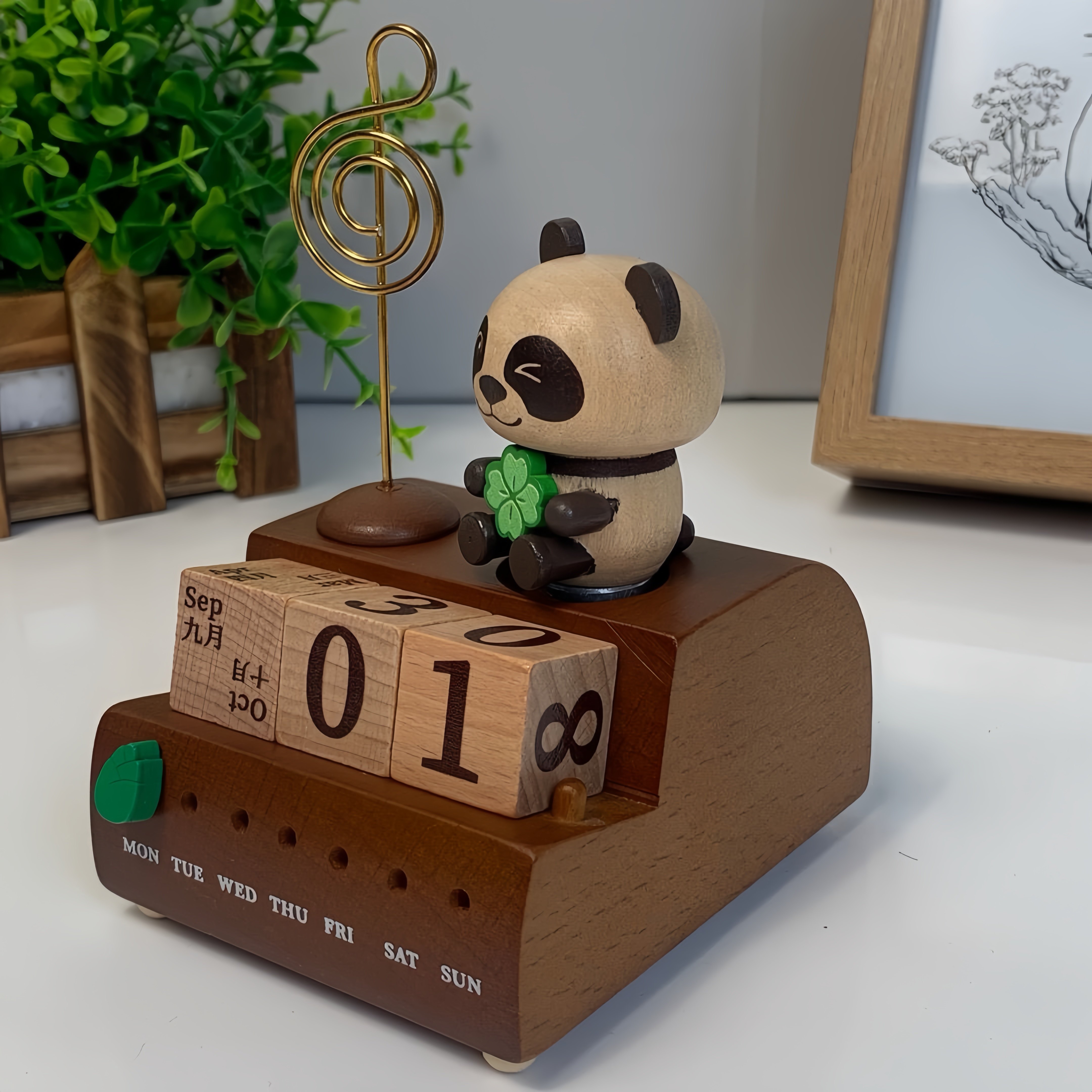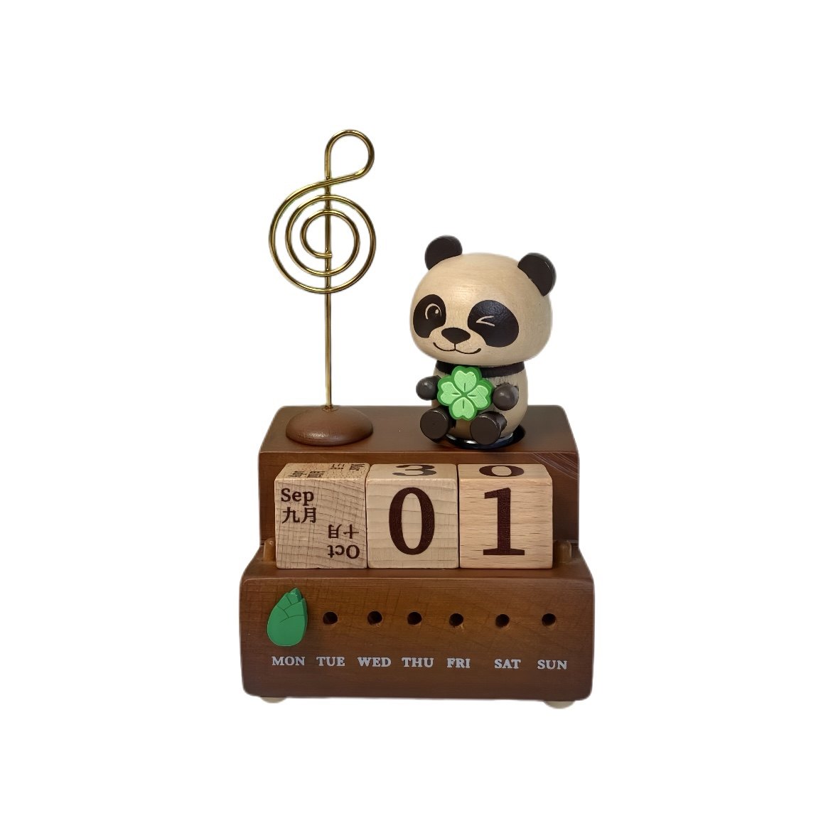 创意摆件熊猫日历八音盒木质品玩具节日礼物万年历音乐盒发条手动