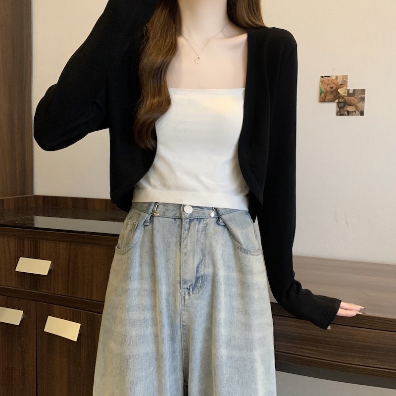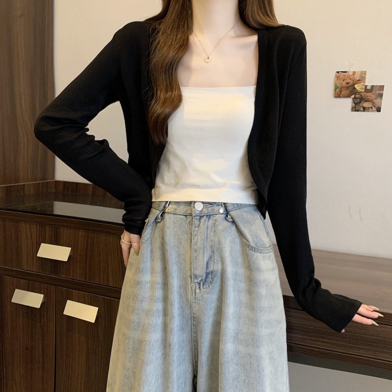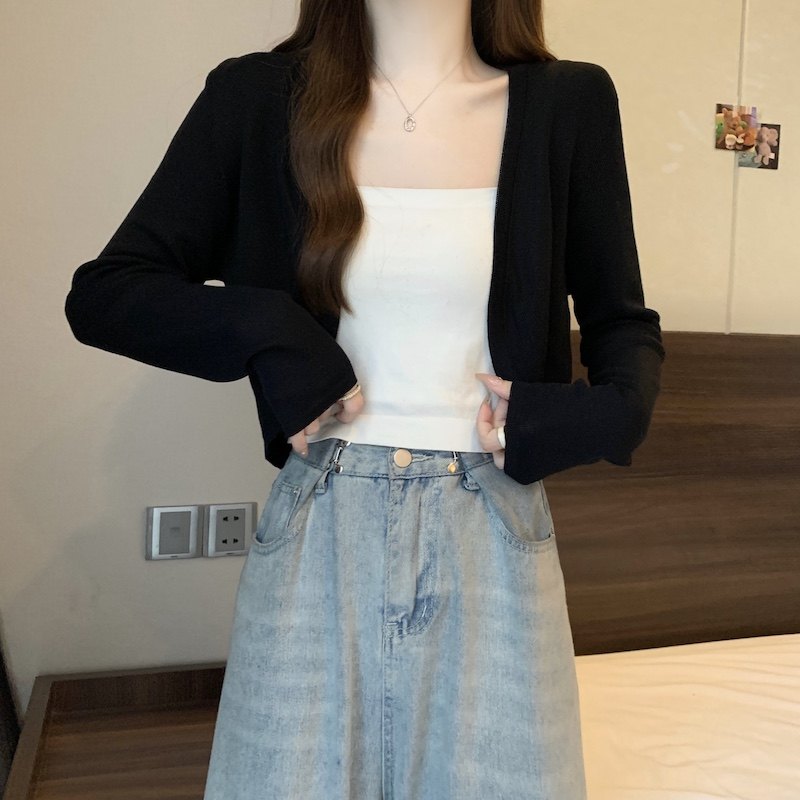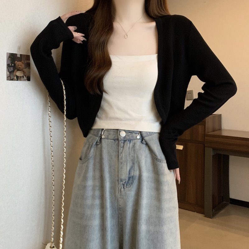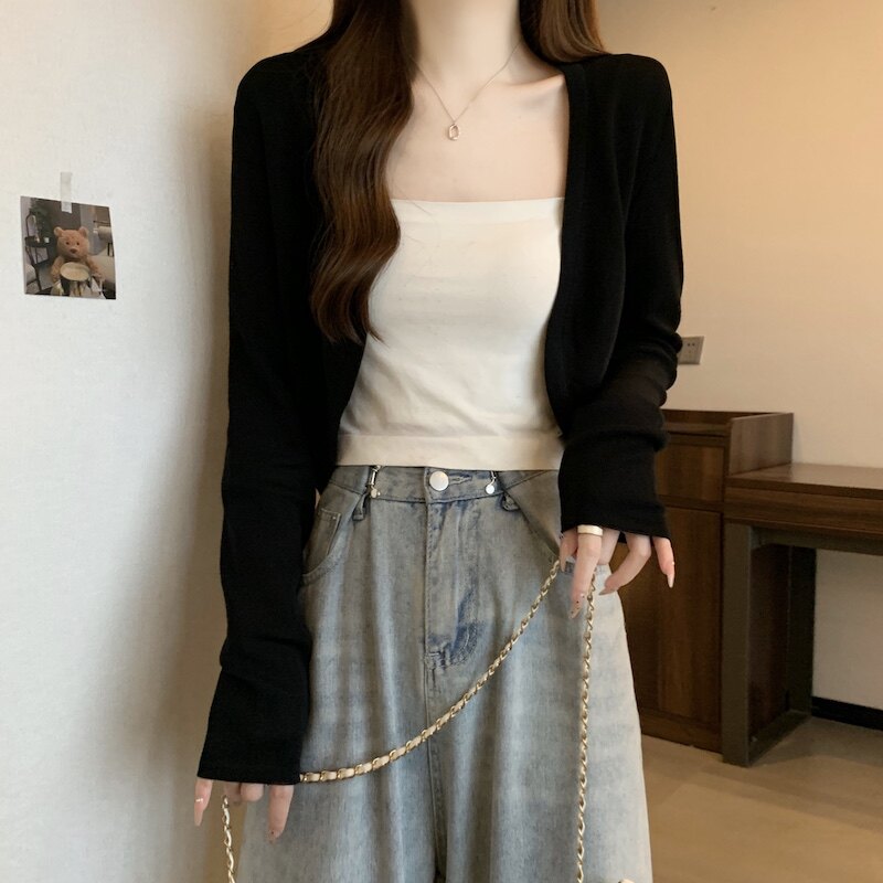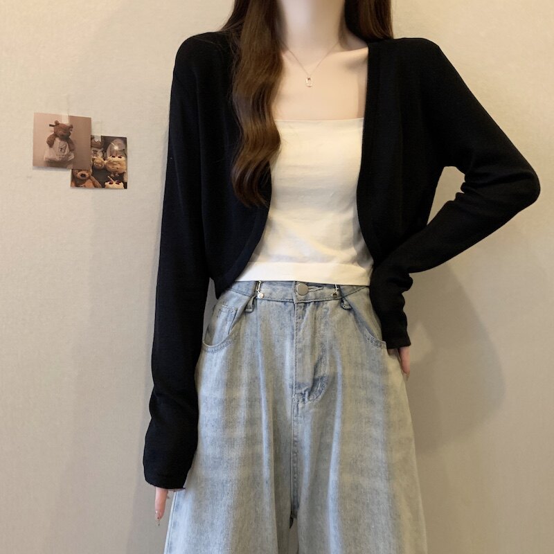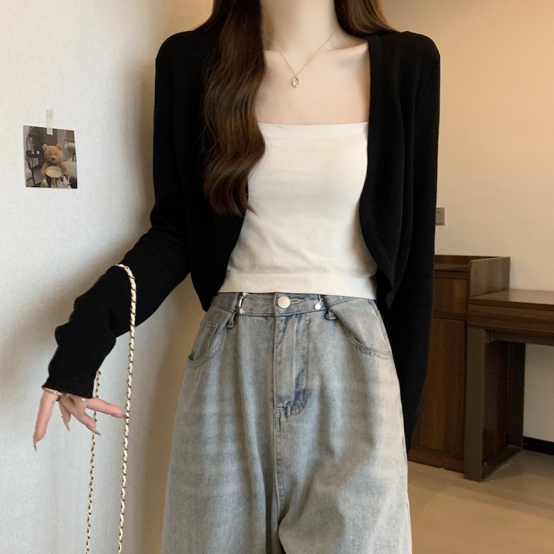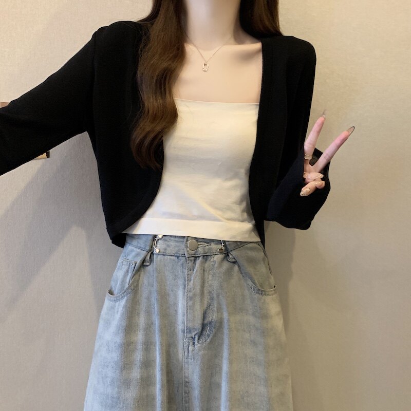 冰丝黑色防晒开衫女薄款外搭针织披肩夏季配裙子短款外套大码胖mm