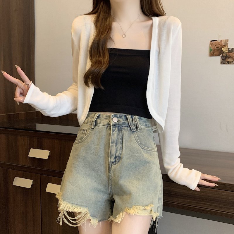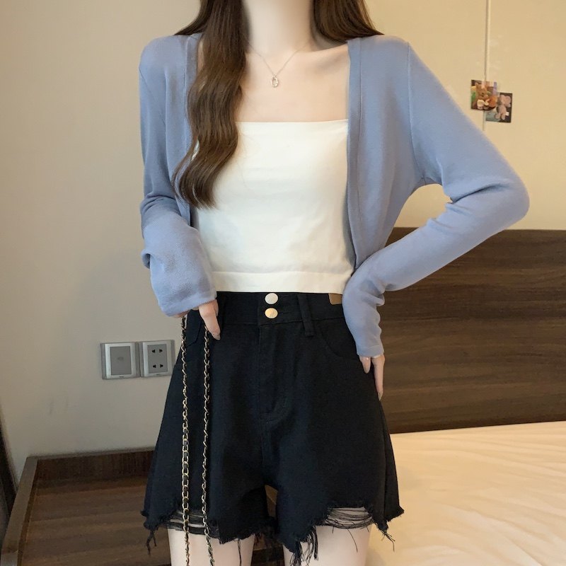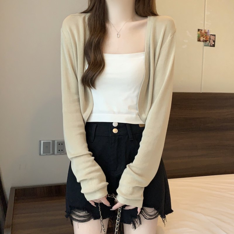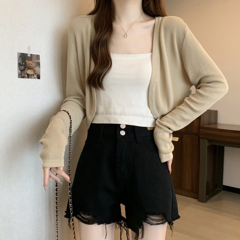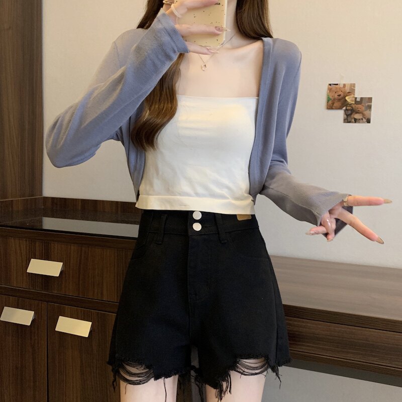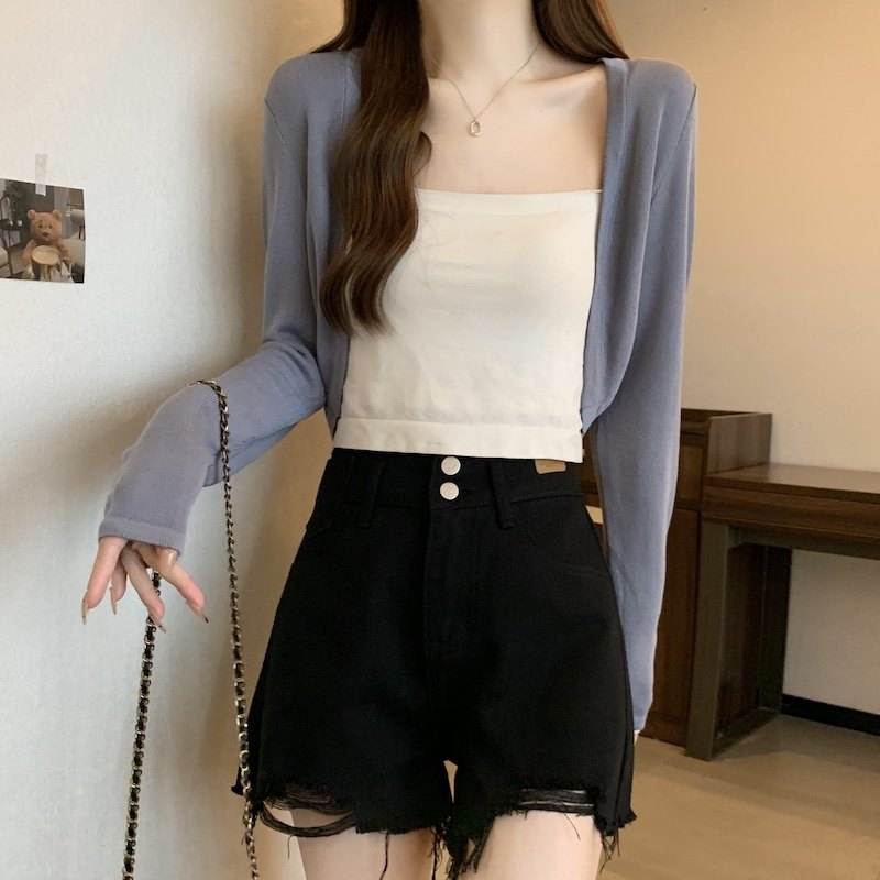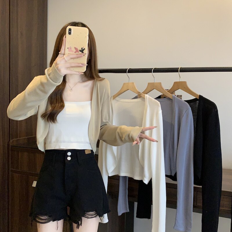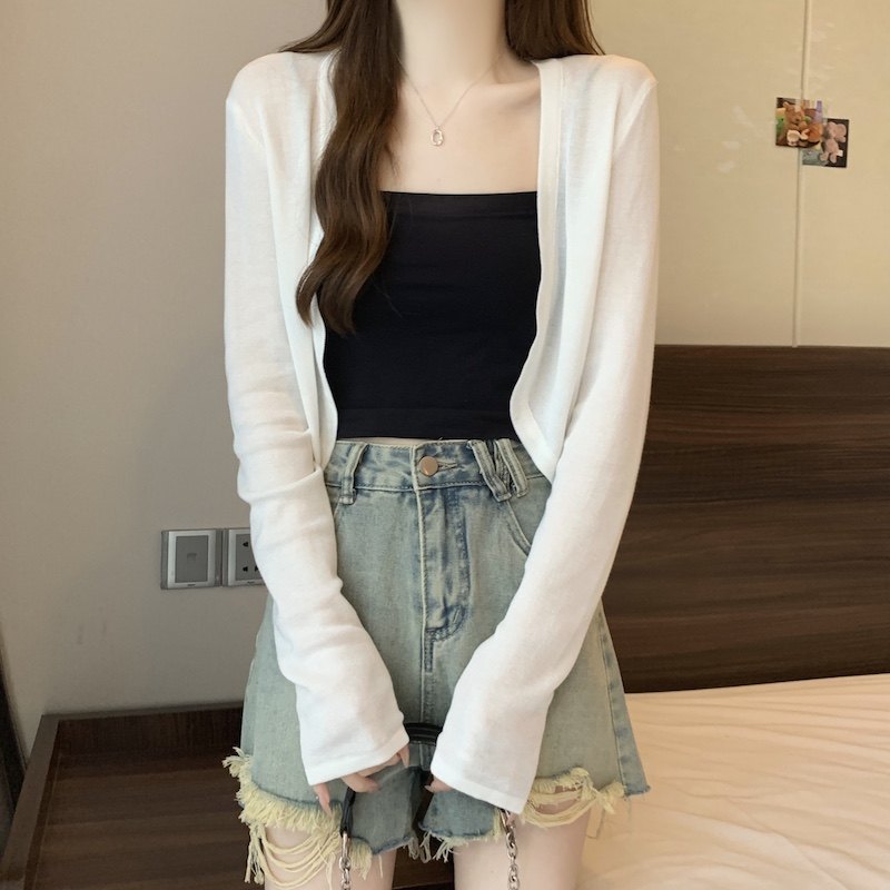 冰丝黑色防晒开衫女薄款外搭针织披肩夏季配裙子短款外套大码胖mm