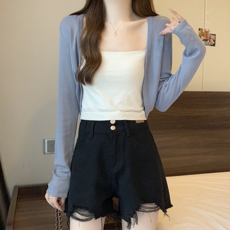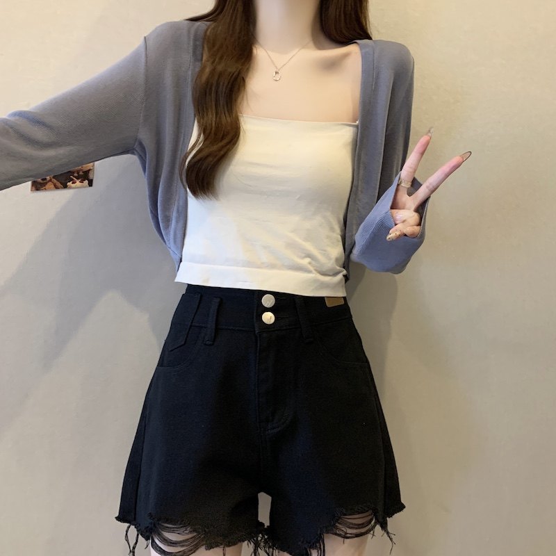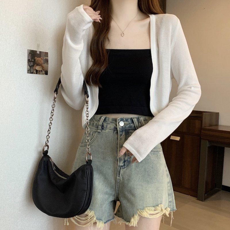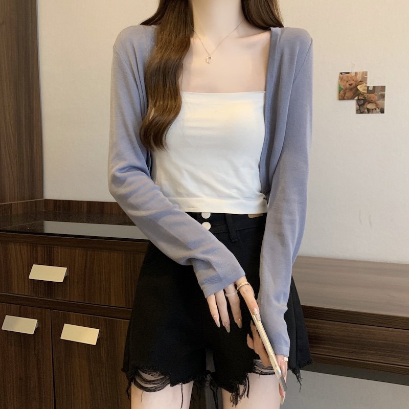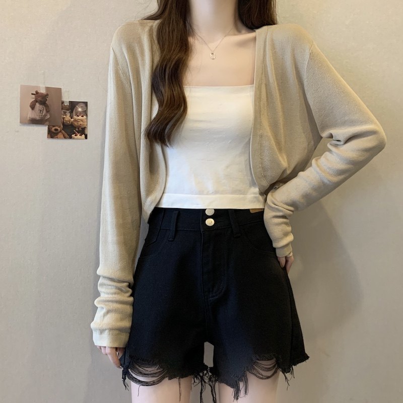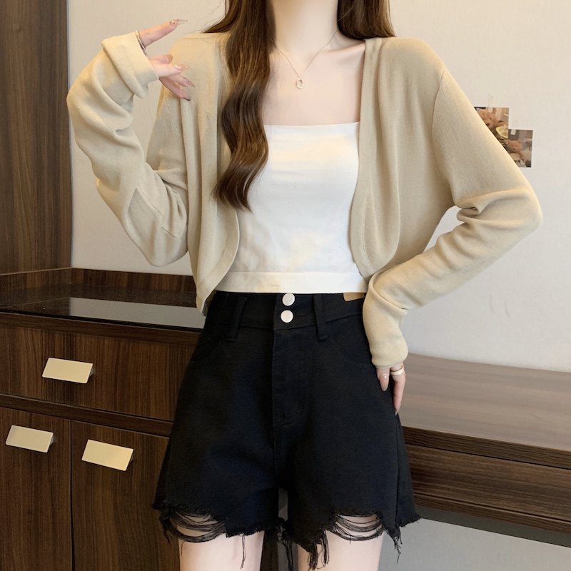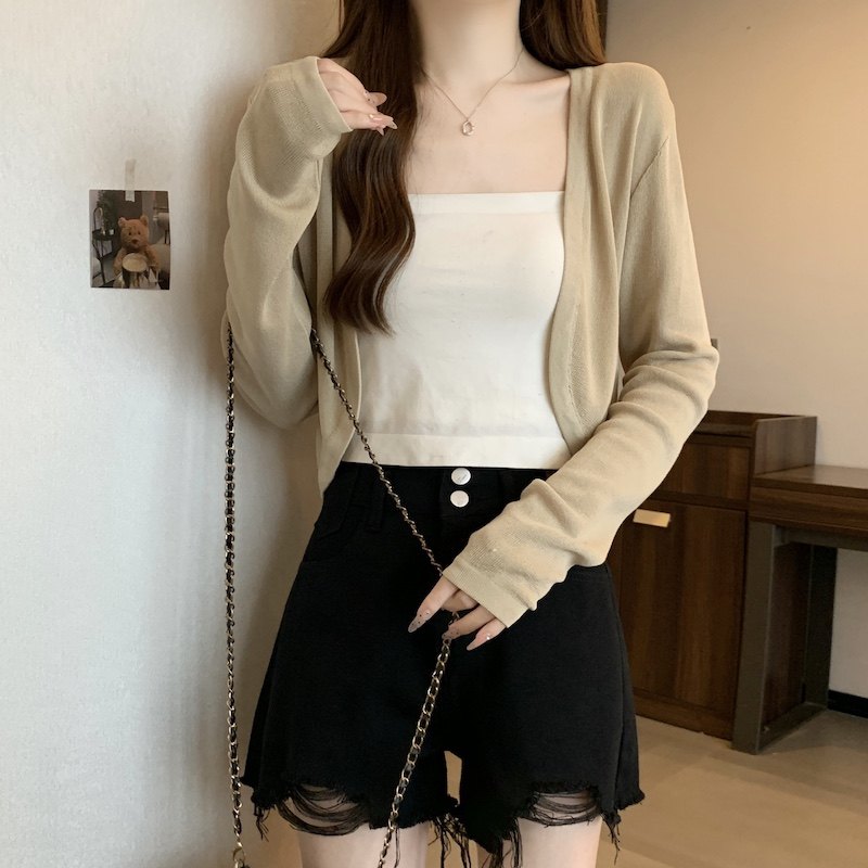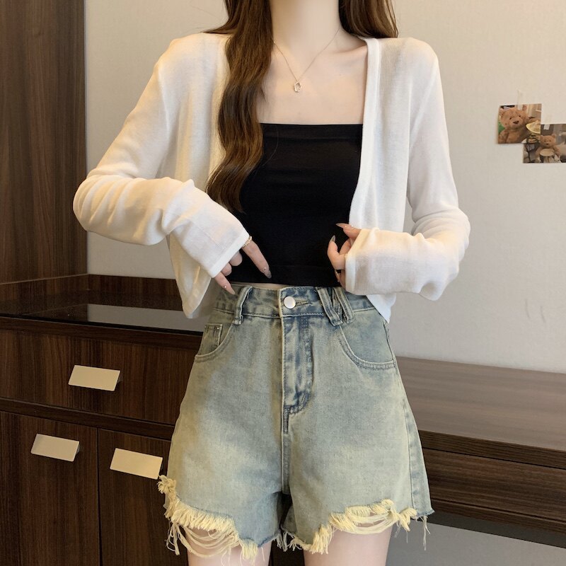 冰丝黑色防晒开衫女薄款外搭针织披肩夏季配裙子短款外套大码胖mm