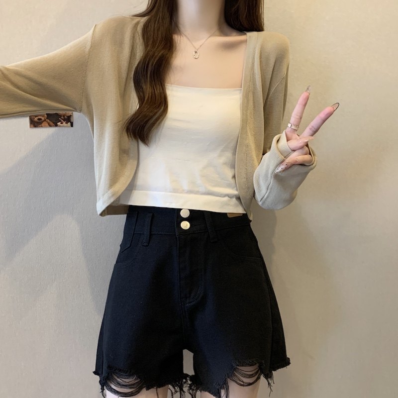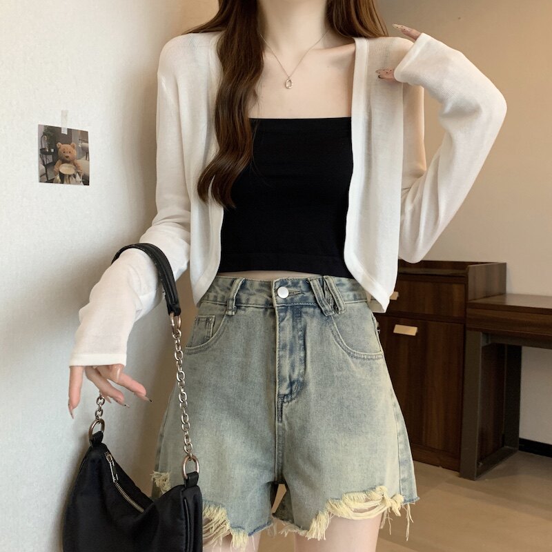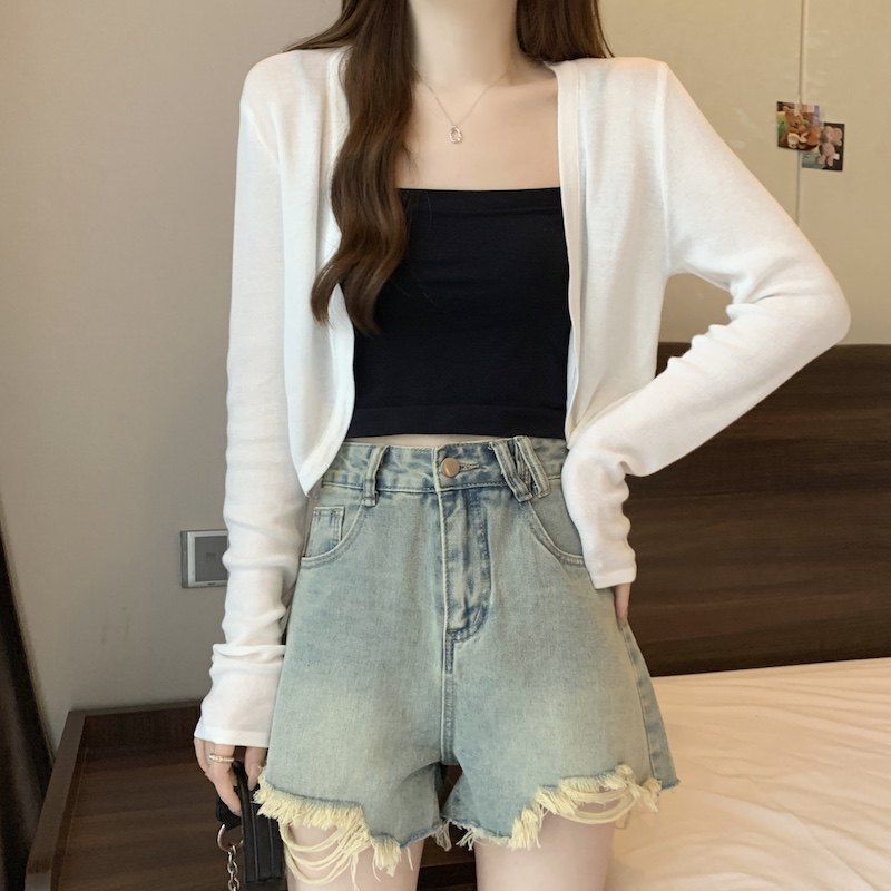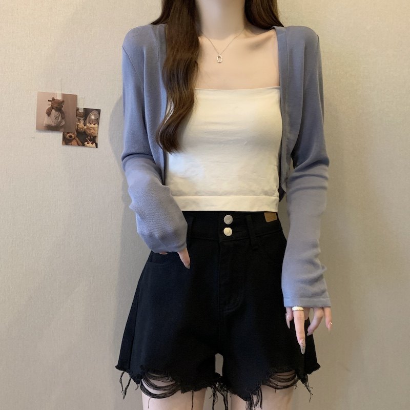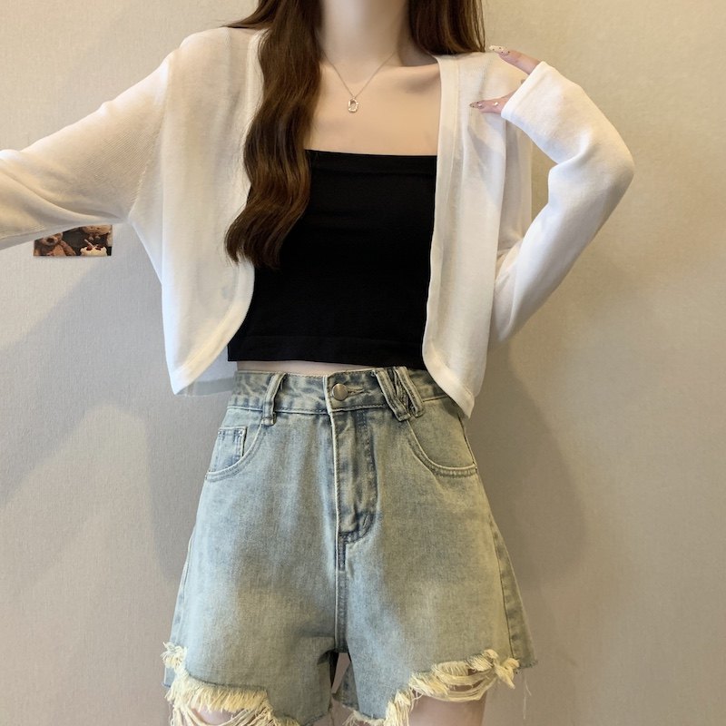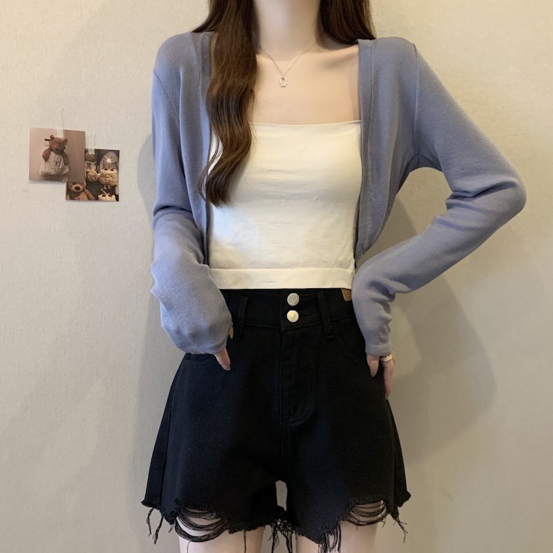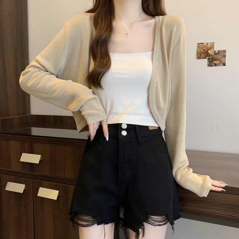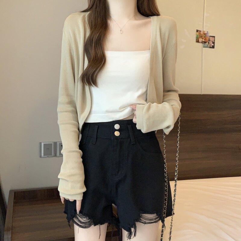 冰丝黑色防晒开衫女薄款外搭针织披肩夏季配裙子短款外套大码胖mm