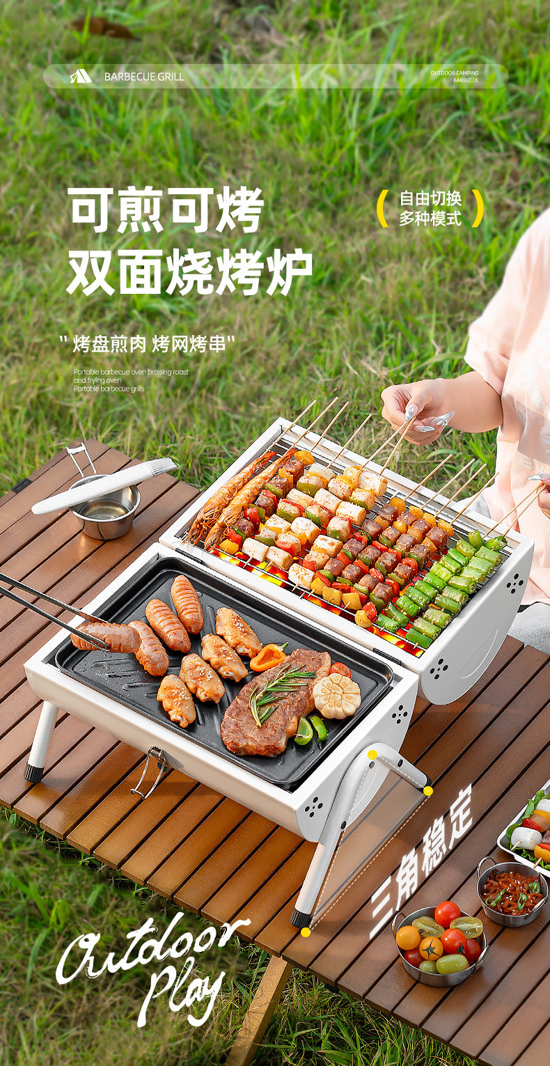 Портативная складная решетка для барбекю Explorer: уличная печь для гриля, инструмент для кемпинга на древесном угле