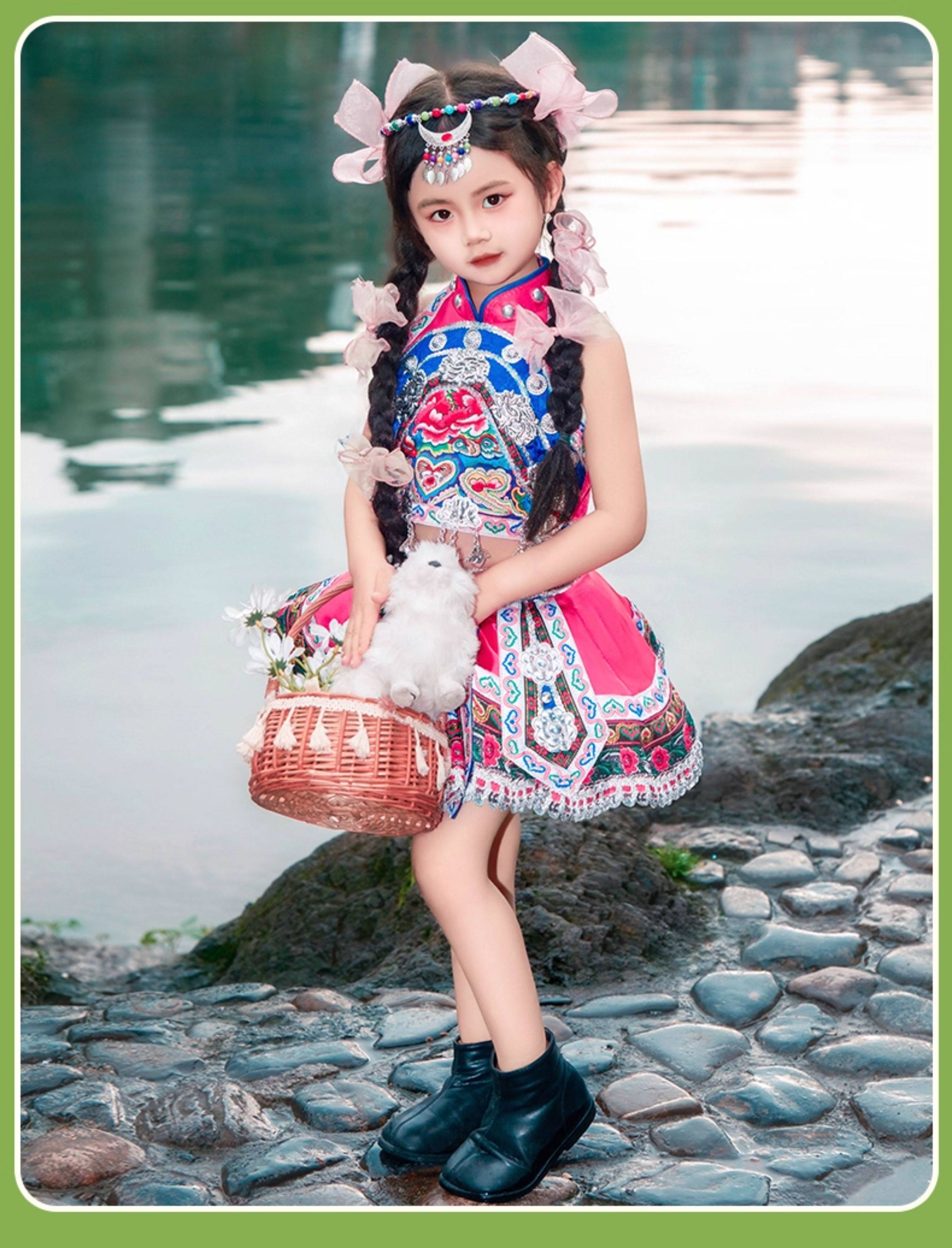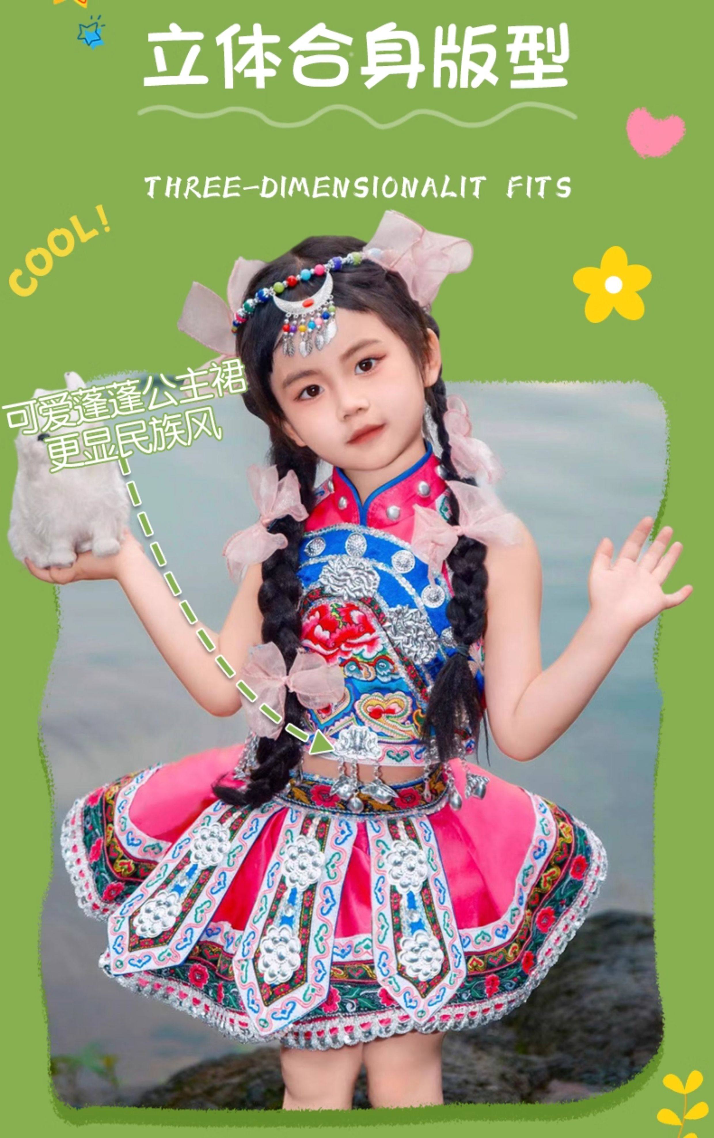 苗家哈尼族民族服装儿童女童苗族红山果彝族幼儿园宝贝舞蹈演出服