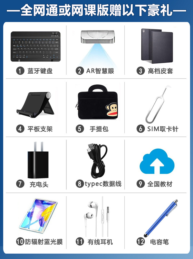 套餐 【官方标配】+八核+12英寸,【网课版】+十核+高清护眼,【全网通版】+十二核+护眼防摔+送点读笔