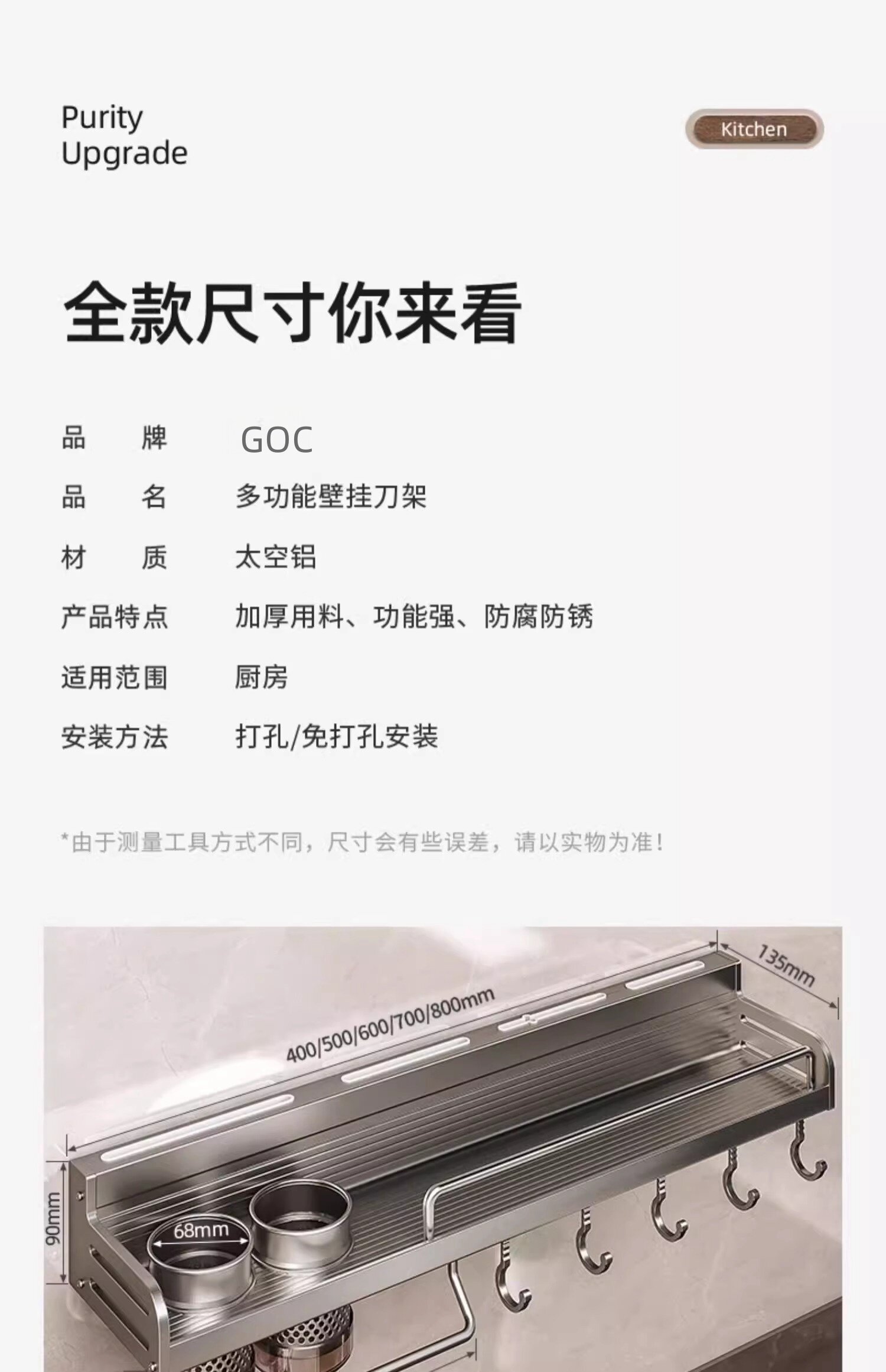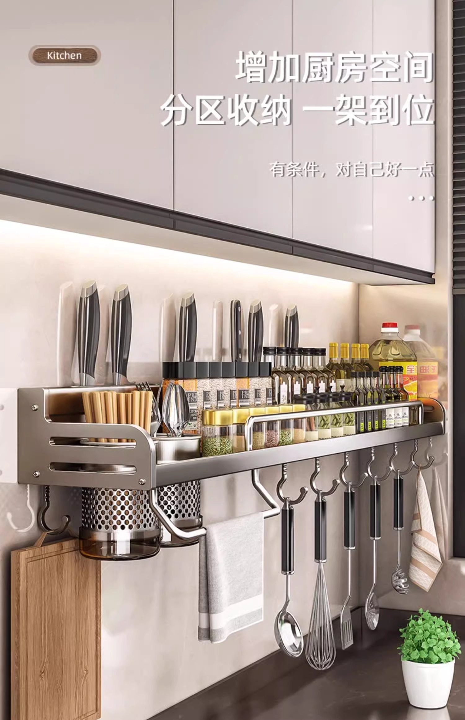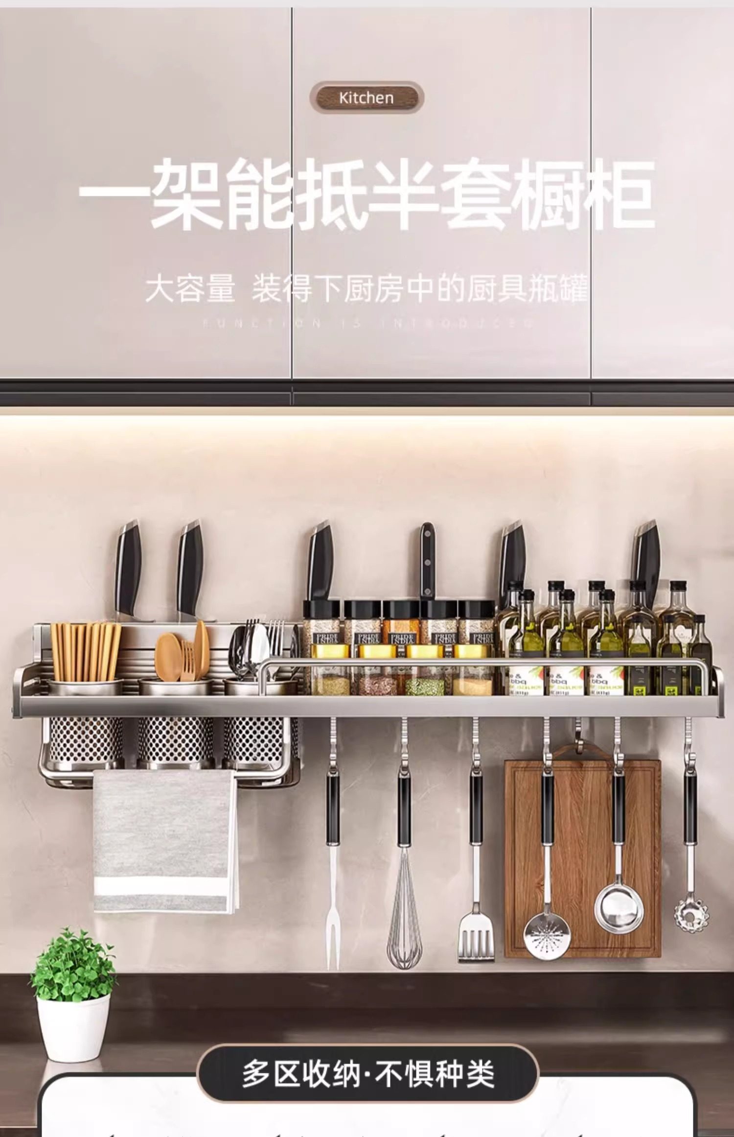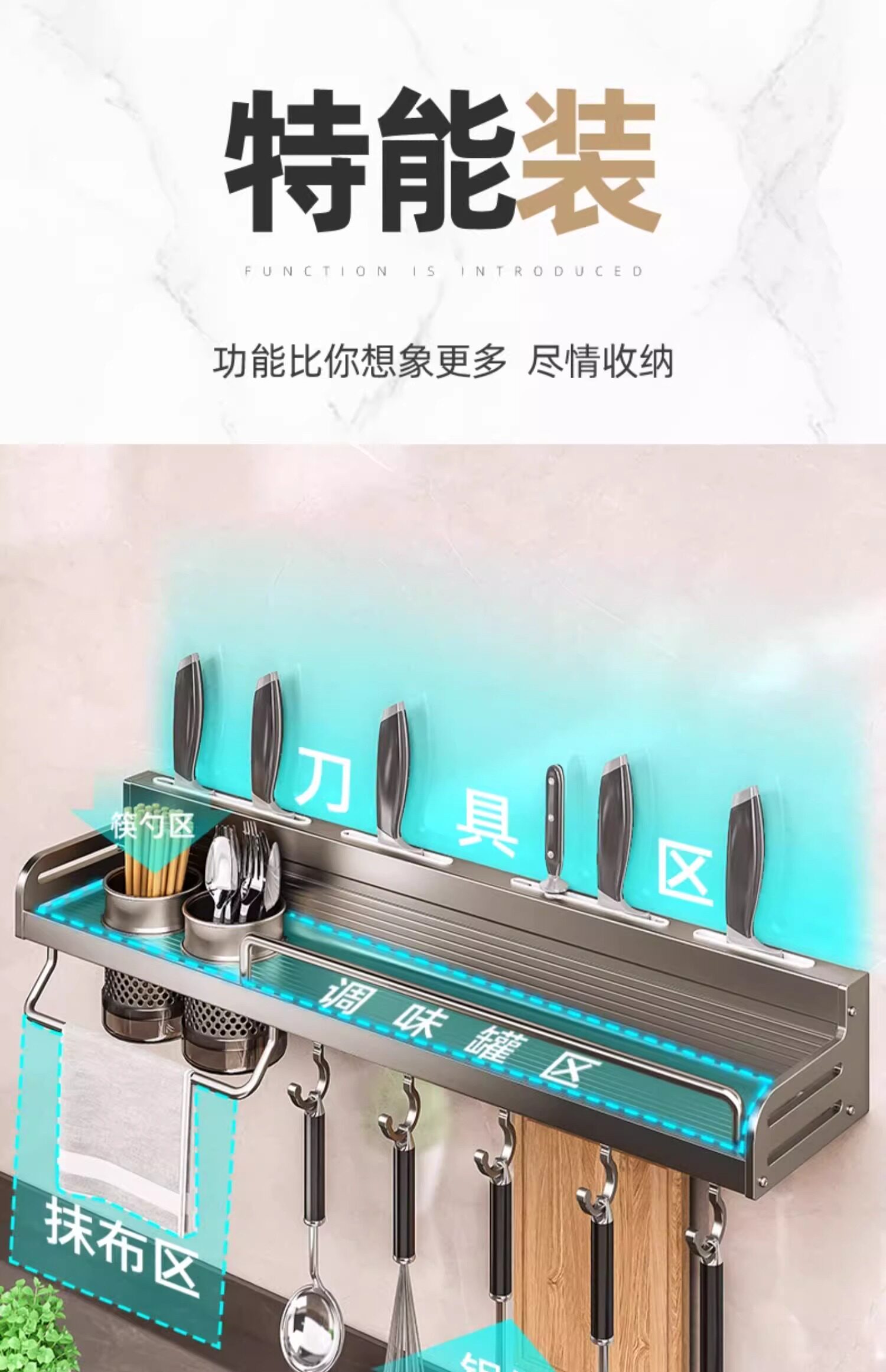 德国厨房置物架多功能免打孔壁挂式调味料家用筷子刀架一体收纳架