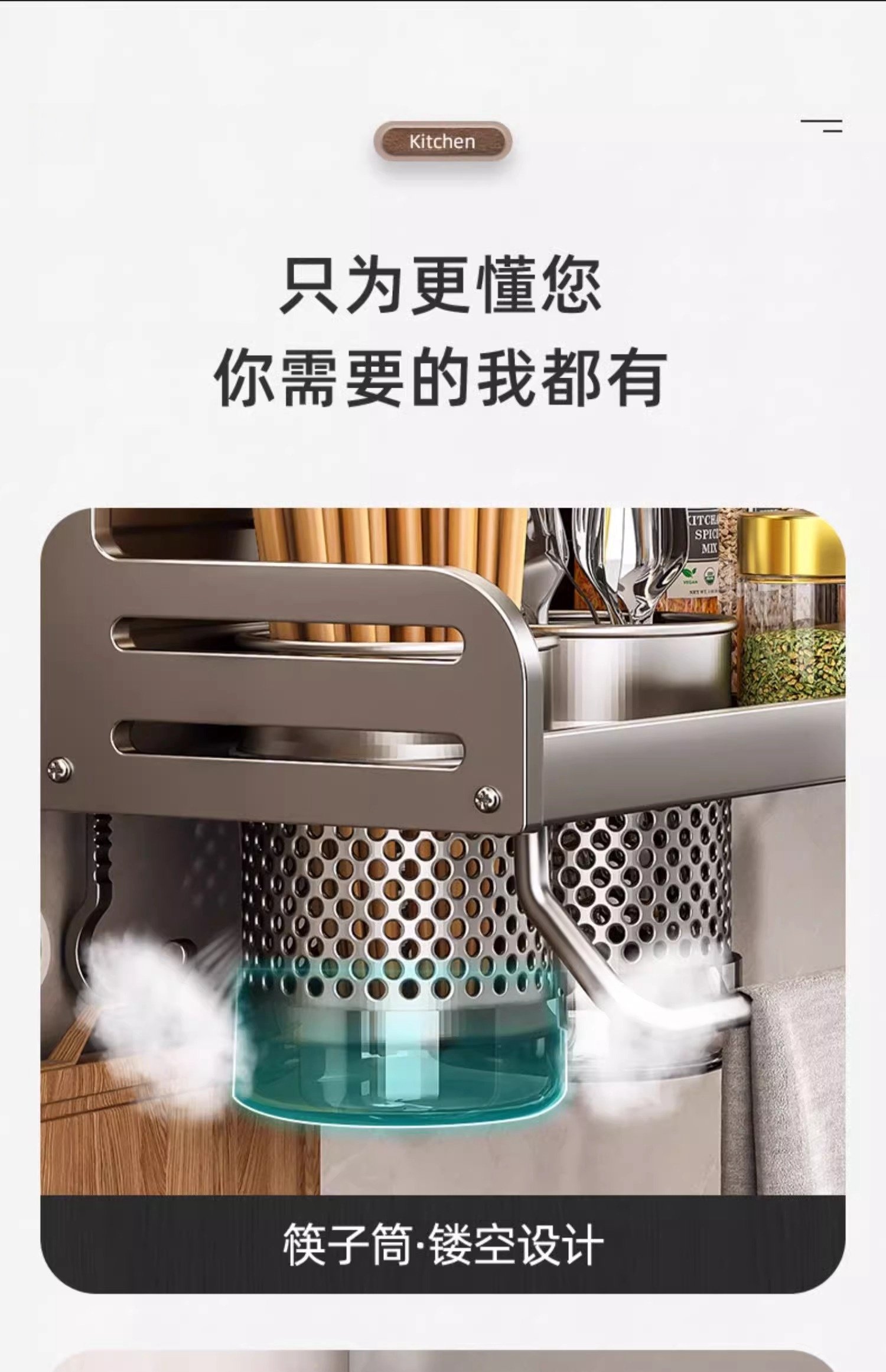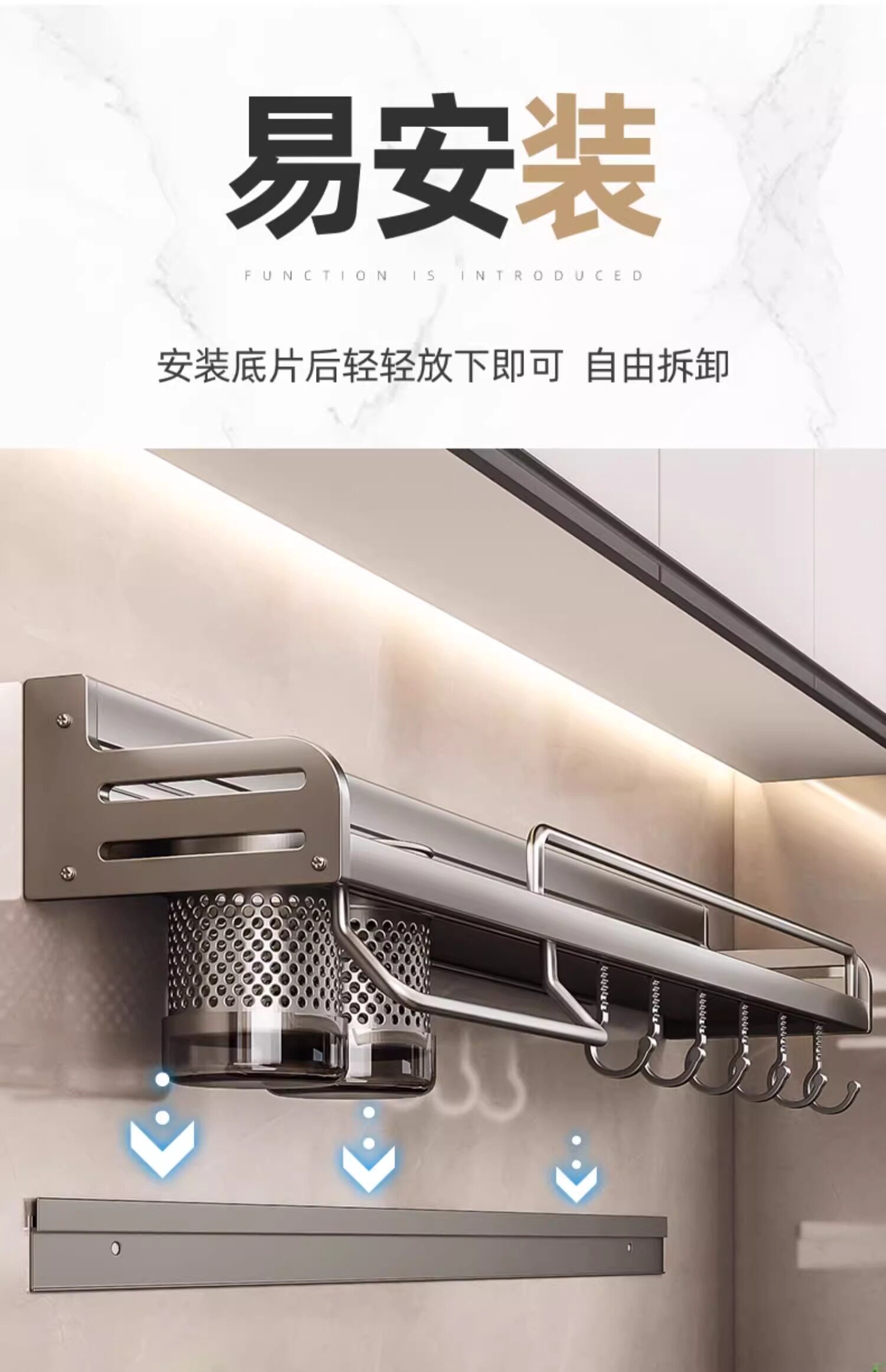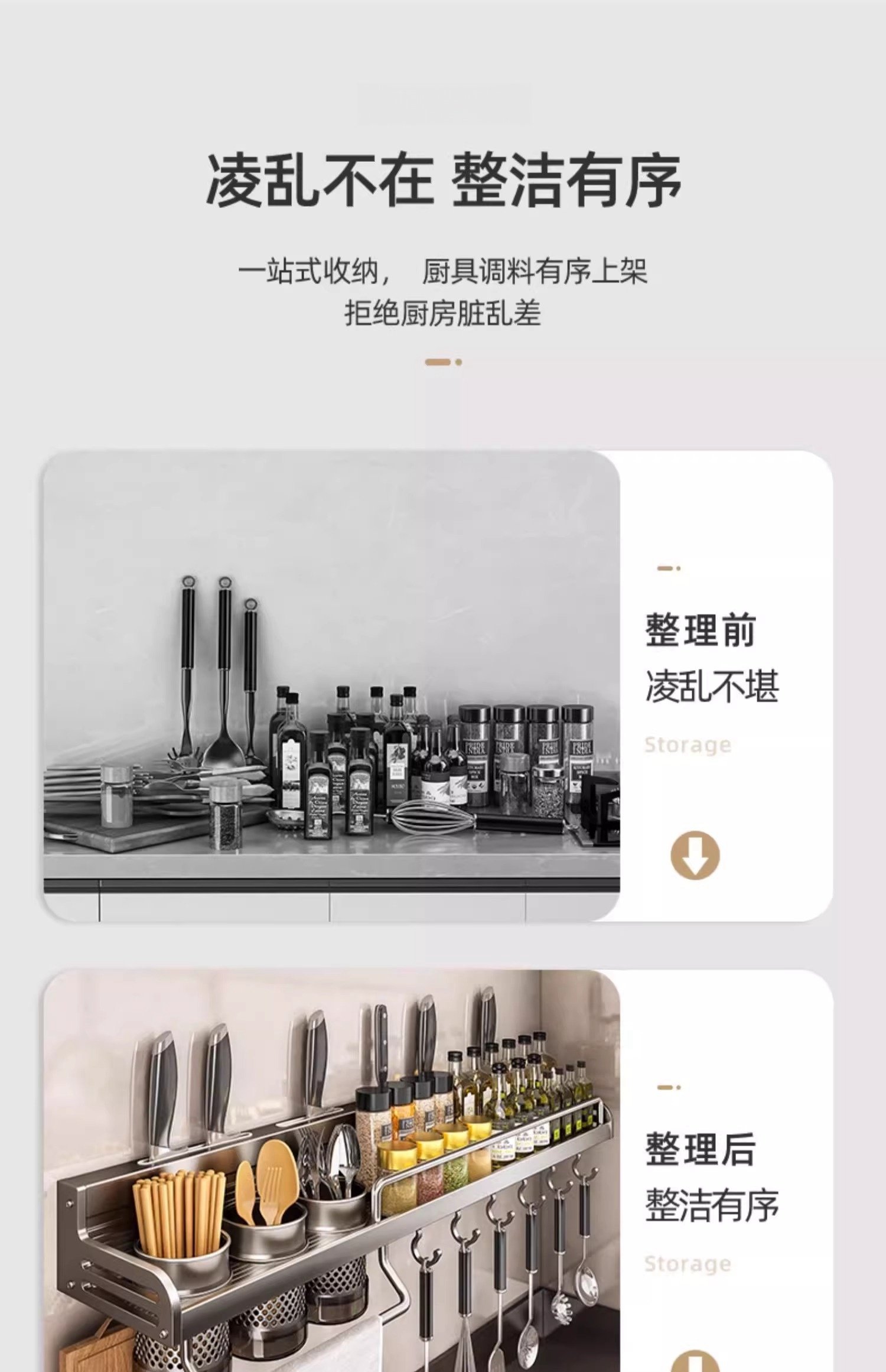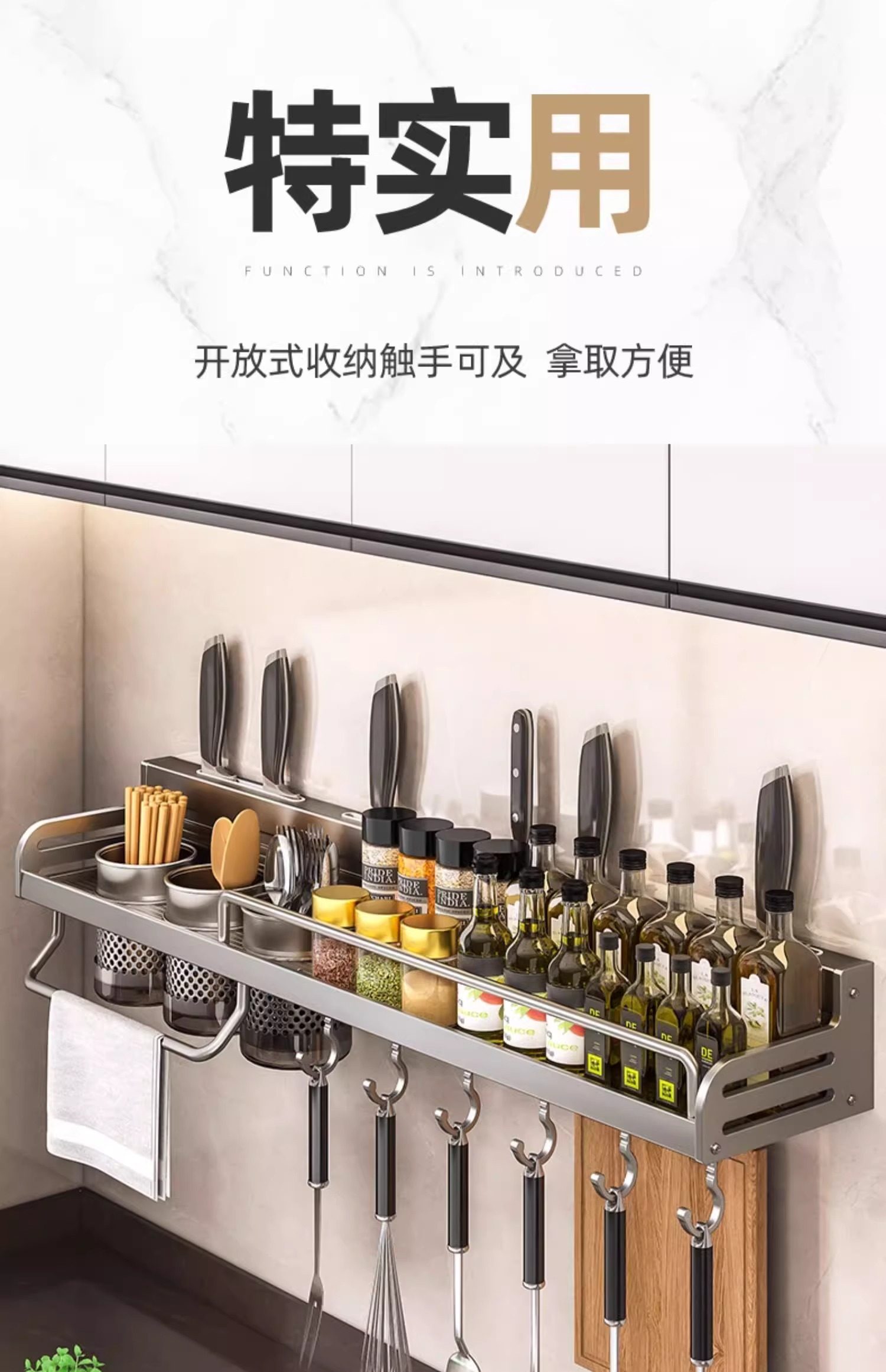 德国厨房置物架多功能免打孔壁挂式调味料家用筷子刀架一体收纳架