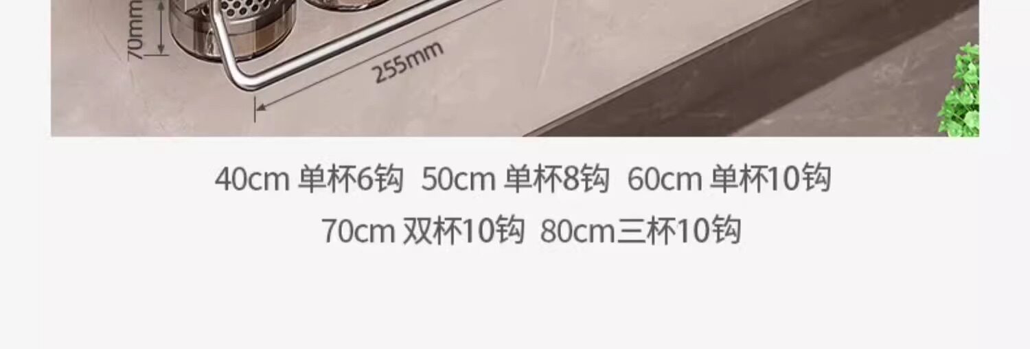 颜色分类 【枪灰款】40cm单杯3刀槽6挂钩,.【枪灰款】40cm双杯3刀槽6挂钩,.【枪灰款】50cm单杯4刀槽8挂钩,【枪灰款】50cm双杯4刀槽8挂钩,【枪灰款】60cm单杯4刀槽10挂钩,.【枪灰款】60cm双杯4刀槽10挂钩,.【枪灰款】70cm三杯4刀槽10挂钩,.【枪灰款】80cm双杯4刀槽10挂钩,.【枪灰款】80cm三杯4刀槽10挂钩,【雅黑款】40cm单杯3刀槽6挂钩,【雅黑款】40cm双杯3刀槽6挂钩,【雅黑款】50cm单杯4刀槽8挂钩,【雅黑款】50cm双杯4刀槽8挂钩,【雅黑款】60cm单杯4刀槽10挂钩,【雅黑款】60cm双杯4刀槽10挂钩,【雅黑款】70cm双杯4刀槽10挂钩,【雅黑款】70cm三杯4刀槽10挂钩,【雅黑款】80cm双杯4刀槽10挂钩,【雅黑款】80cm三杯4刀槽10挂钩,【枪灰款】70cm双杯4刀槽10挂钩