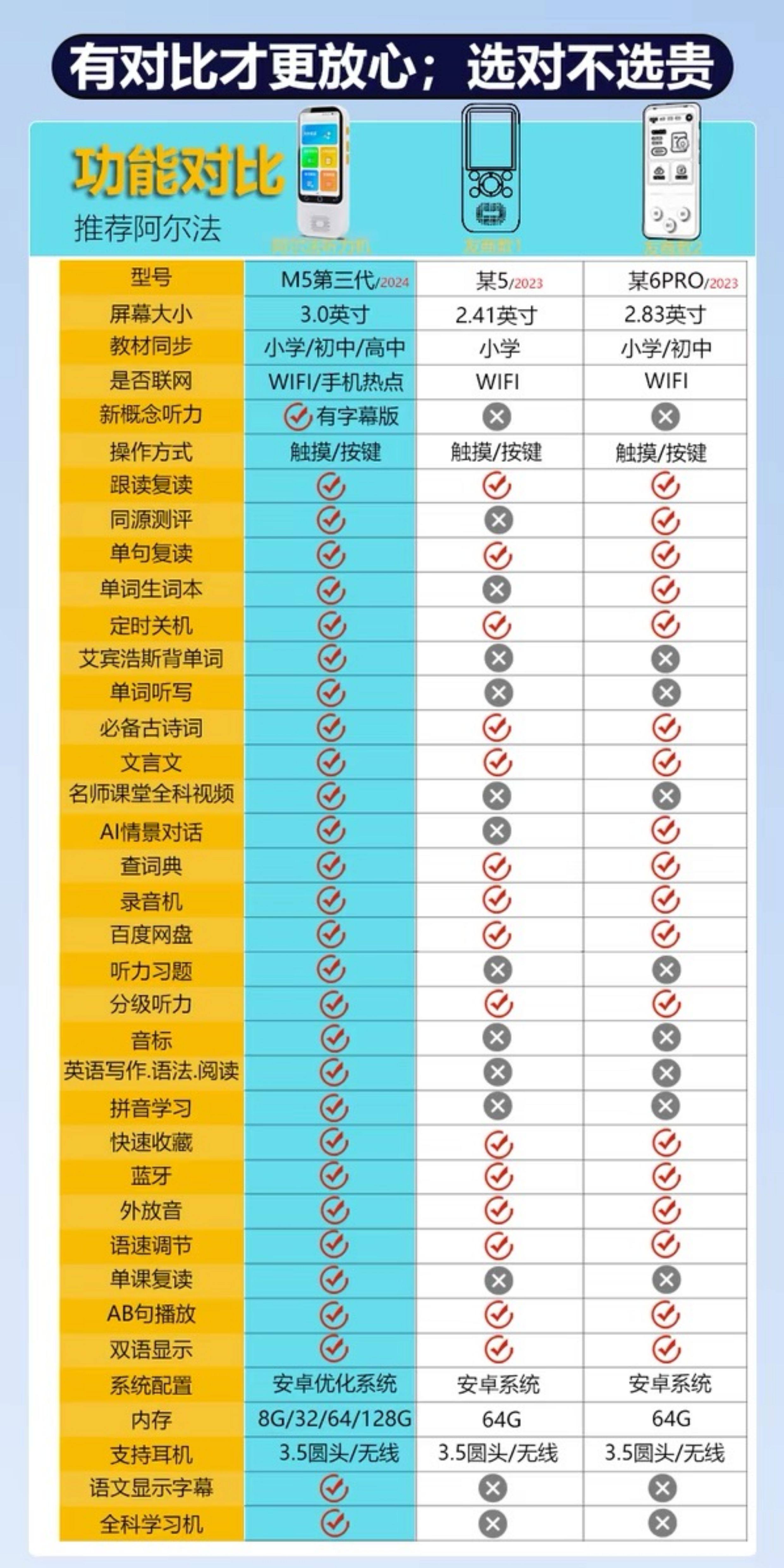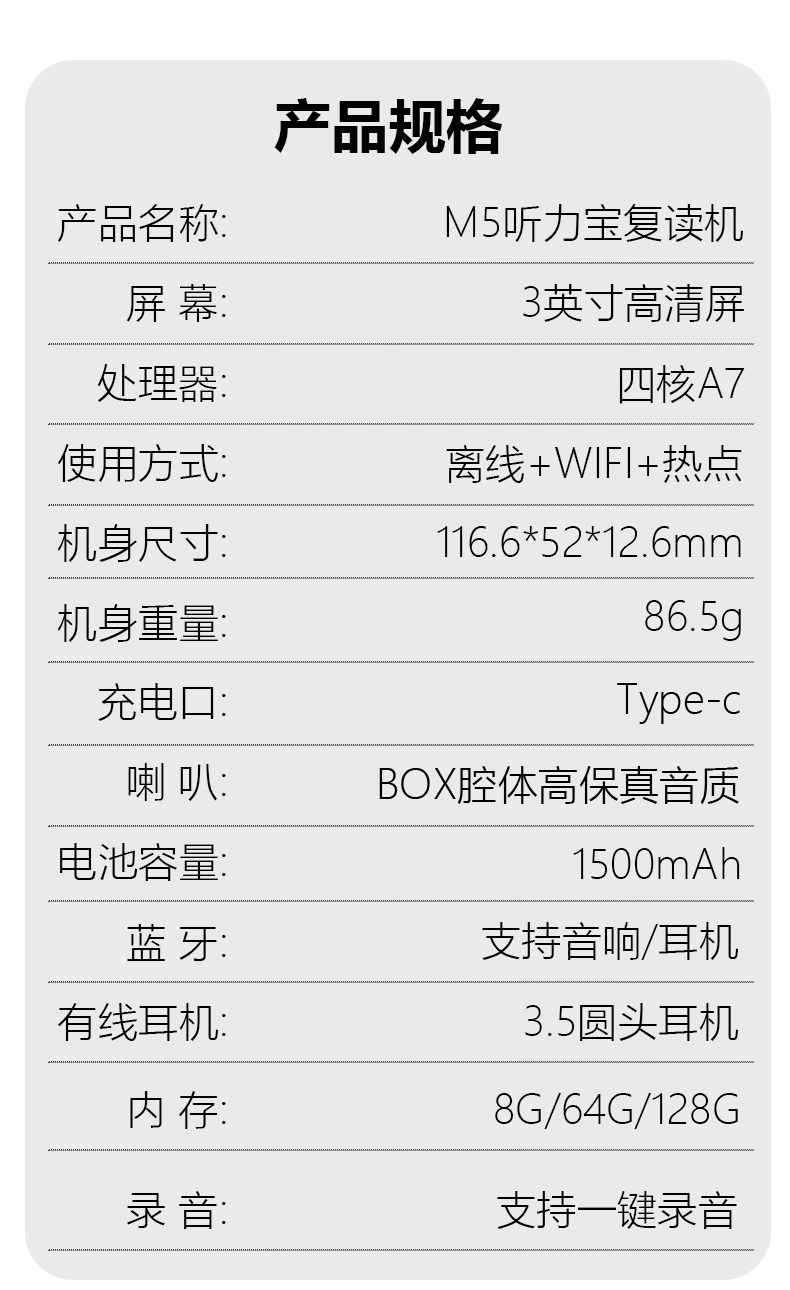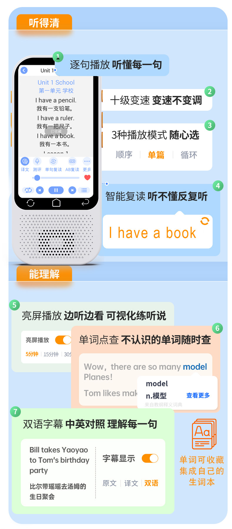 Alpha Repeater English Listening and Speaking Device Portable Player for Ear Training Elementary, Middle, and High School Learning Machine
