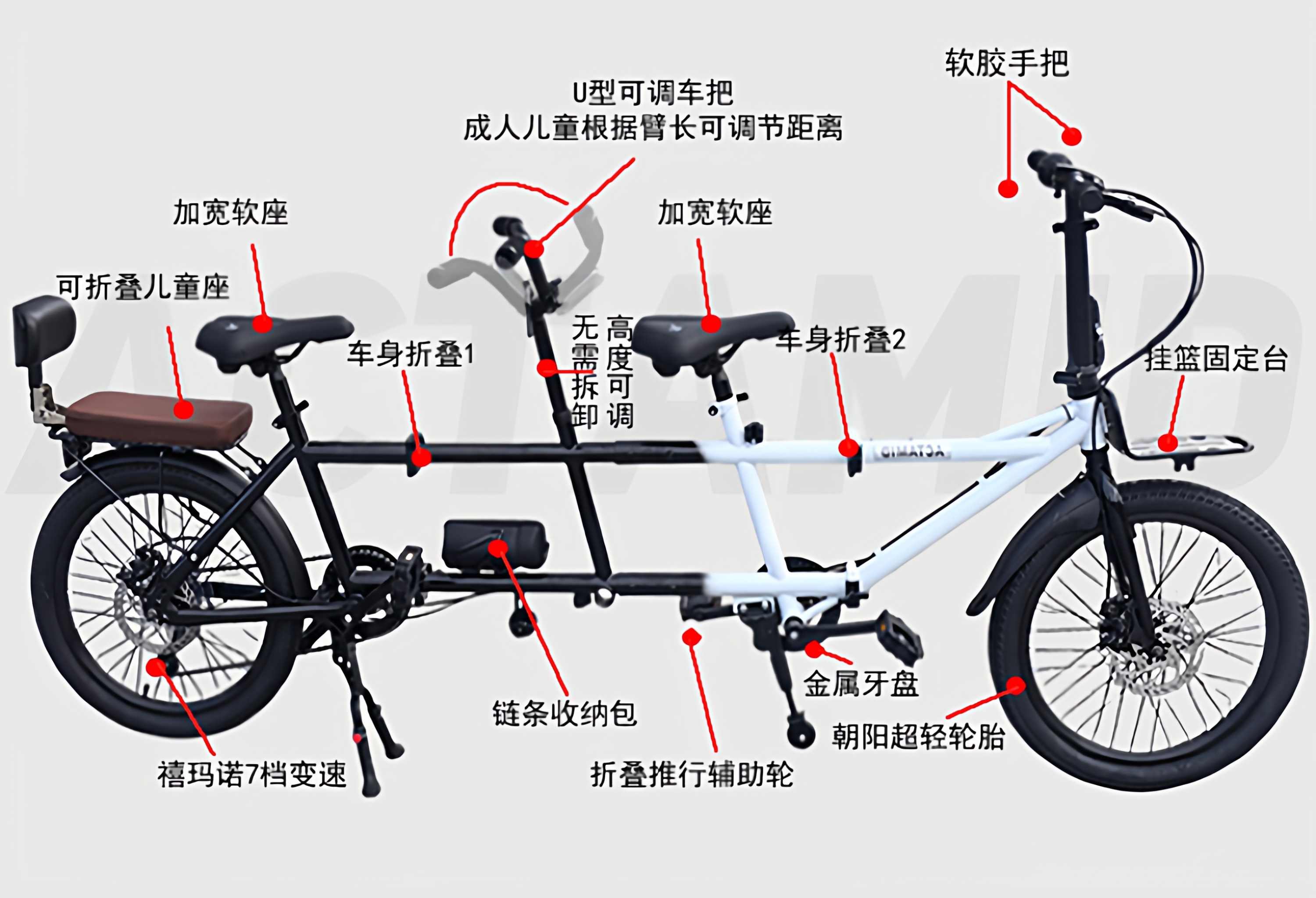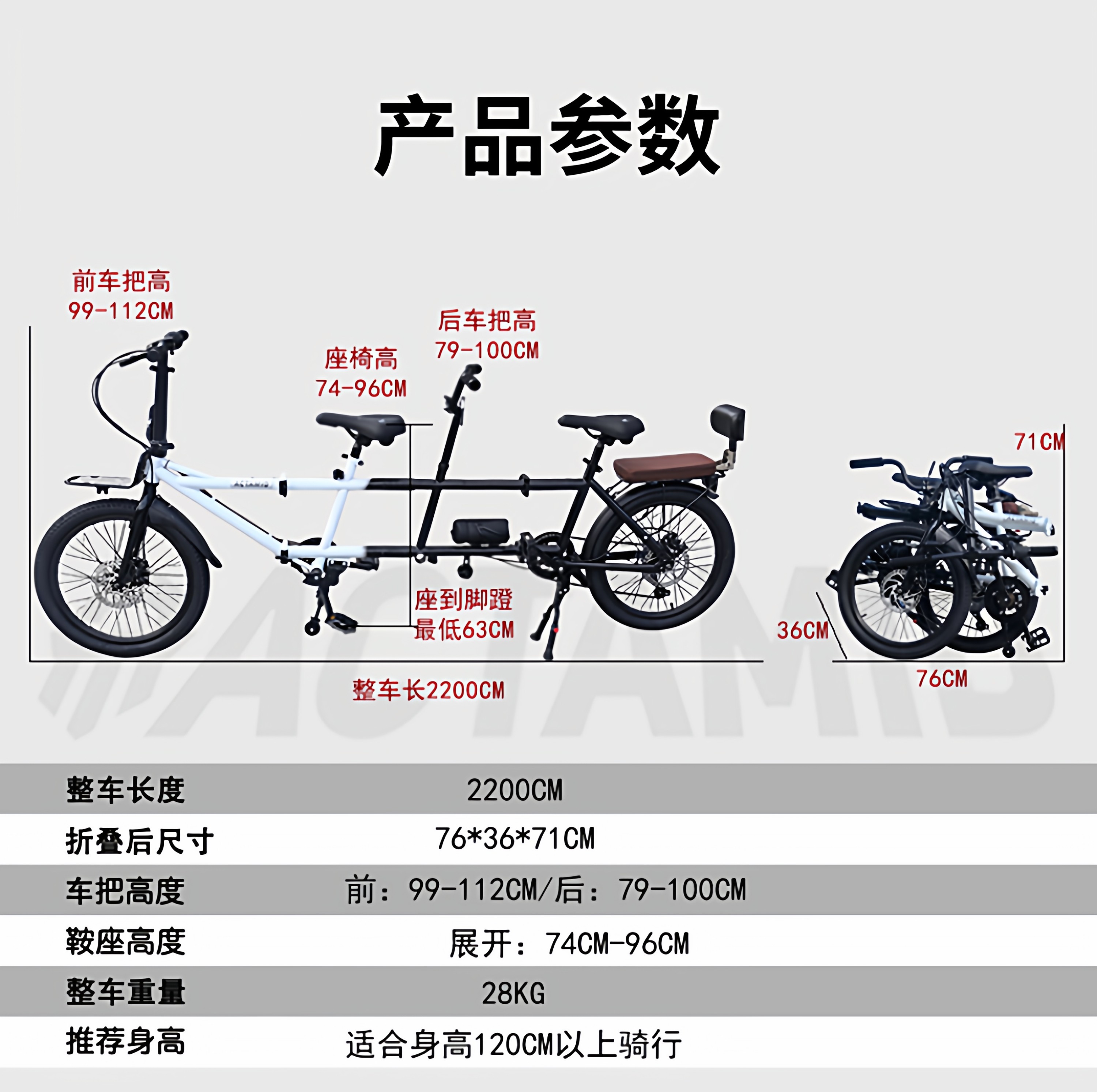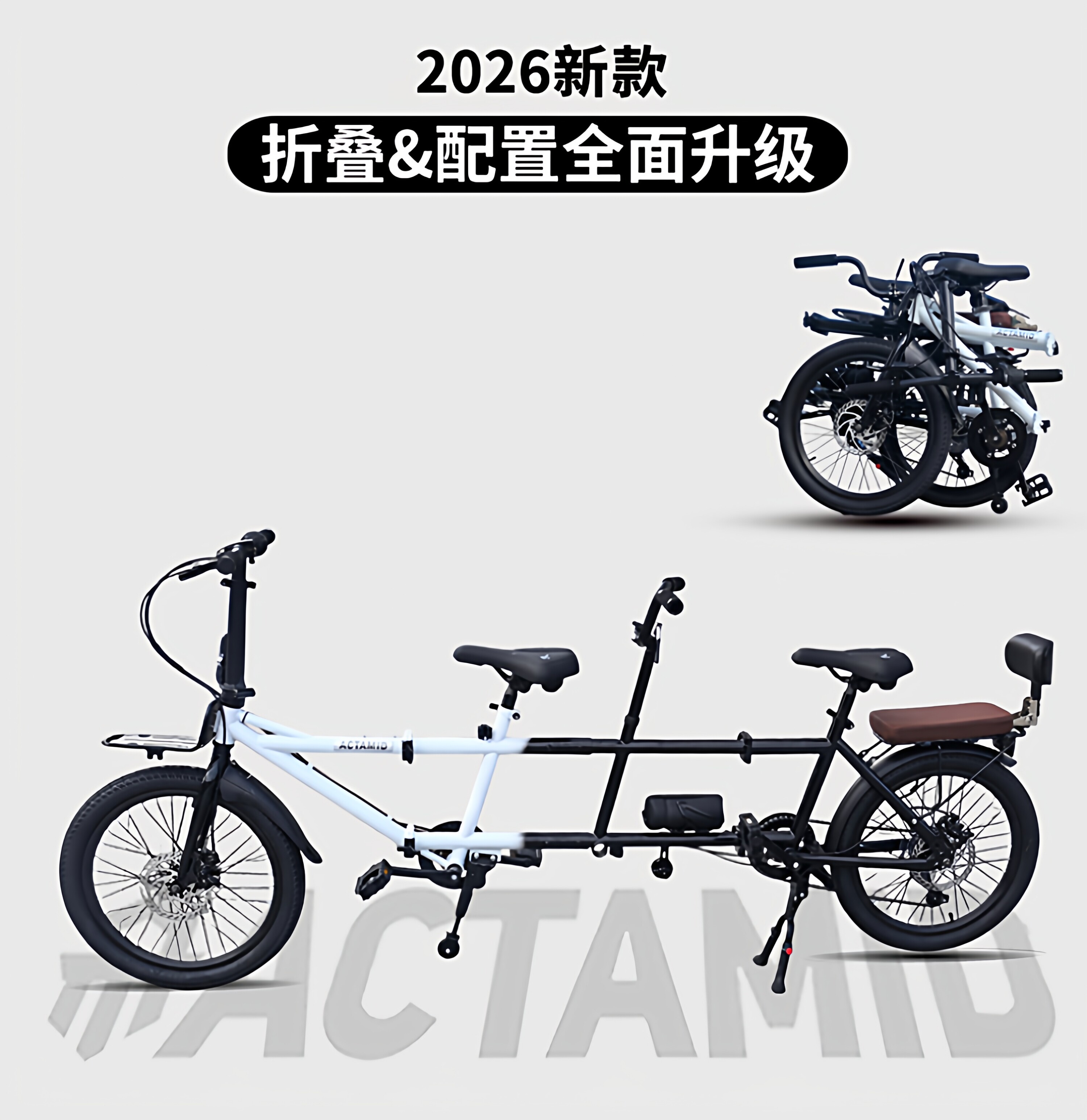 Stackable 60% off-Wheel Tandem Bicycle for Two People, Family Two-Person Riding, Mother-Child with Child, Three-Person Bike, Leisure Sightseeing Bike