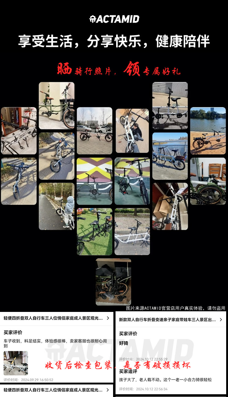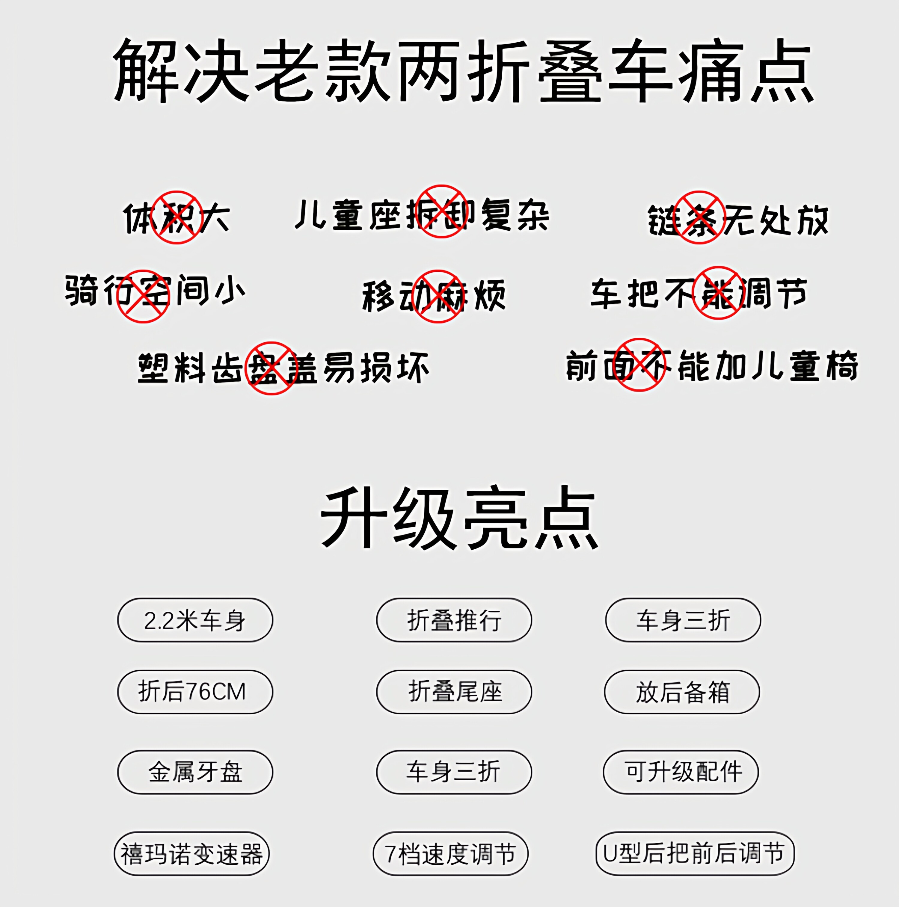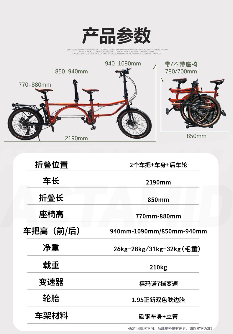 Stackable 60% off-Wheel Tandem Bicycle for Two People, Family Two-Person Riding, Mother-Child with Child, Three-Person Bike, Leisure Sightseeing Bike
