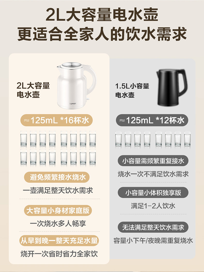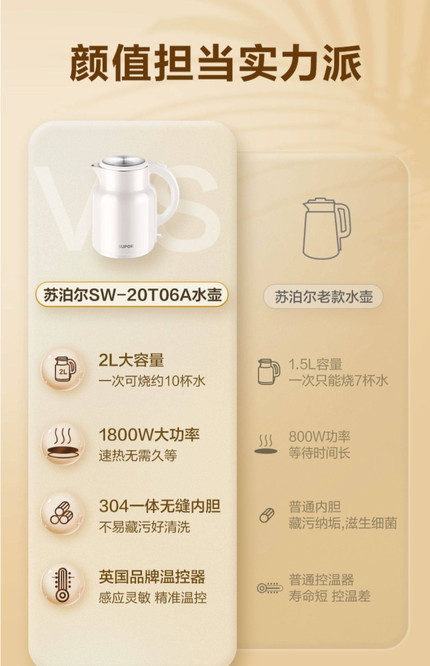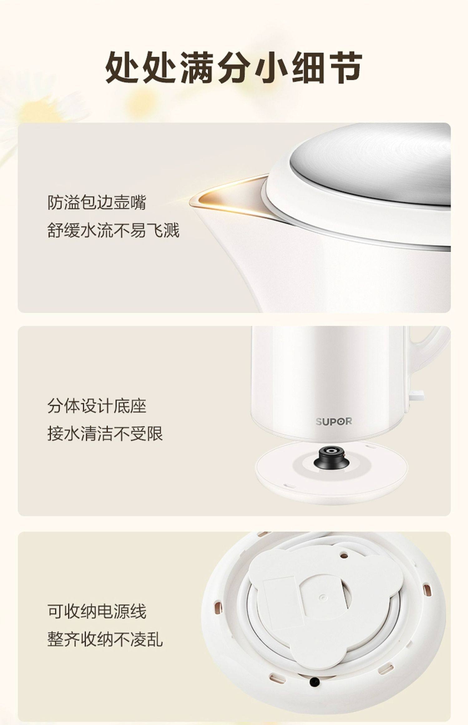 苏泊尔烧水壶家用电热水壶大容量316L不锈钢自动电开水壶2025煮水