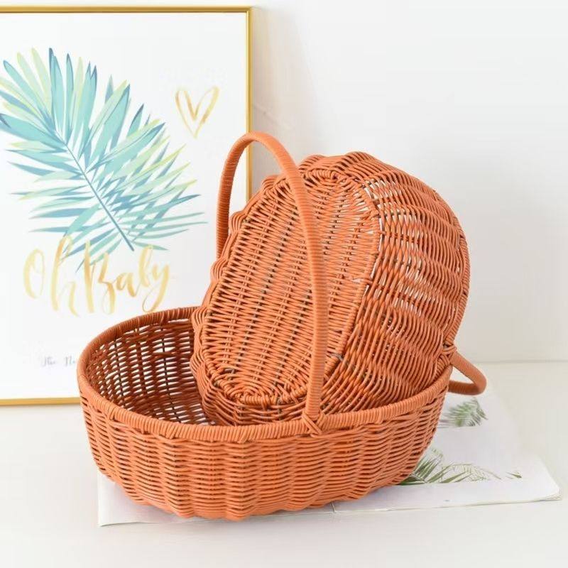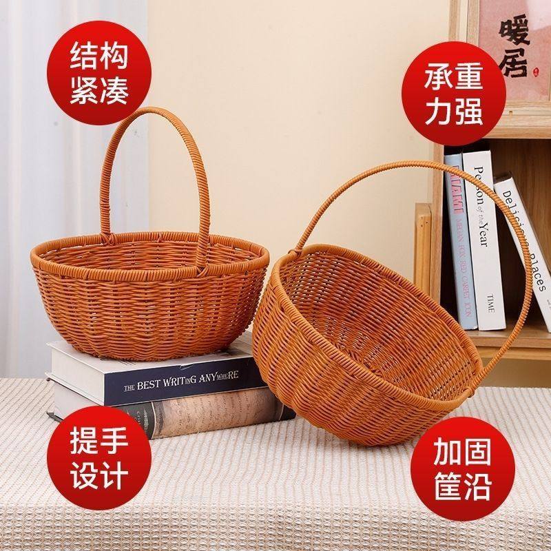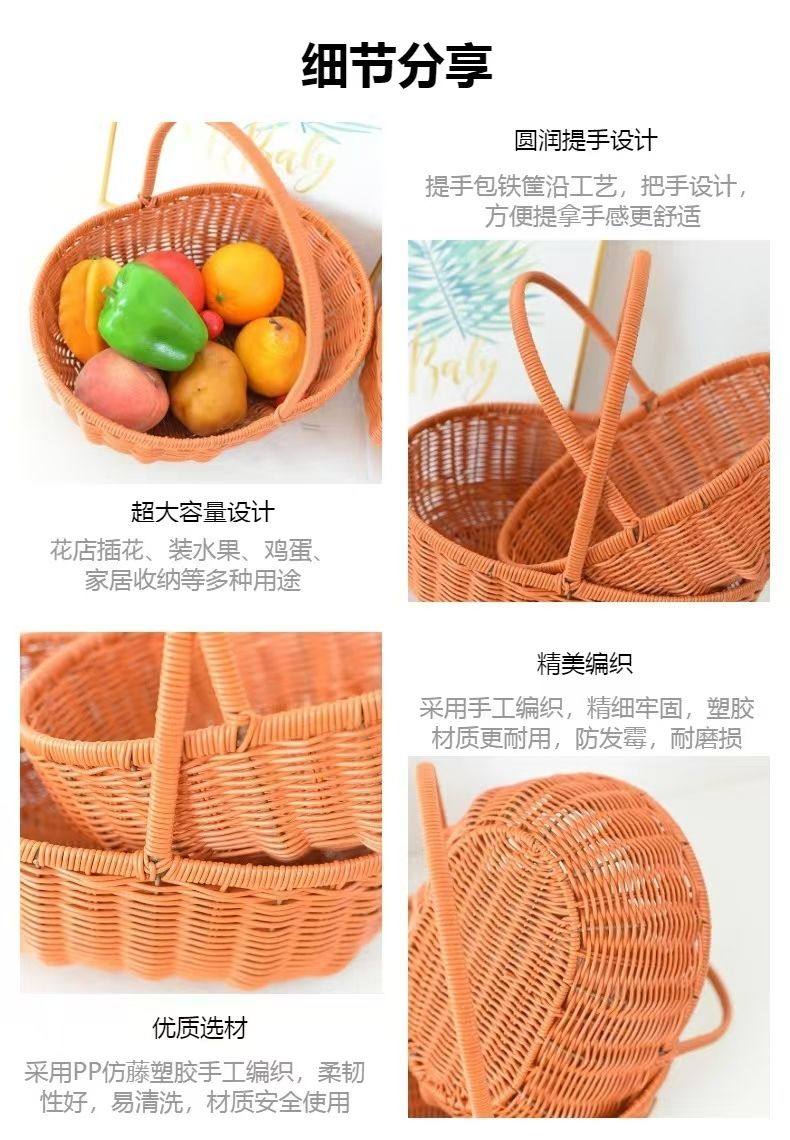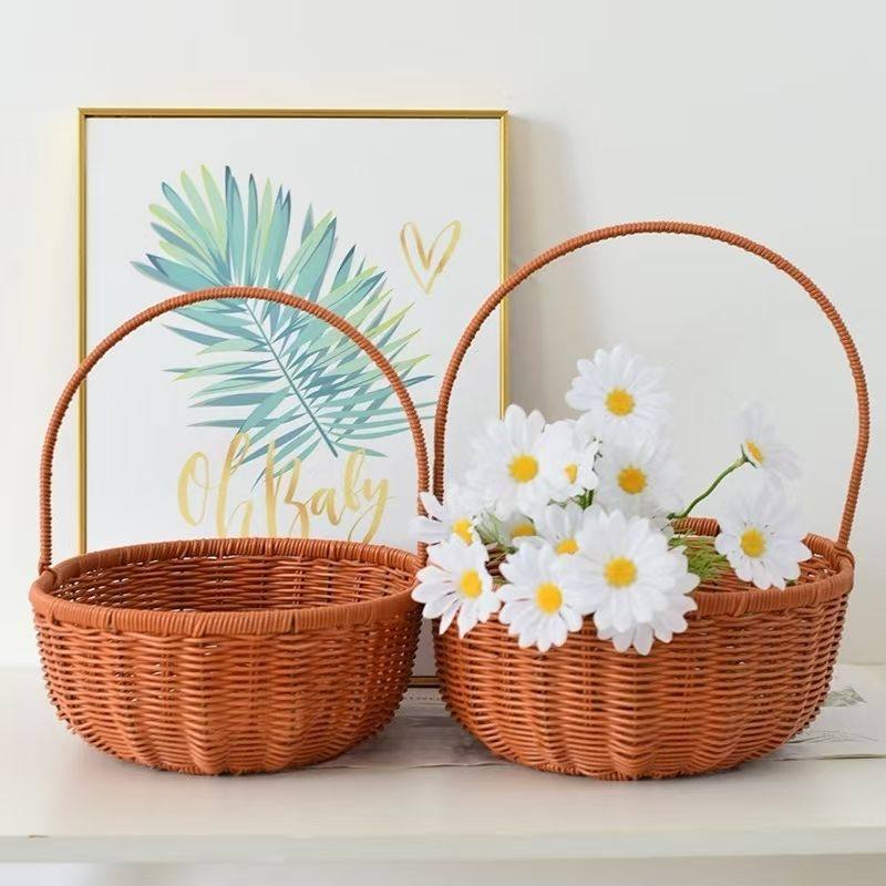 ins Windvine Woven Egg Basket Portable Picnic Fruit and Vegetable Storage Basket Woven Flower Basket Photo Props Decoration