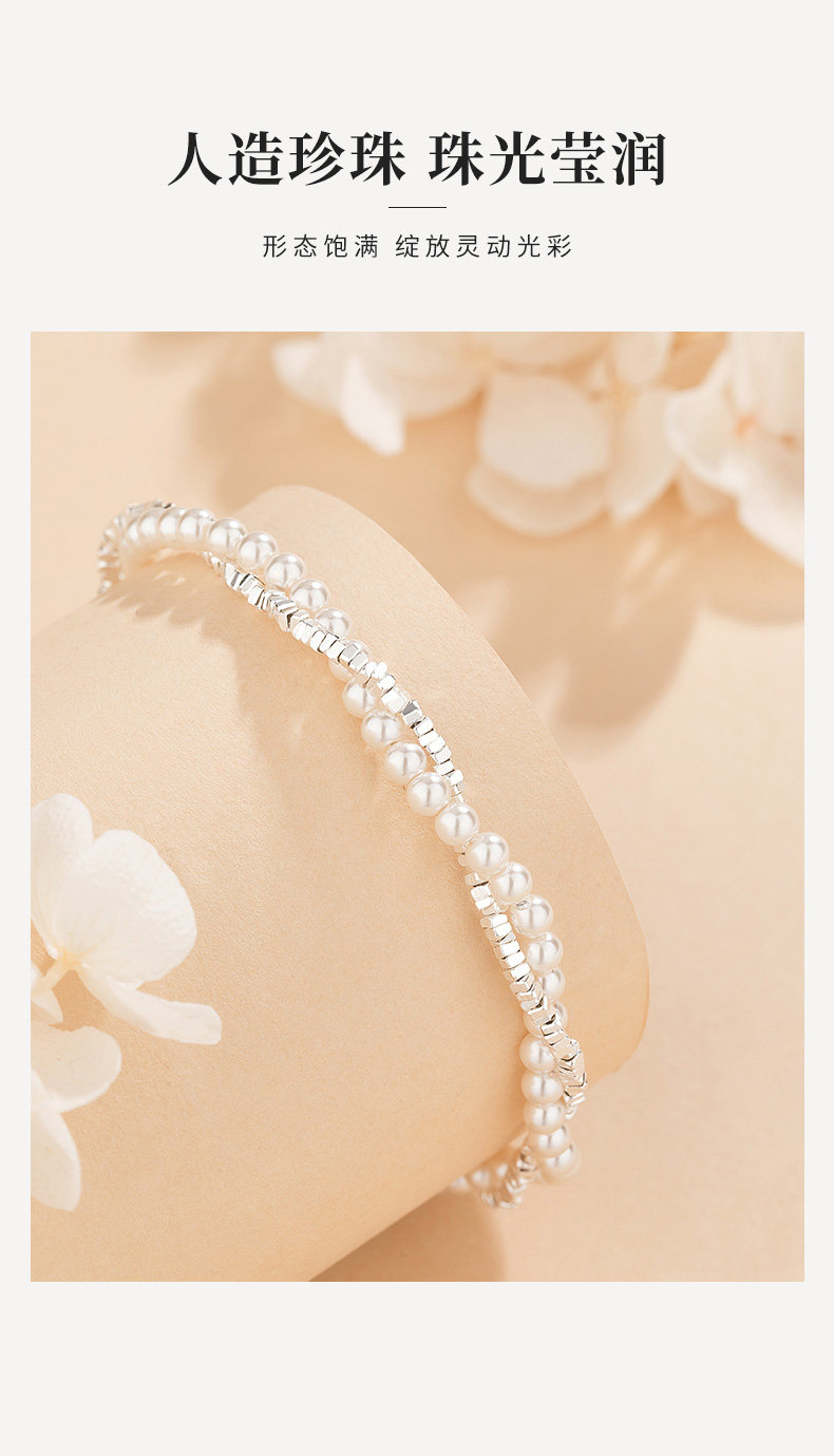双层珍珠碎银子串珠手链女款纯银轻奢高级感手串生日礼物送女友