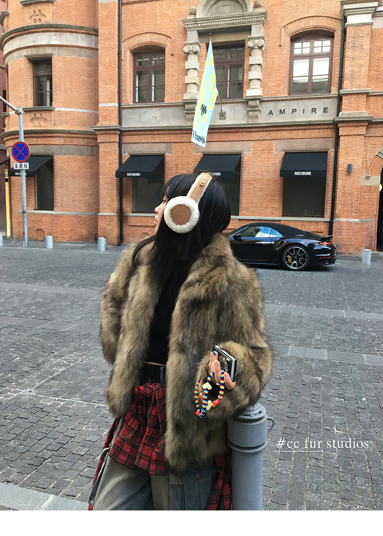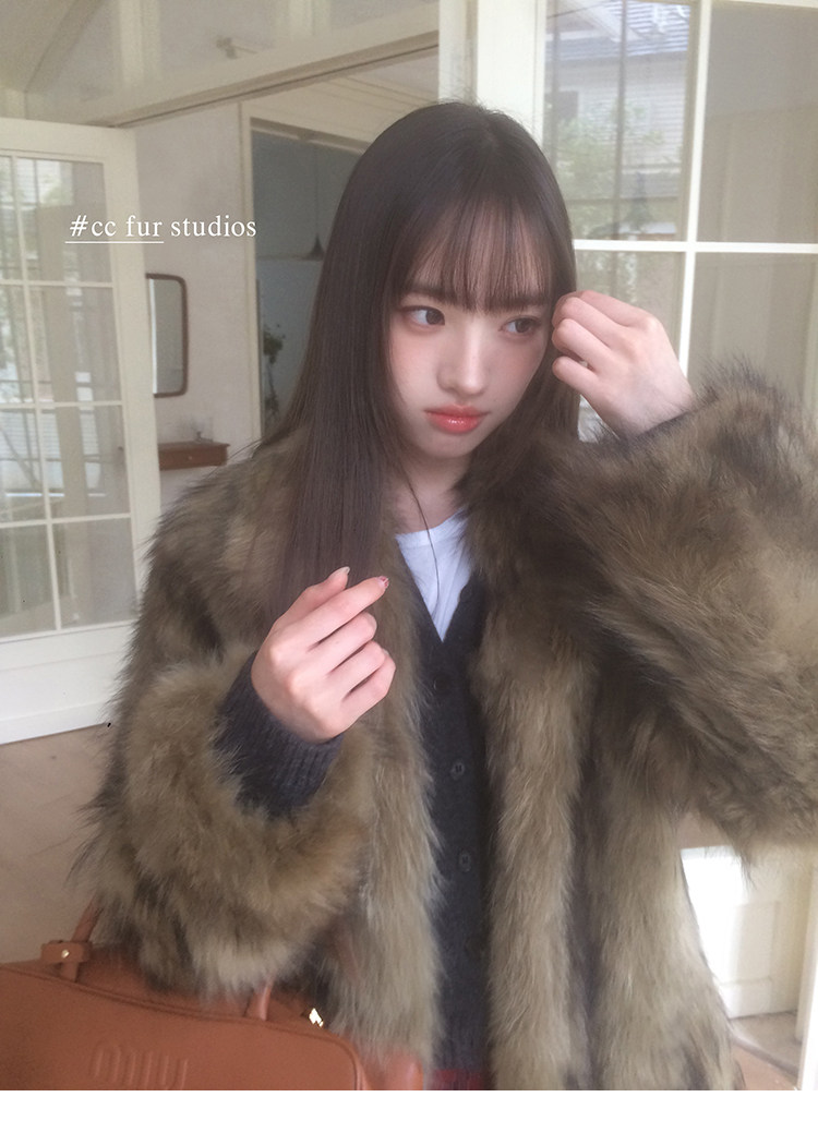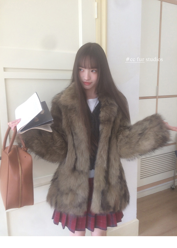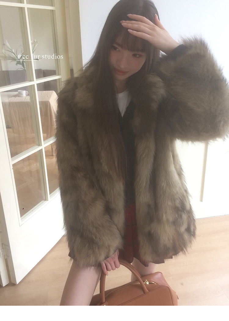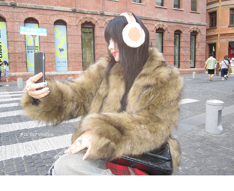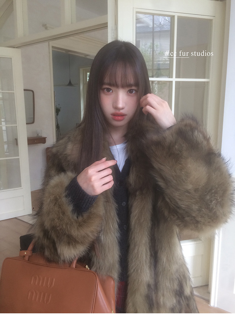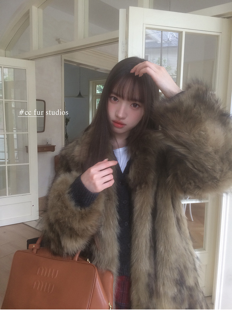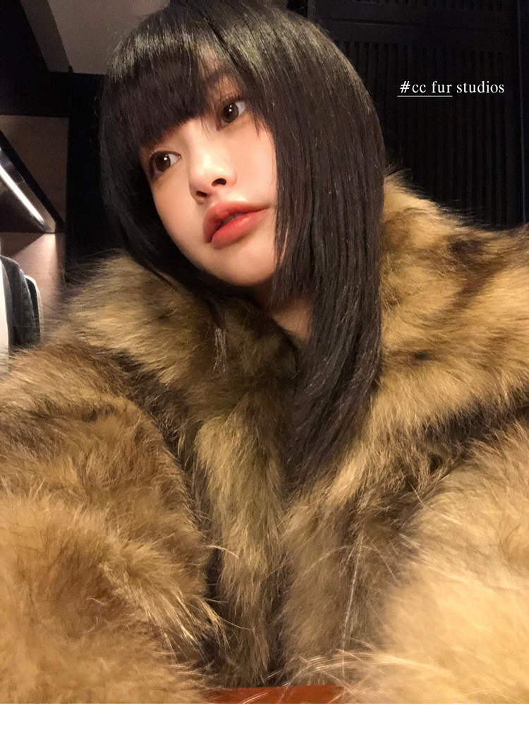CC Pelz mittelalterliche Schwester großes Revers Waschbärpelz einfache Damen Winter neue Jacke jungen Stil
