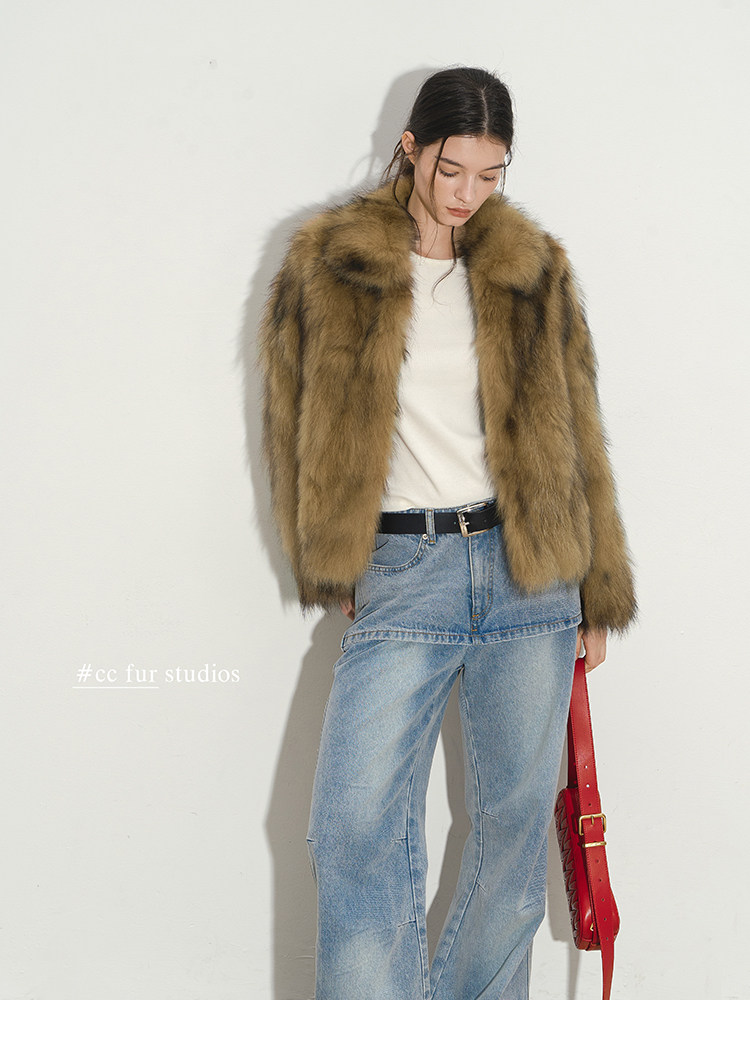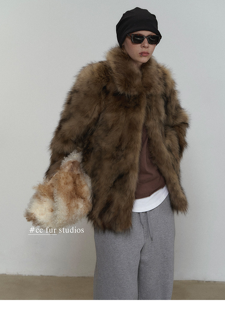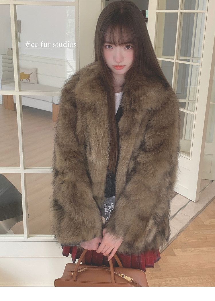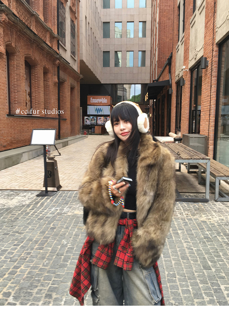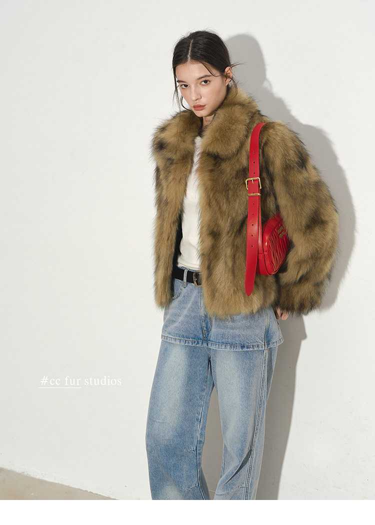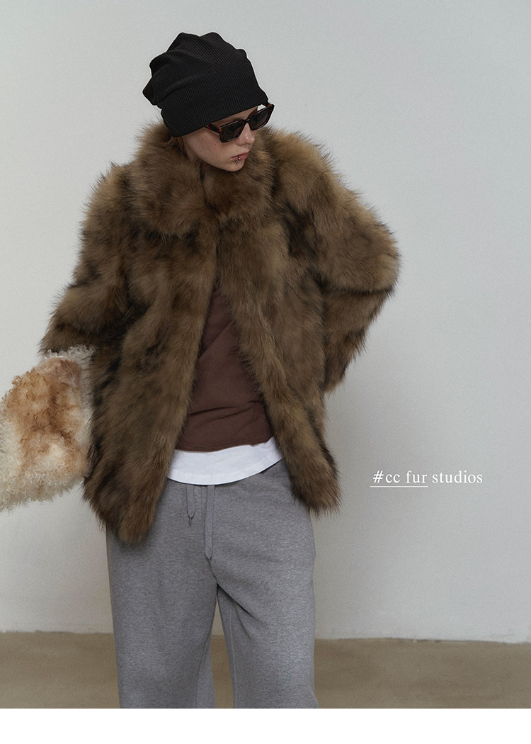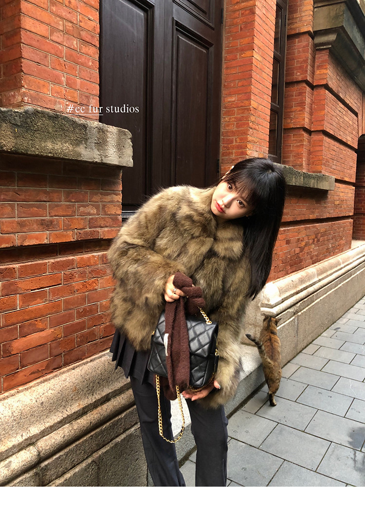CC Pelz mittelalterliche Schwester großes Revers Waschbärpelz einfache Damen Winter neue Jacke jungen Stil