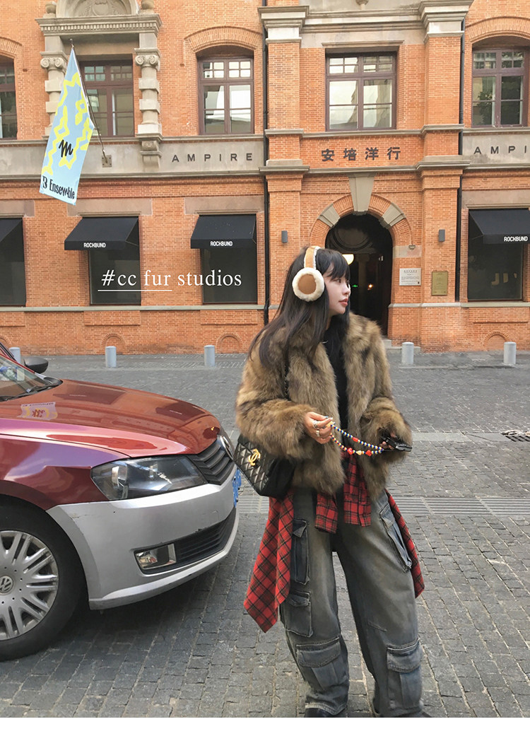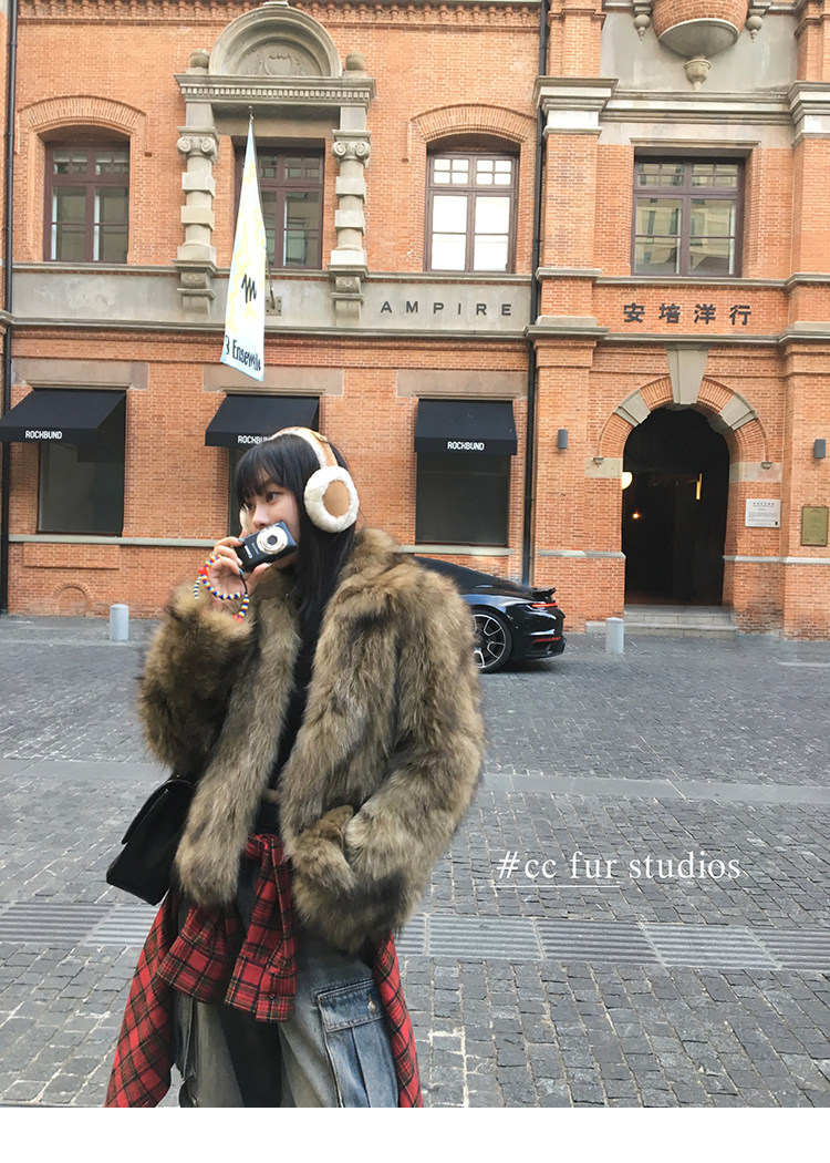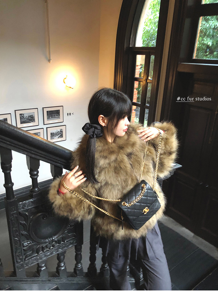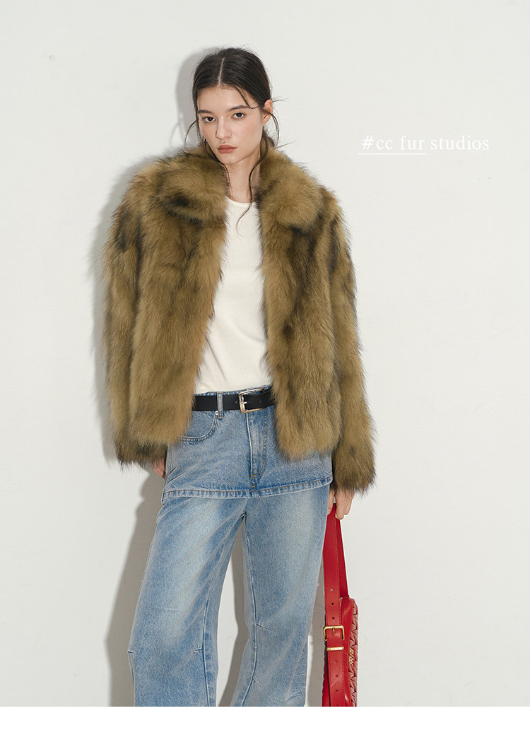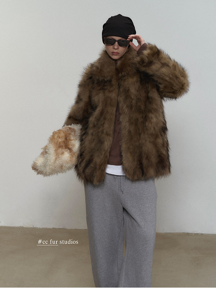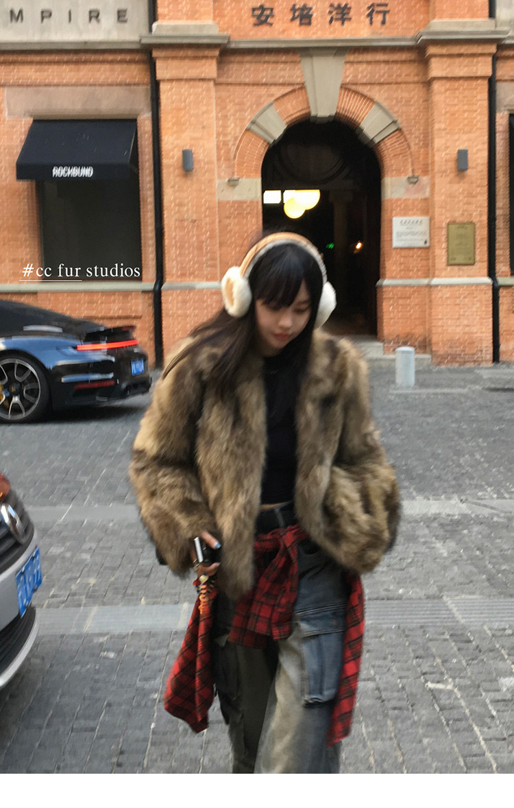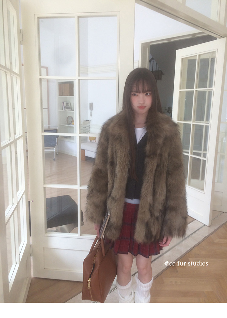CC Pelz mittelalterliche Schwester großes Revers Waschbärpelz einfache Damen Winter neue Jacke jungen Stil