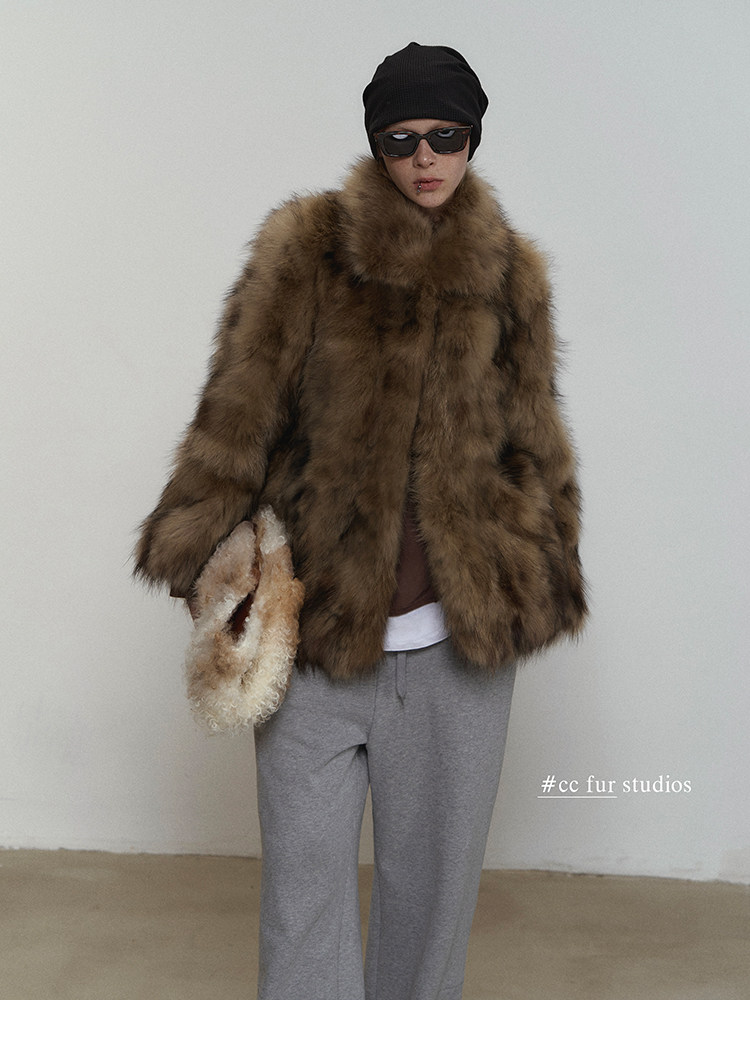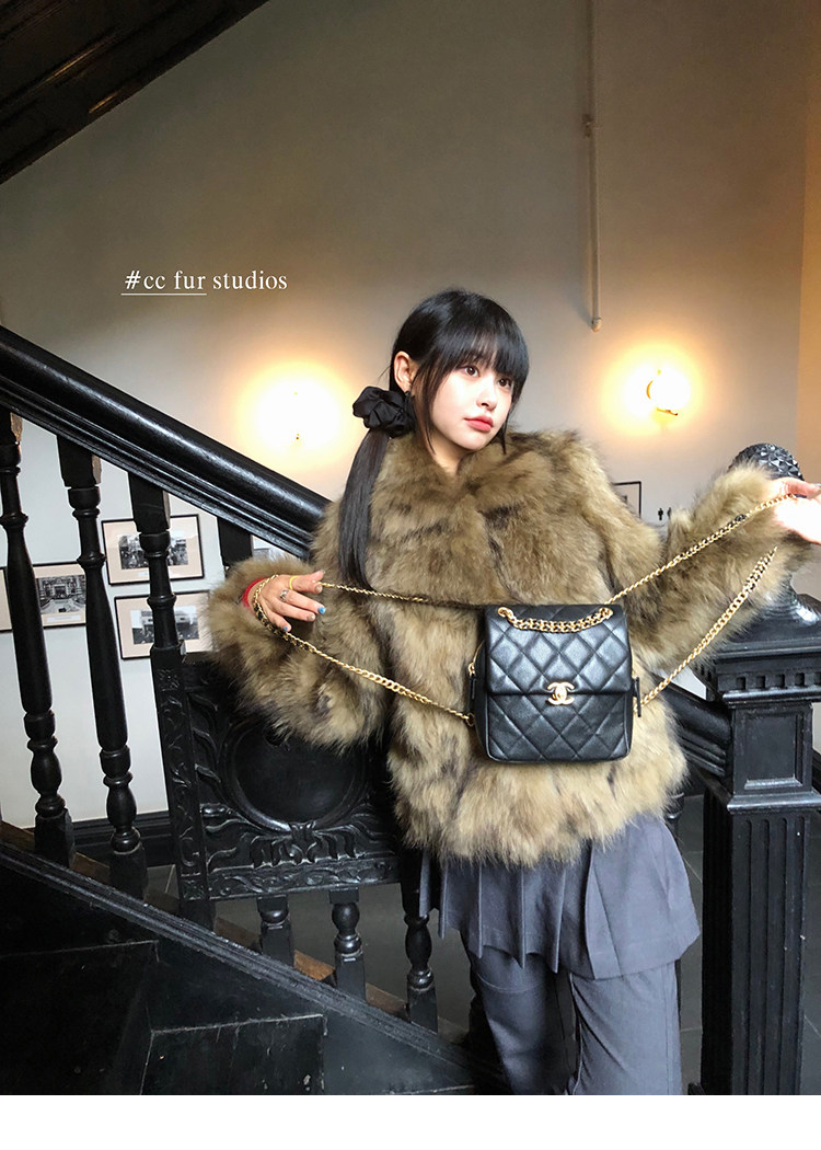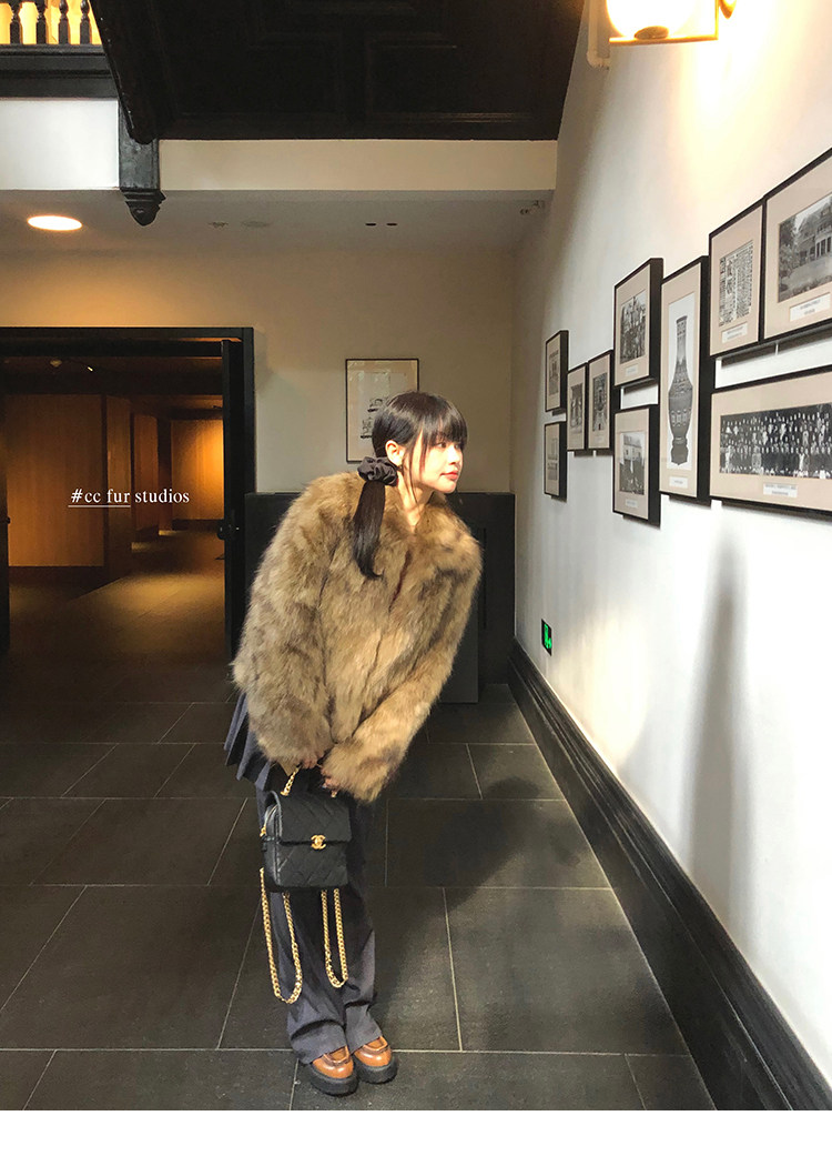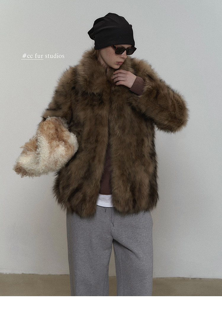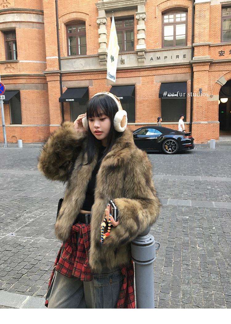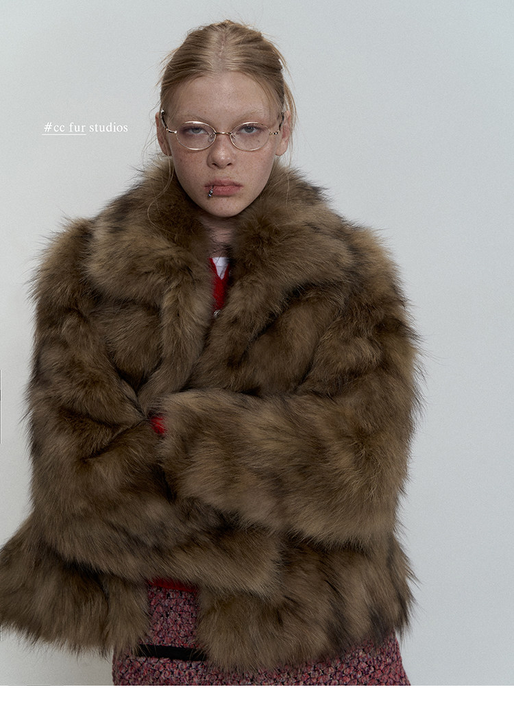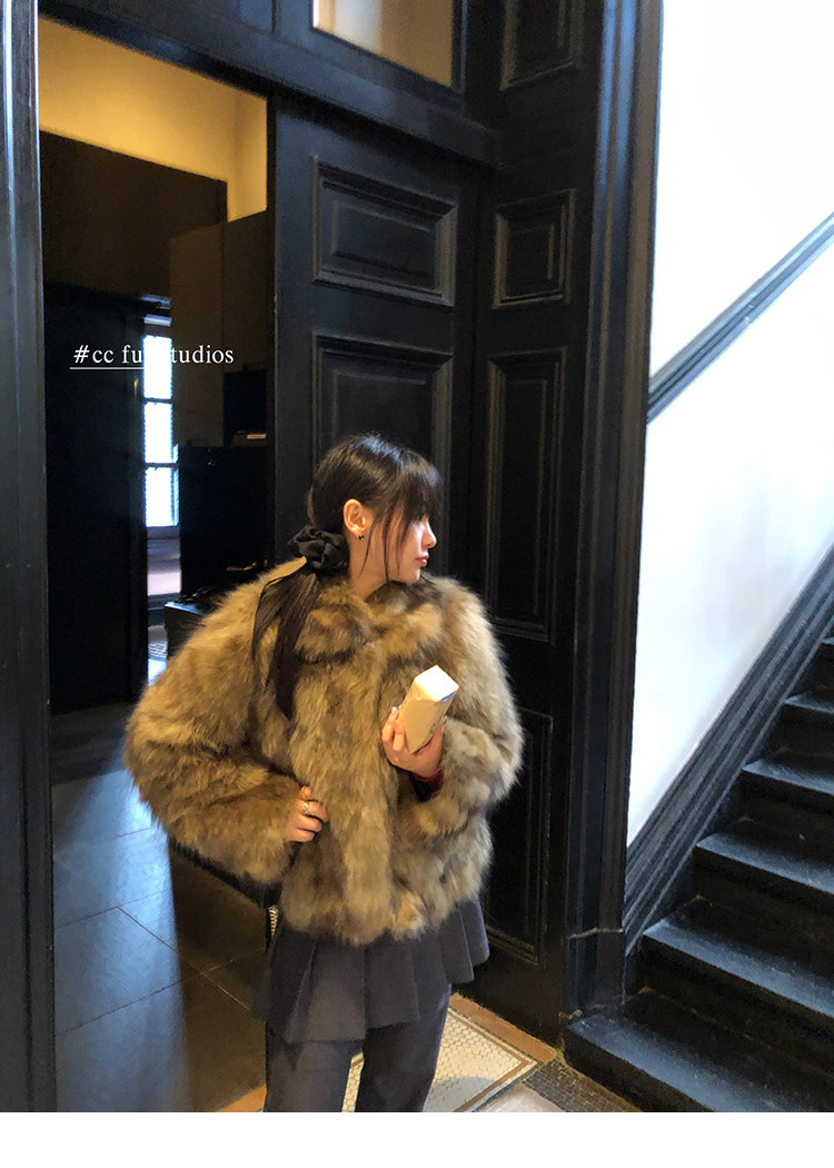 CC Pelz mittelalterliche Schwester großes Revers Waschbärpelz einfache Damen Winter neue Jacke jungen Stil