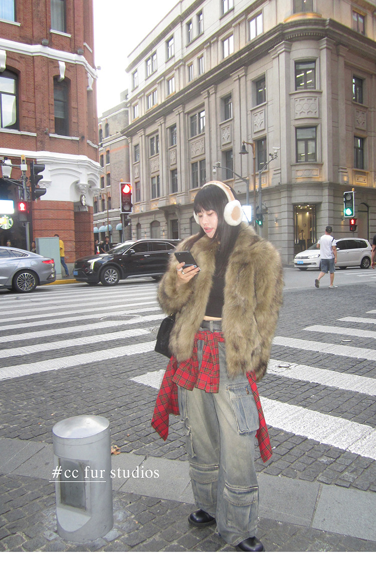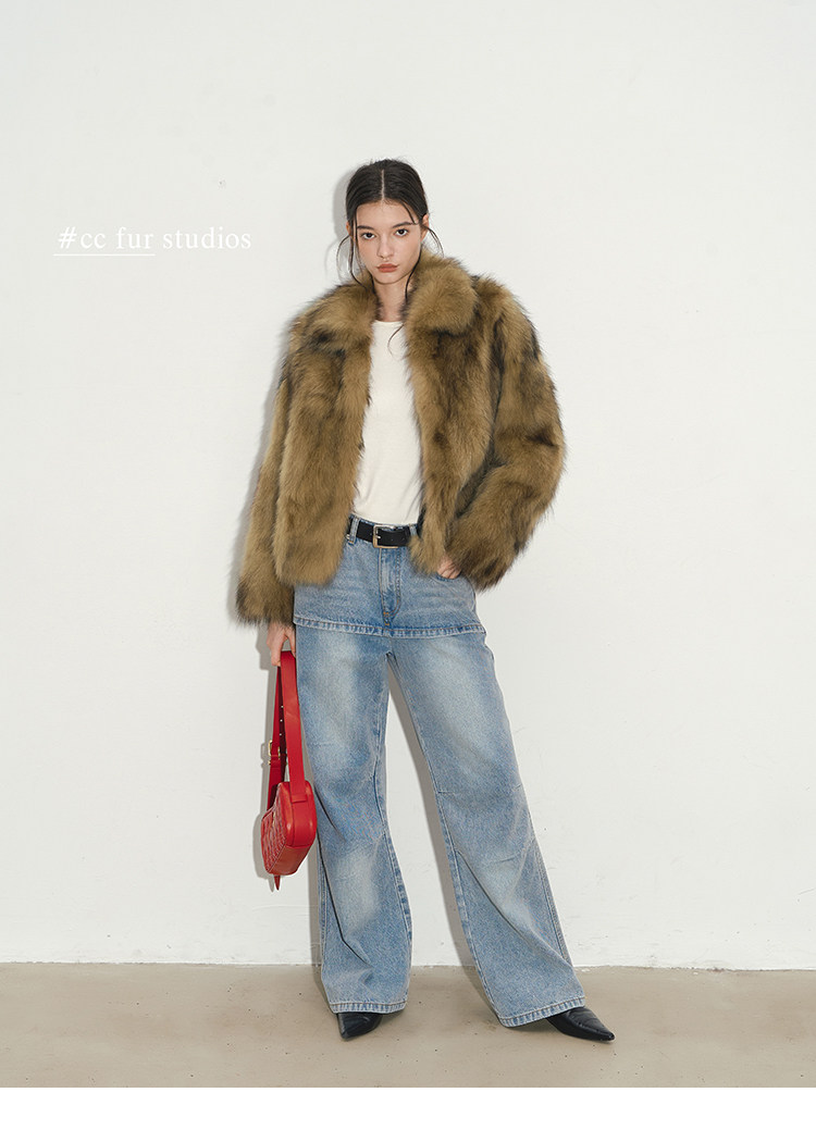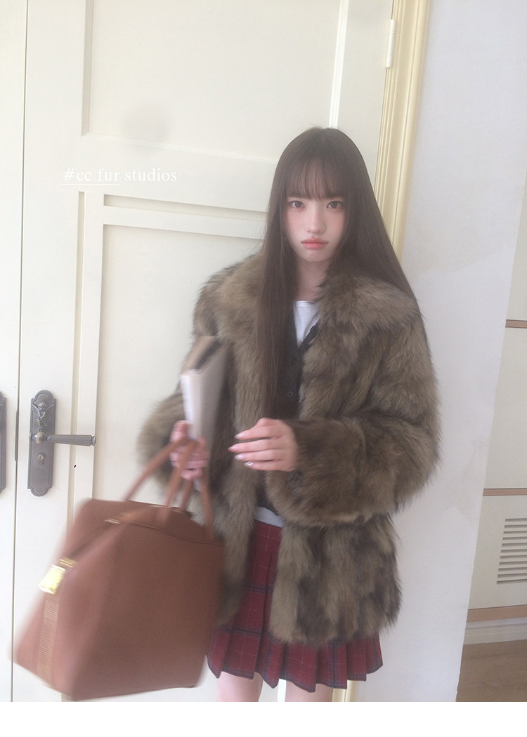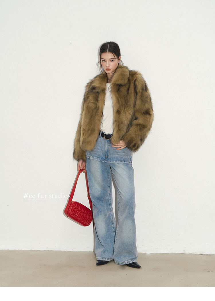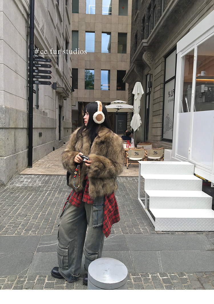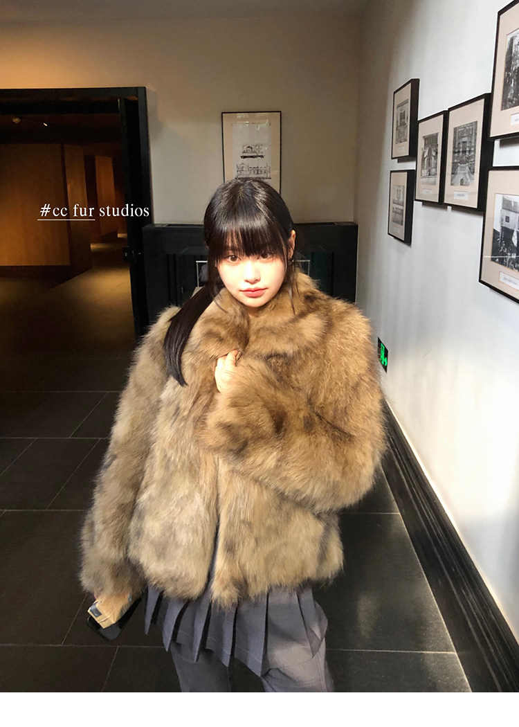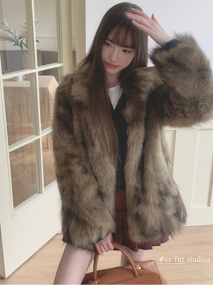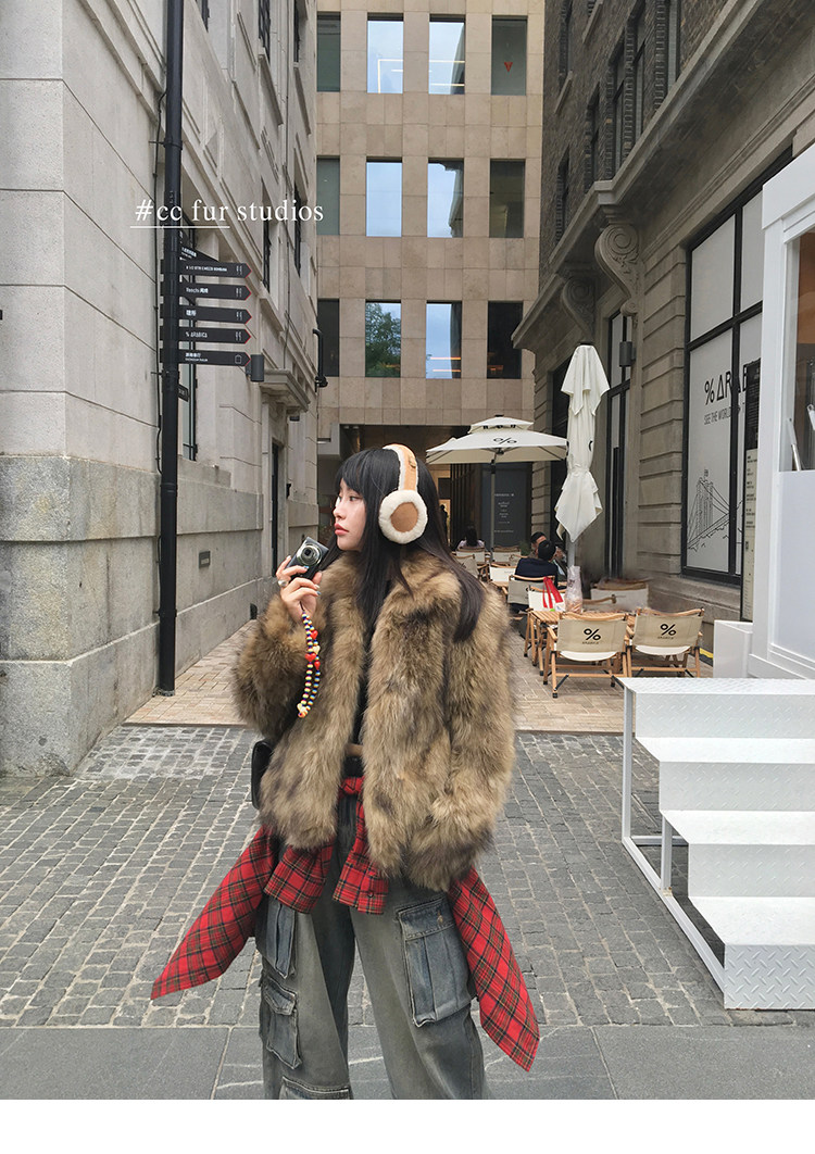 CC Pelz mittelalterliche Schwester großes Revers Waschbärpelz einfache Damen Winter neue Jacke jungen Stil