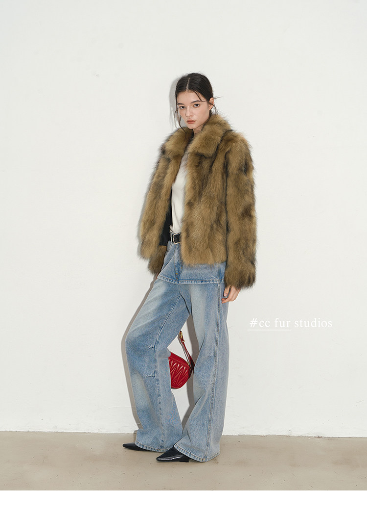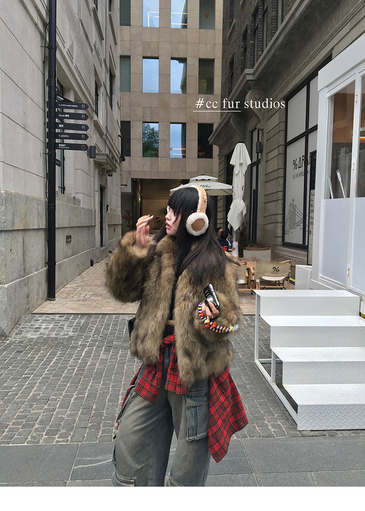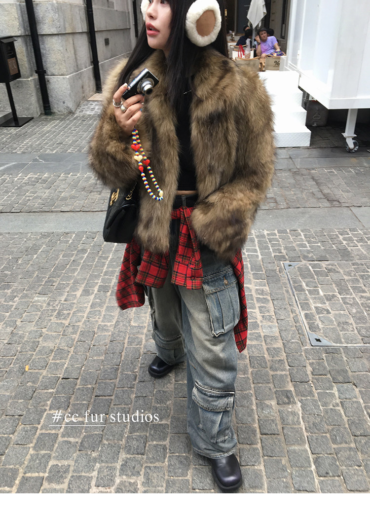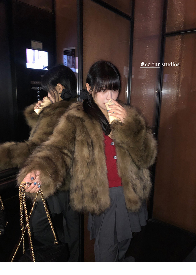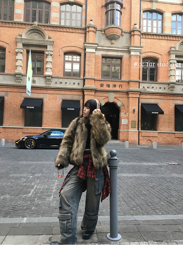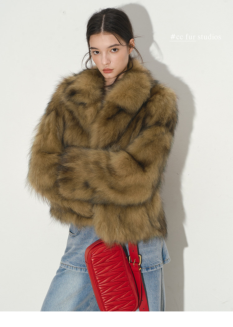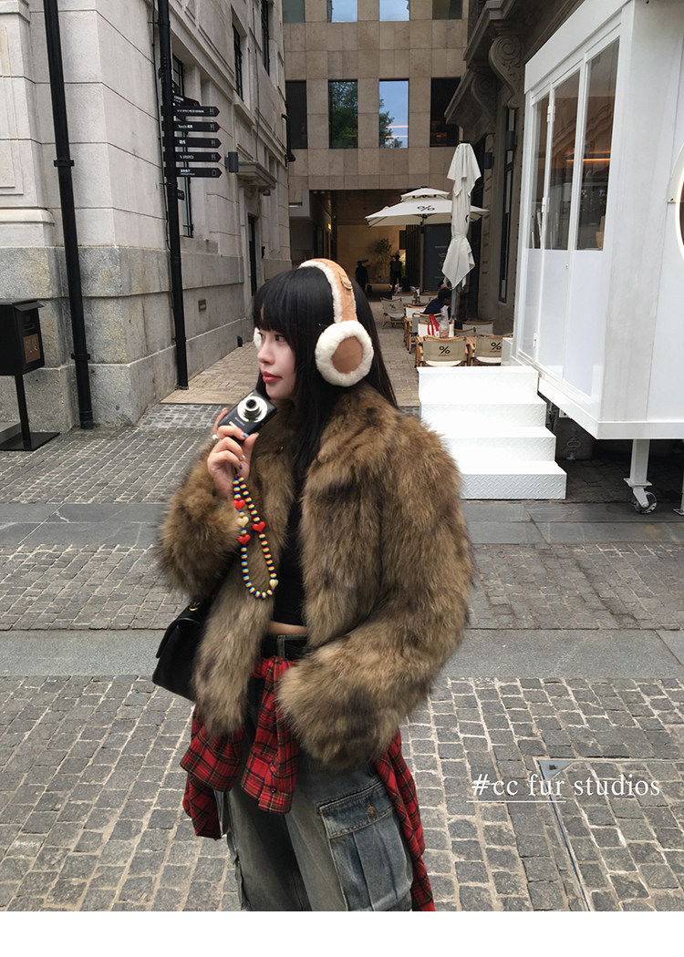 CC Pelz mittelalterliche Schwester großes Revers Waschbärpelz einfache Damen Winter neue Jacke jungen Stil