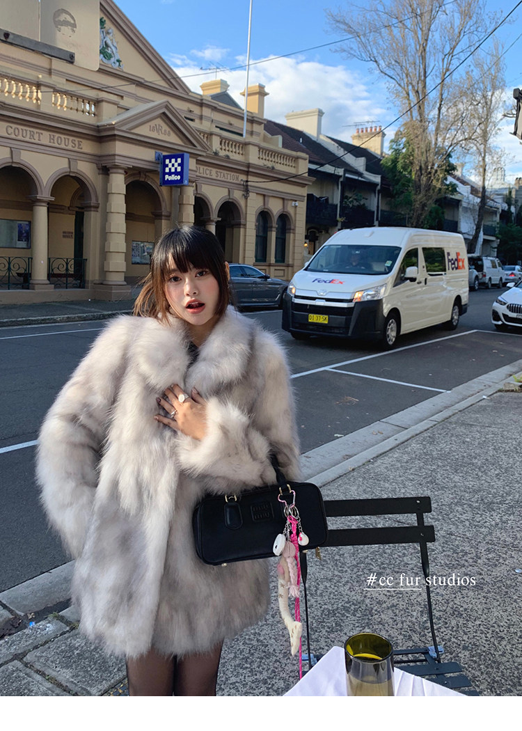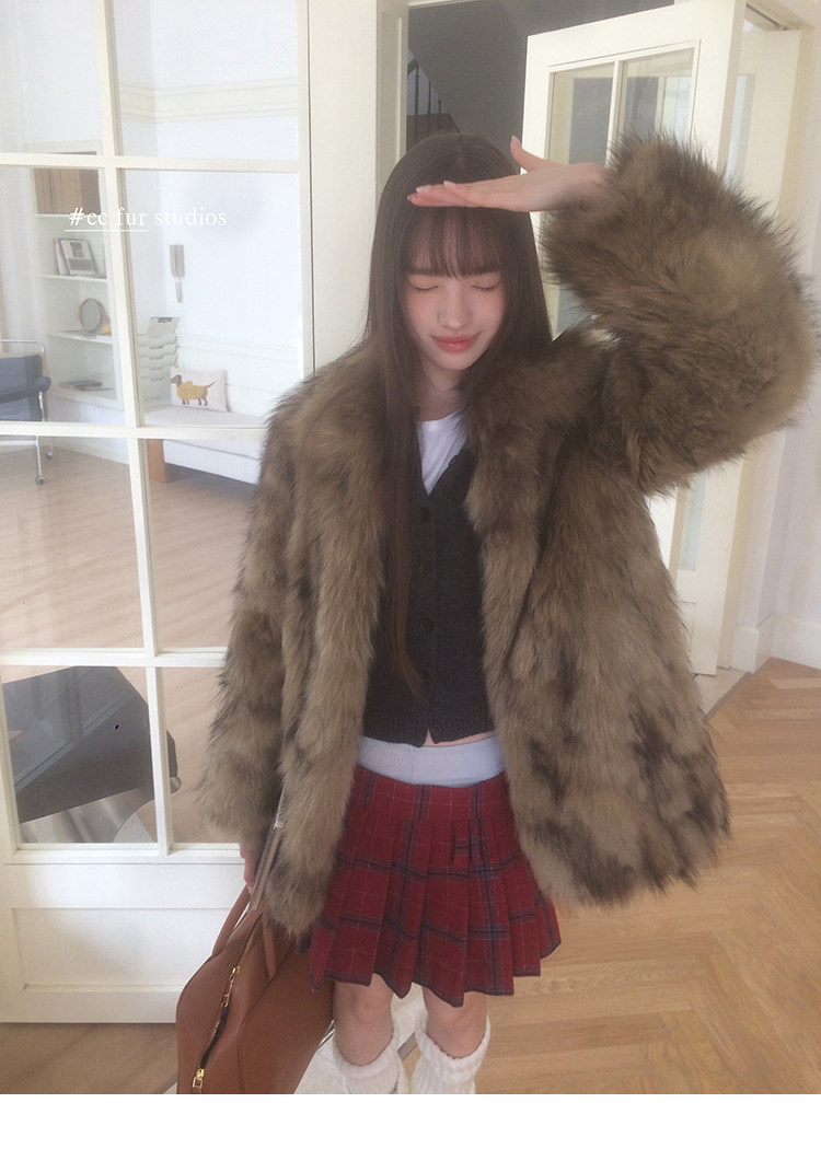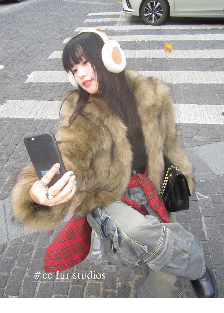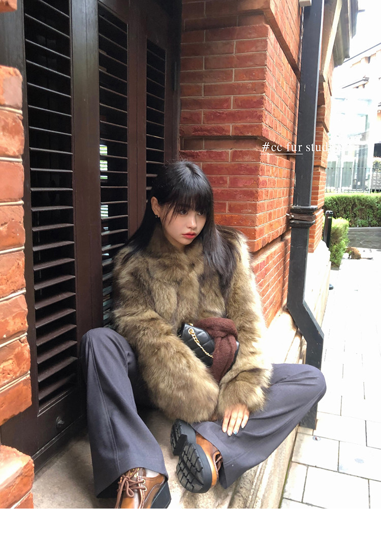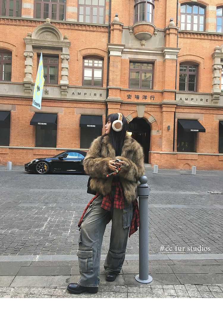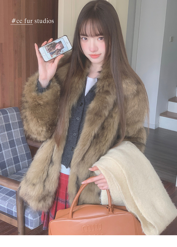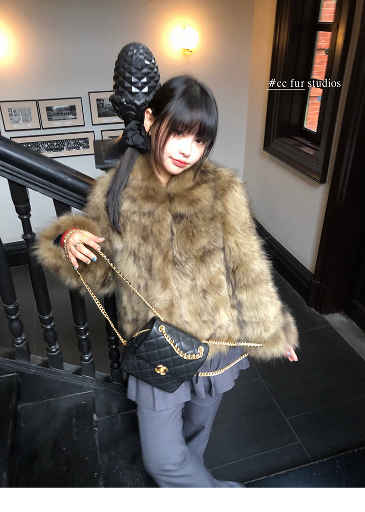 CC Pelz mittelalterliche Schwester großes Revers Waschbärpelz einfache Damen Winter neue Jacke jungen Stil