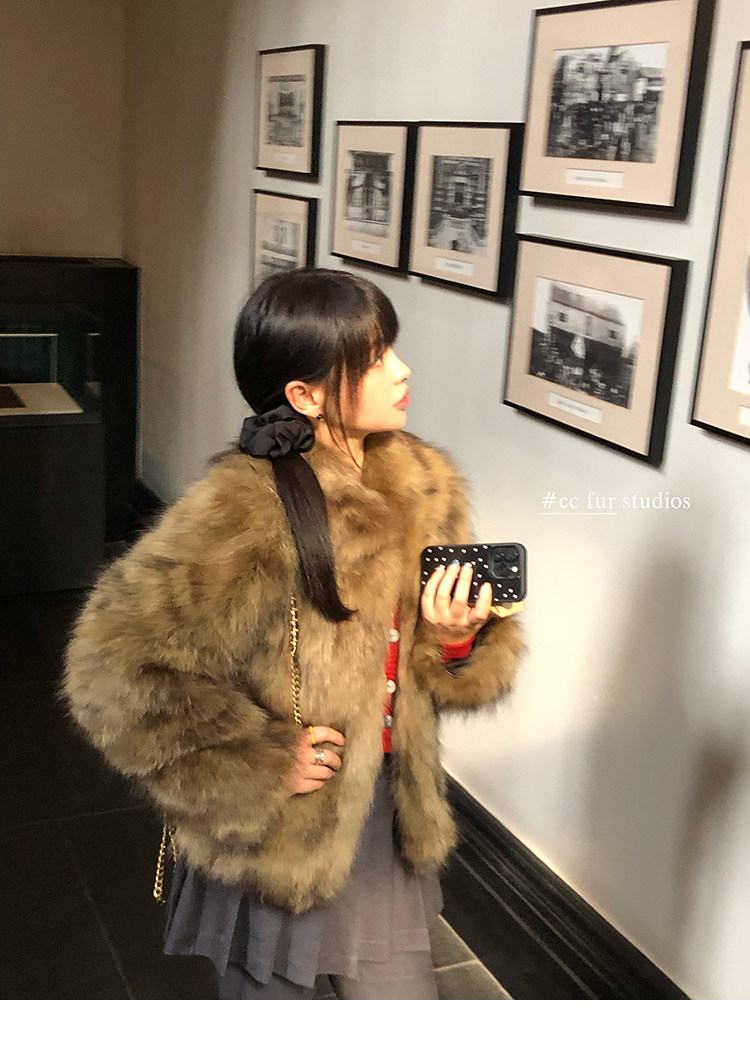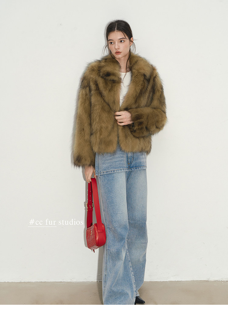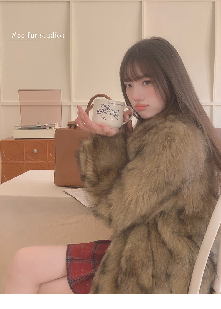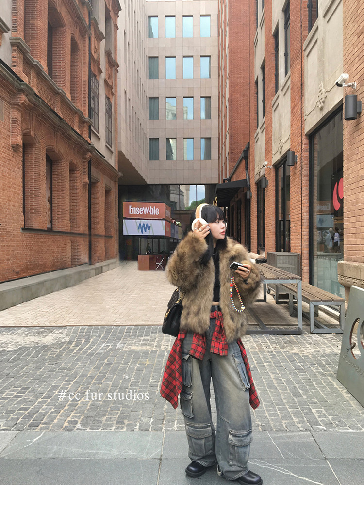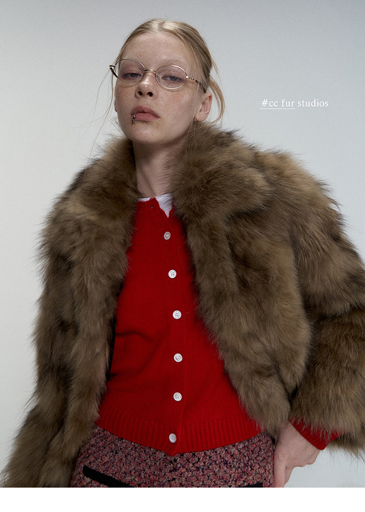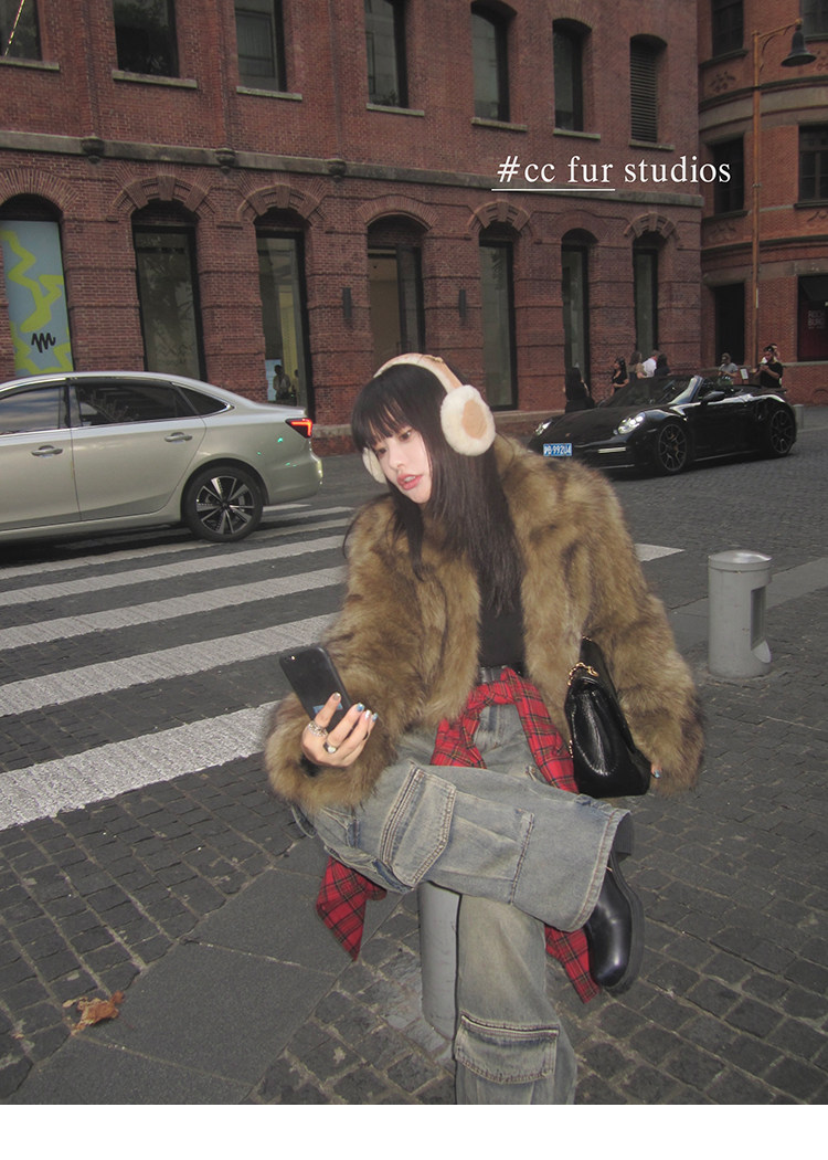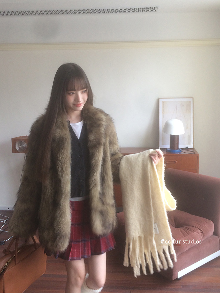 CC Pelz mittelalterliche Schwester großes Revers Waschbärpelz einfache Damen Winter neue Jacke jungen Stil