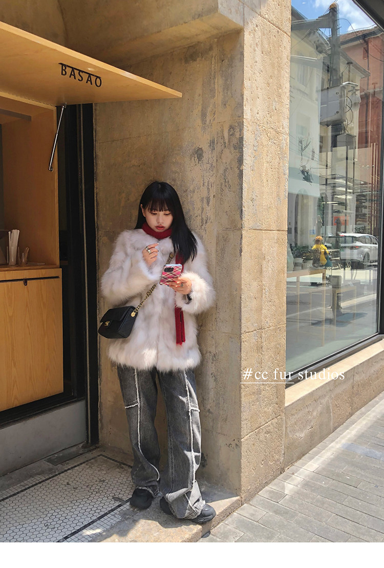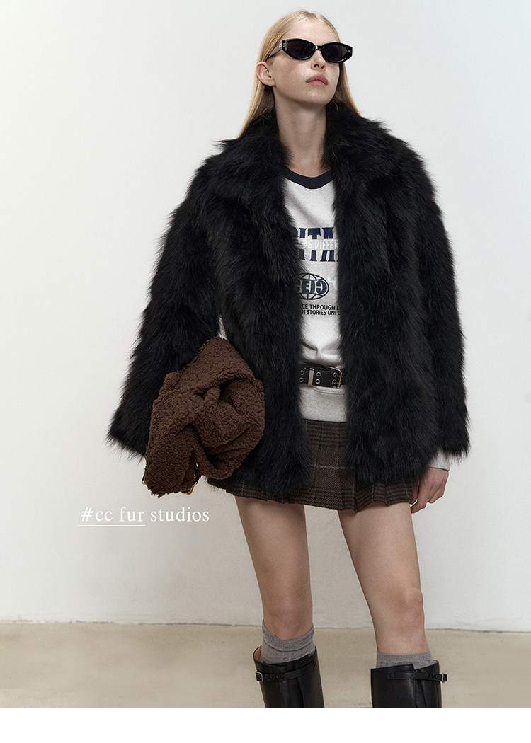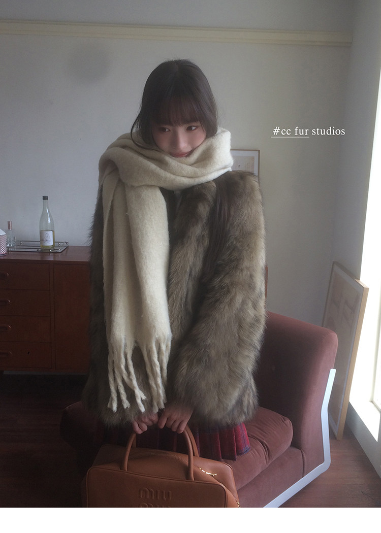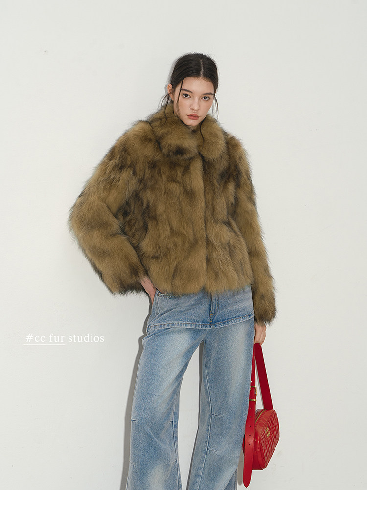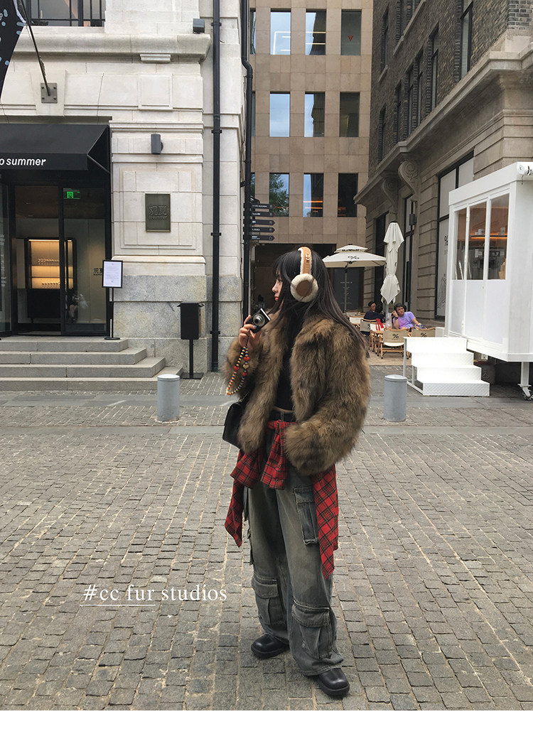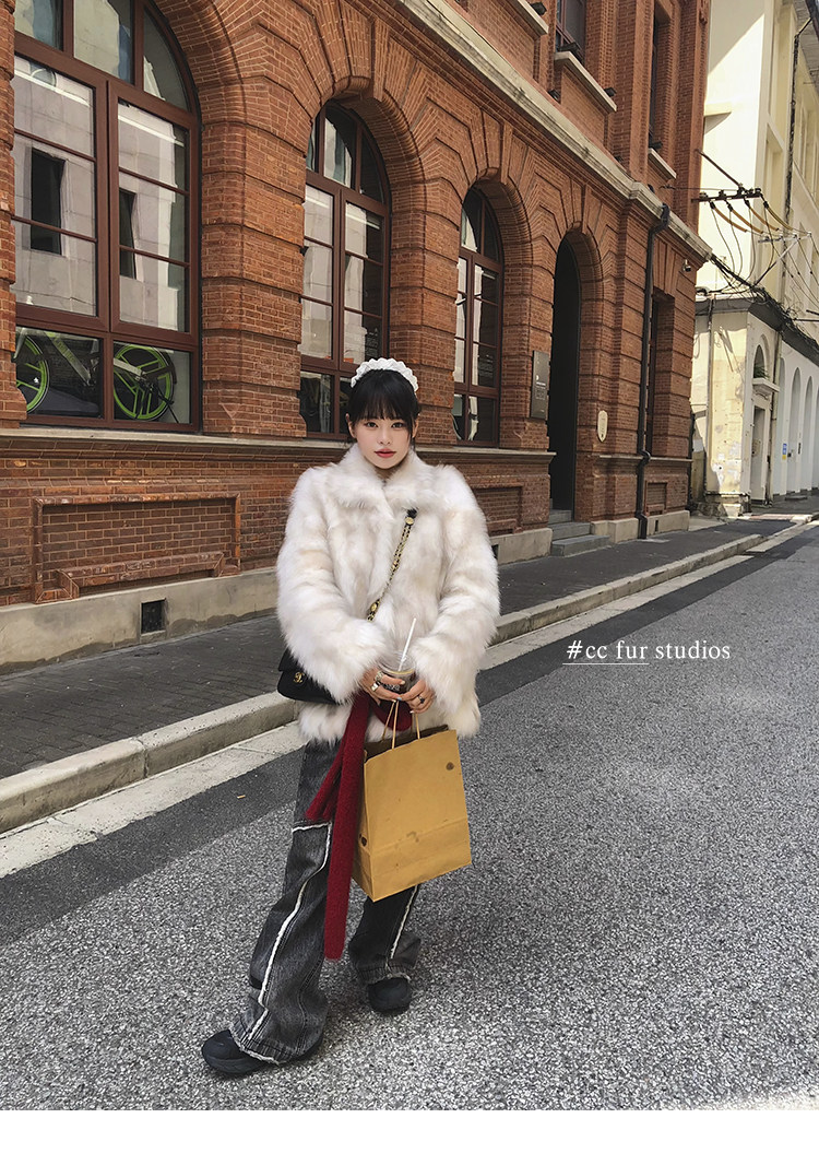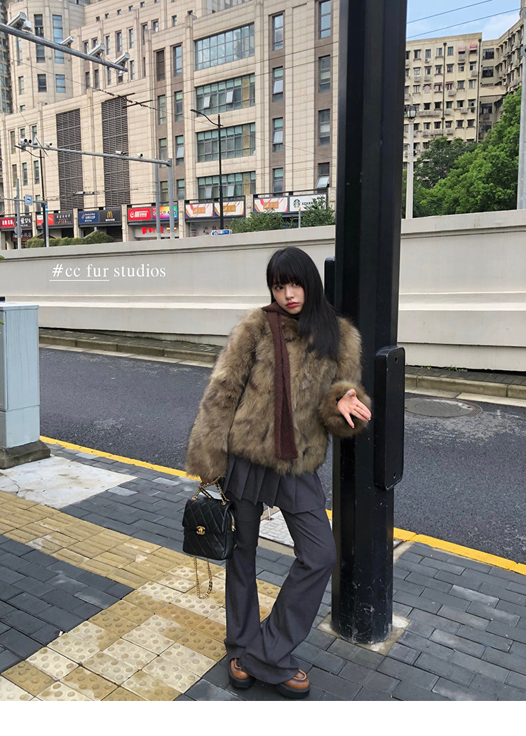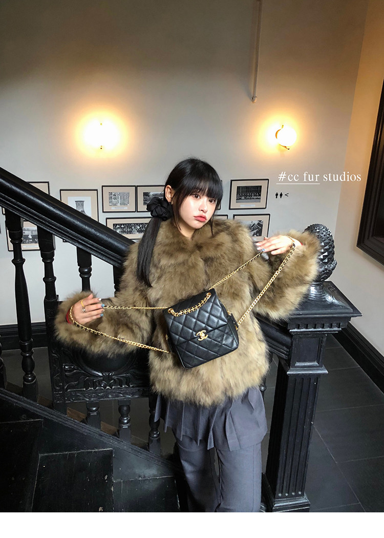 CC Pelz mittelalterliche Schwester großes Revers Waschbärpelz einfache Damen Winter neue Jacke jungen Stil