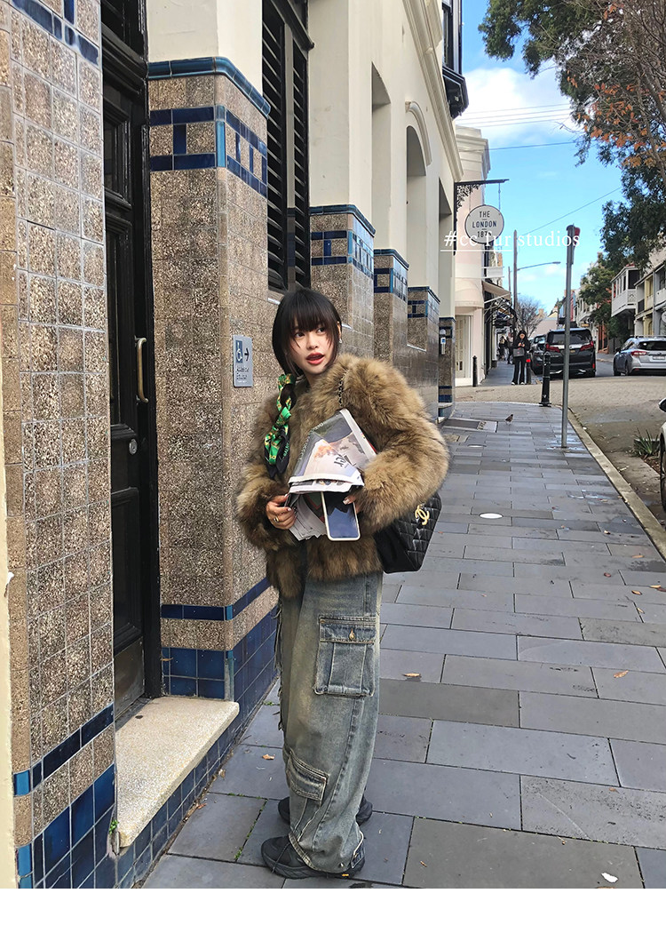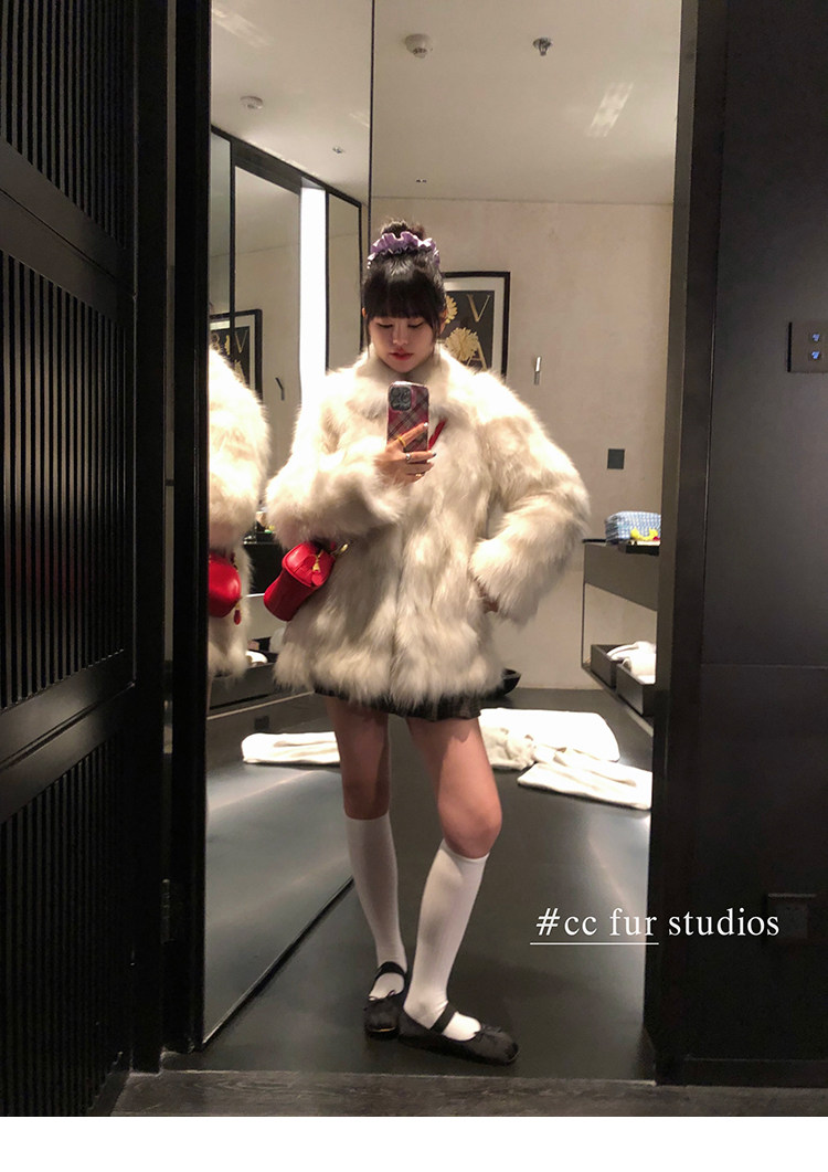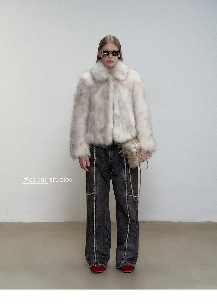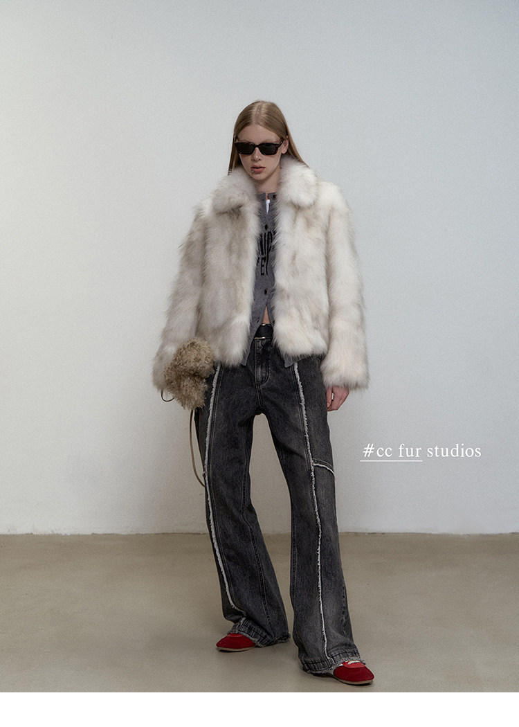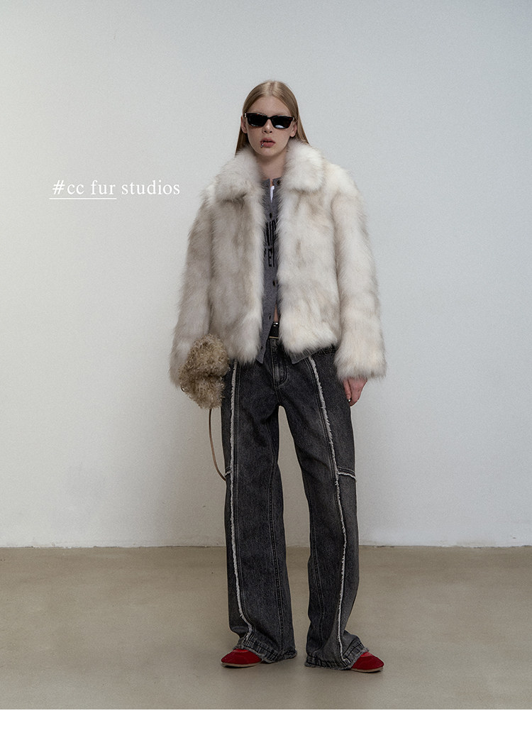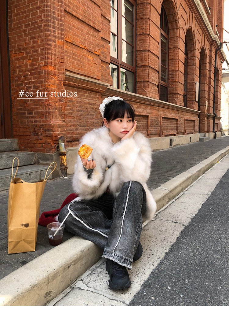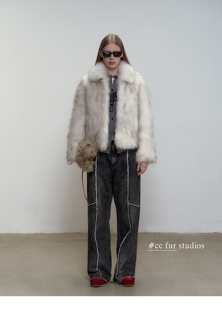 CC Pelz mittelalterliche Schwester großes Revers Waschbärpelz einfache Damen Winter neue Jacke jungen Stil