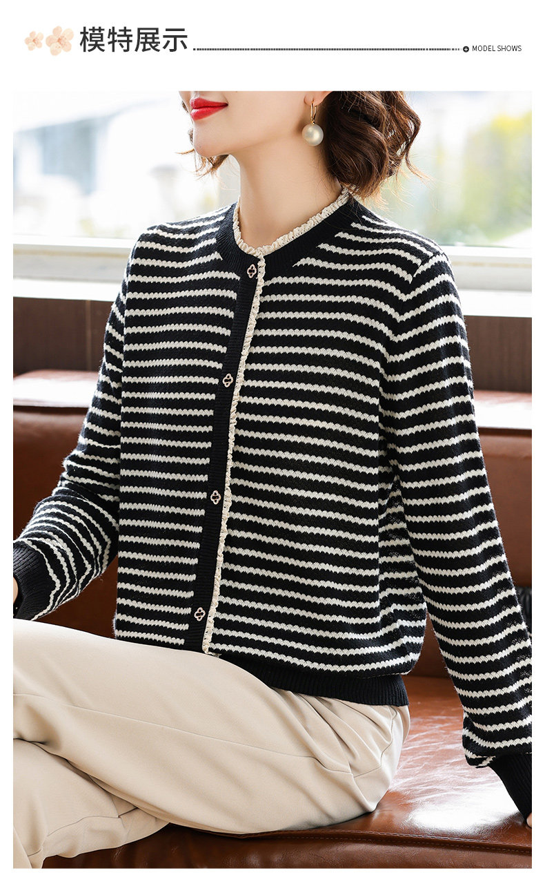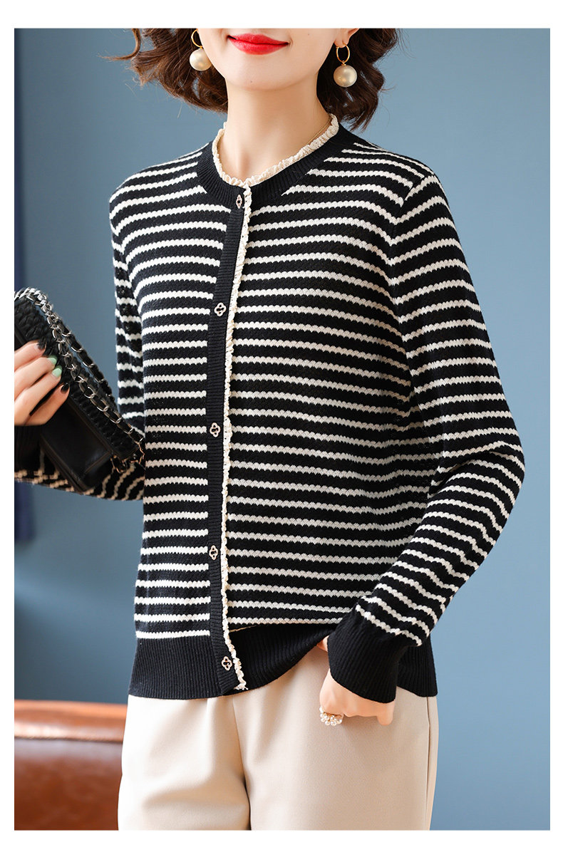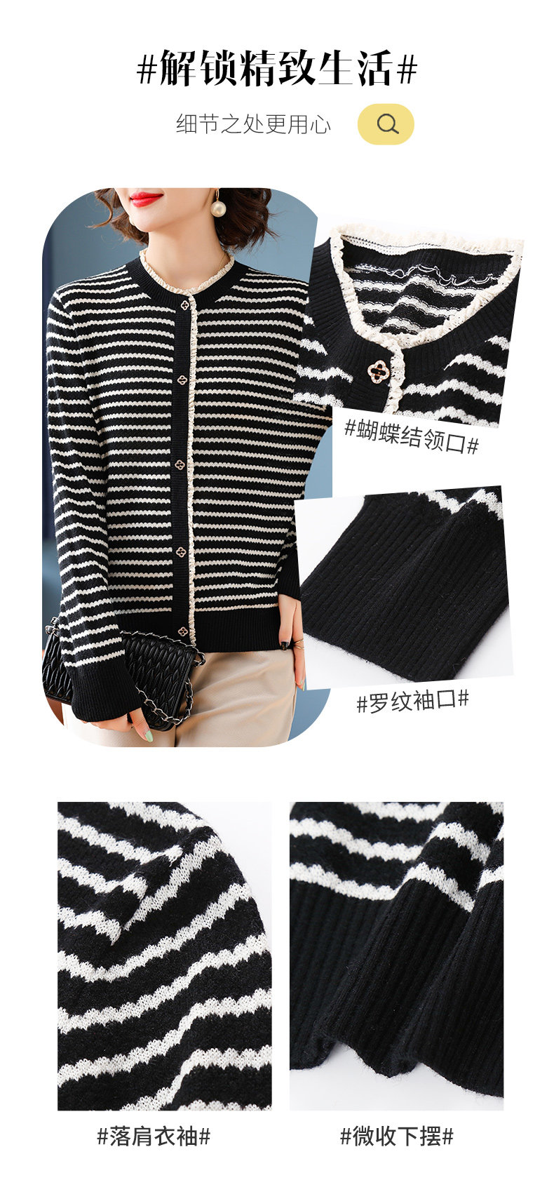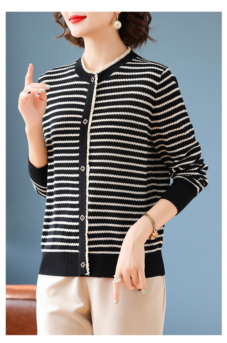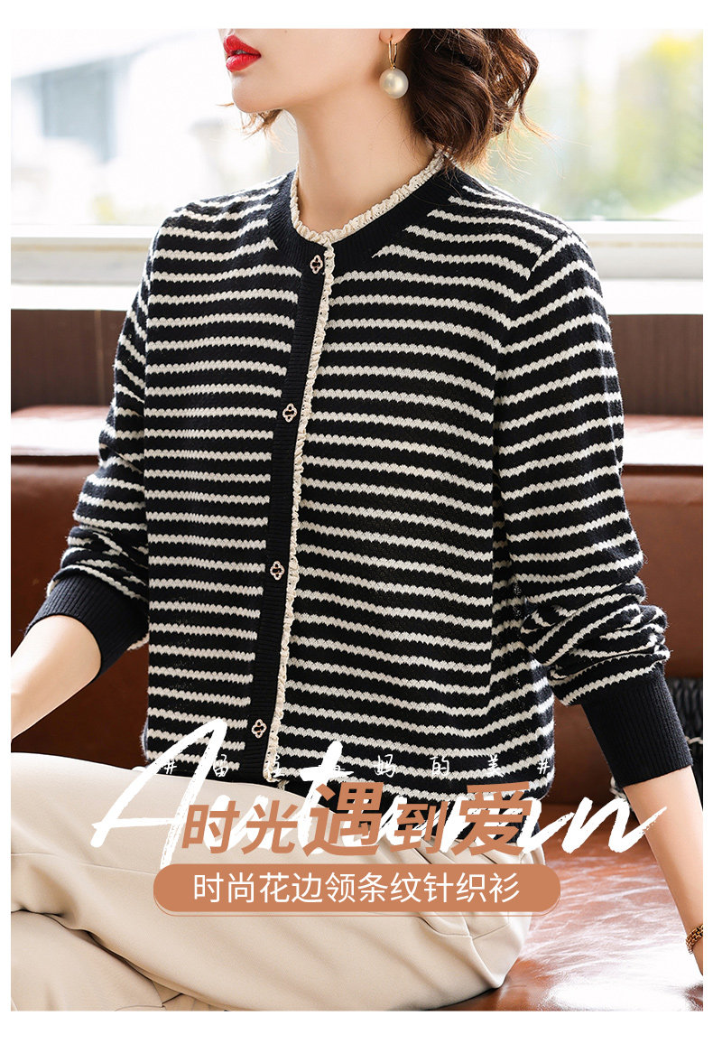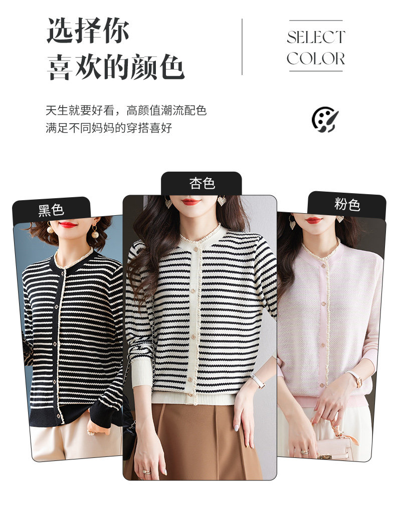妈妈春秋装洋气薄款打底衫中年女装新款中老年时尚条纹针织上衣服