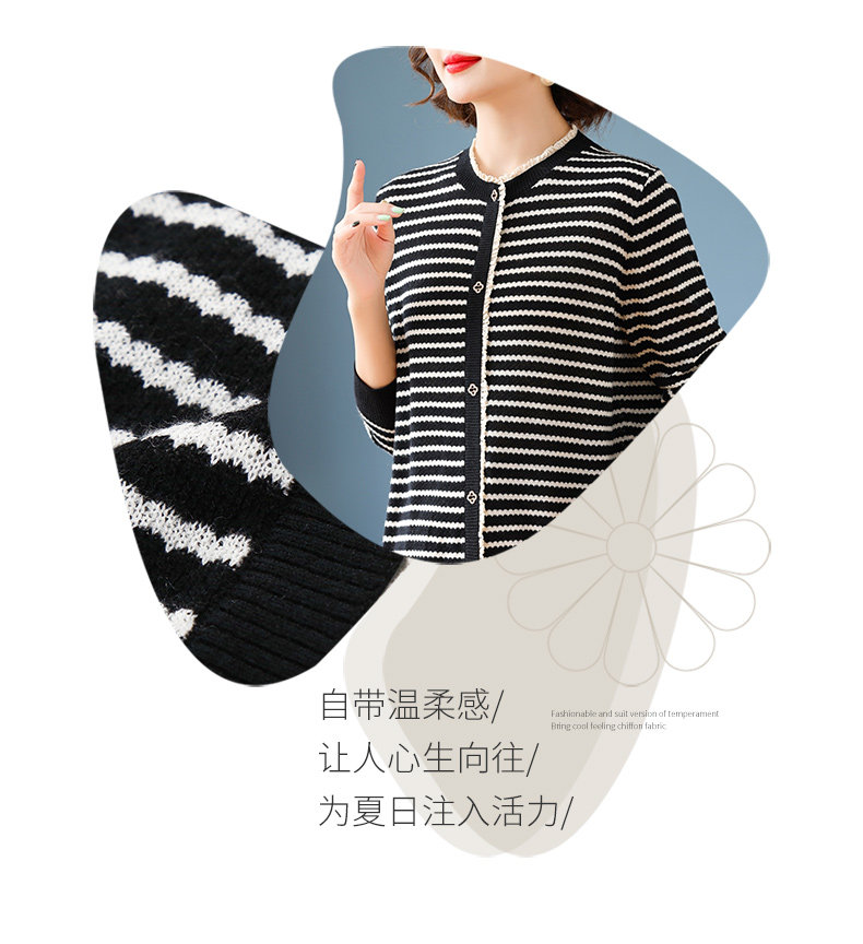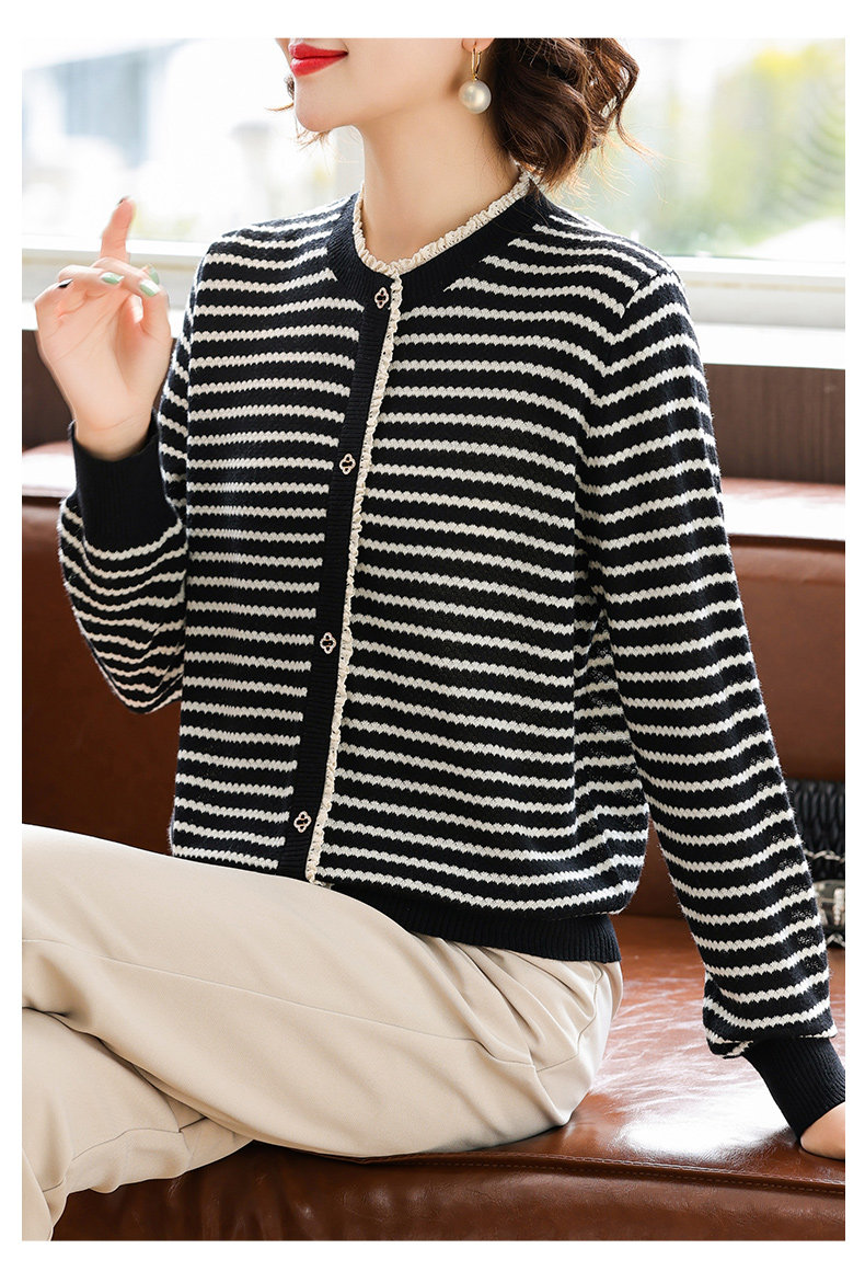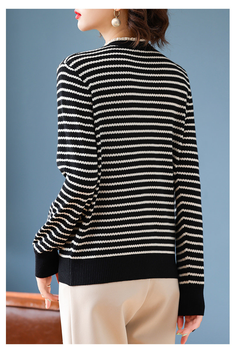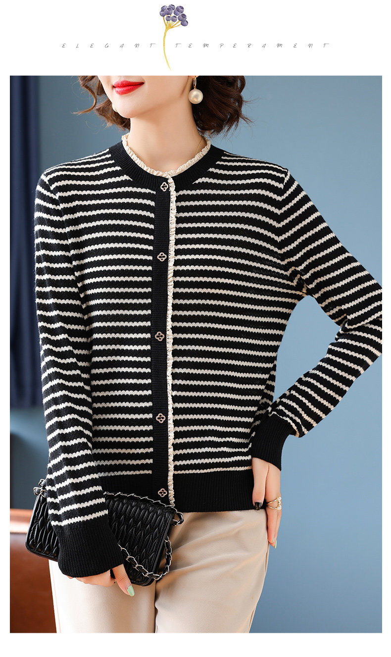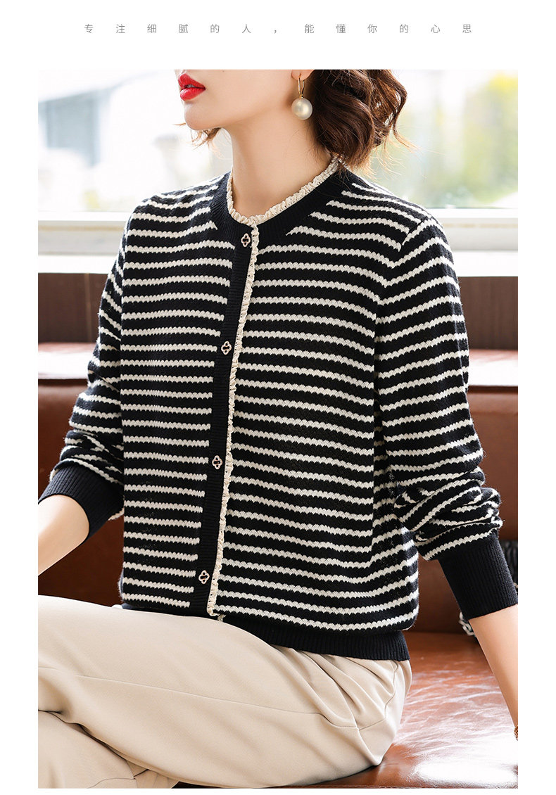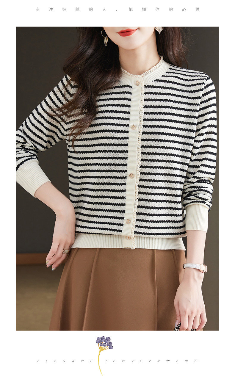妈妈春秋装洋气薄款打底衫中年女装新款中老年时尚条纹针织上衣服