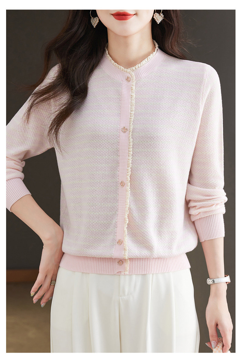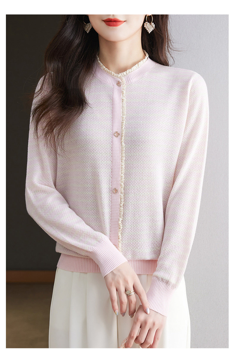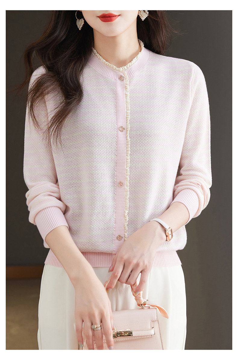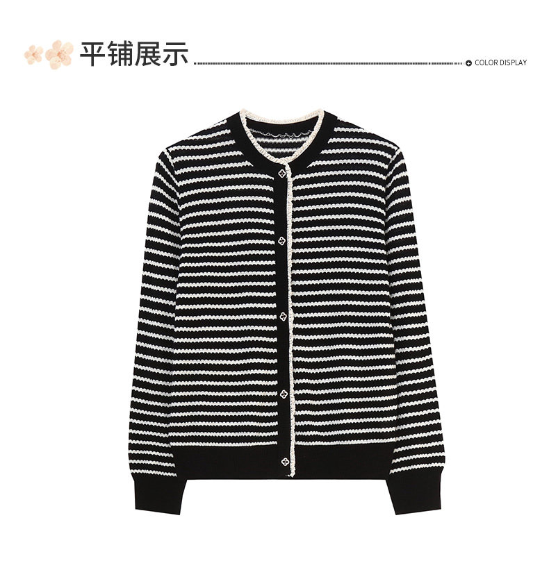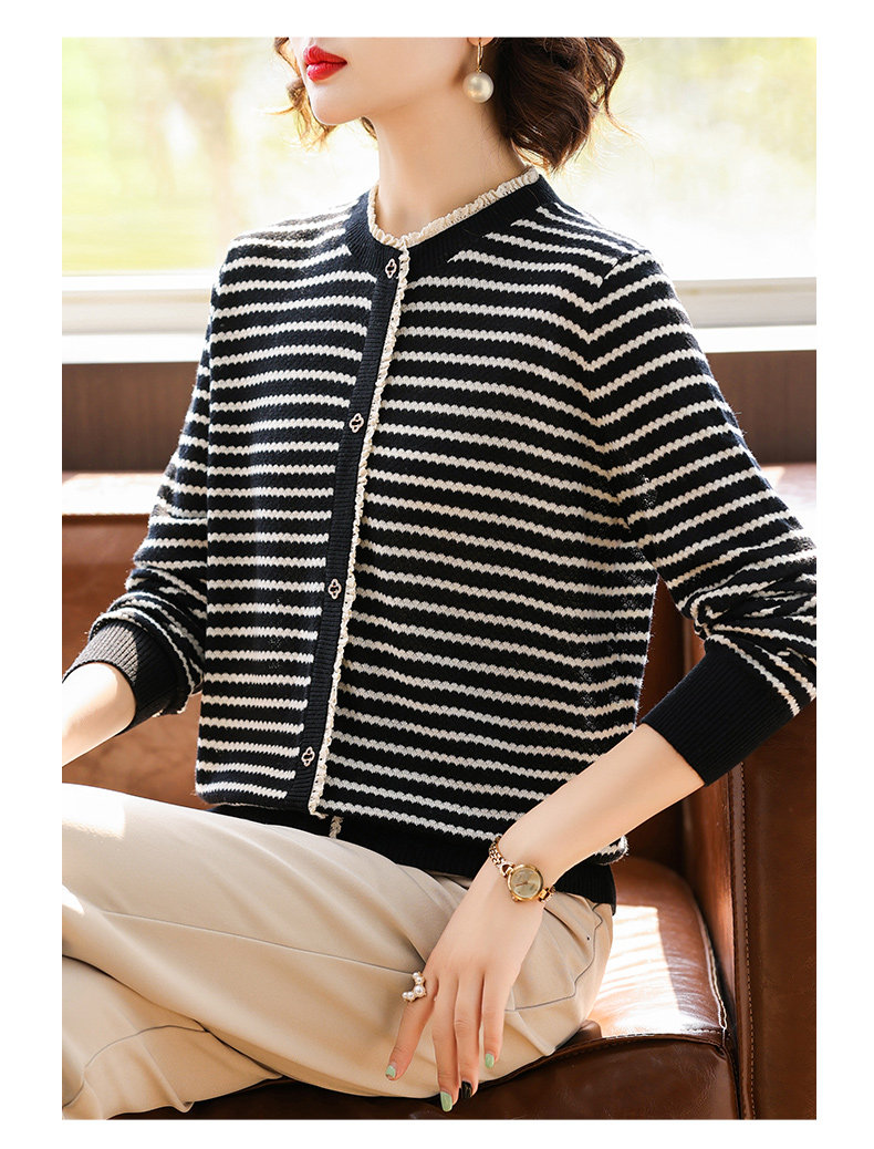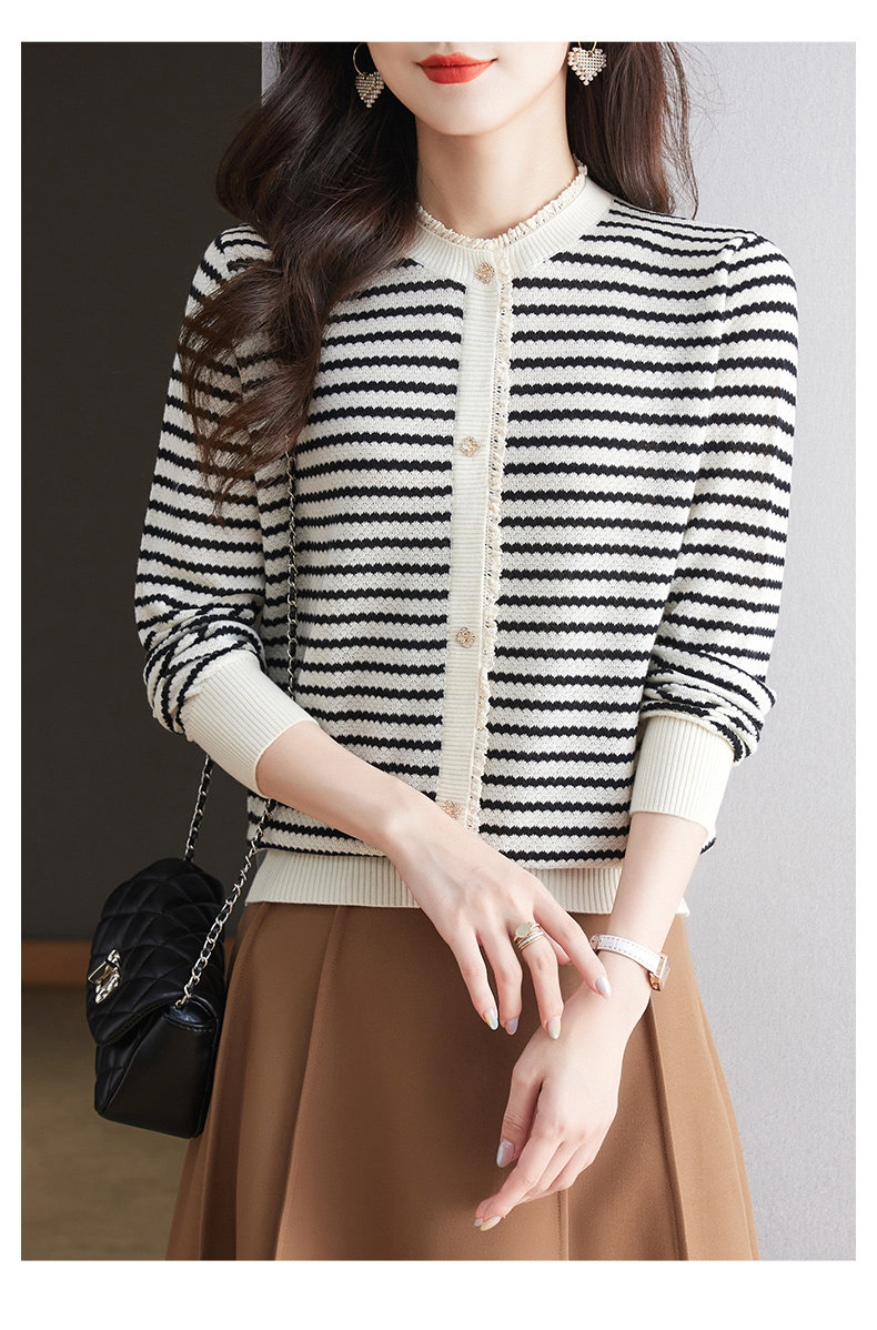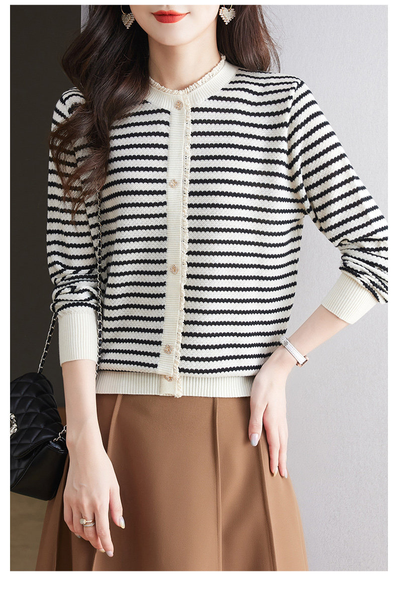 妈妈春秋装洋气薄款打底衫中年女装新款中老年时尚条纹针织上衣服