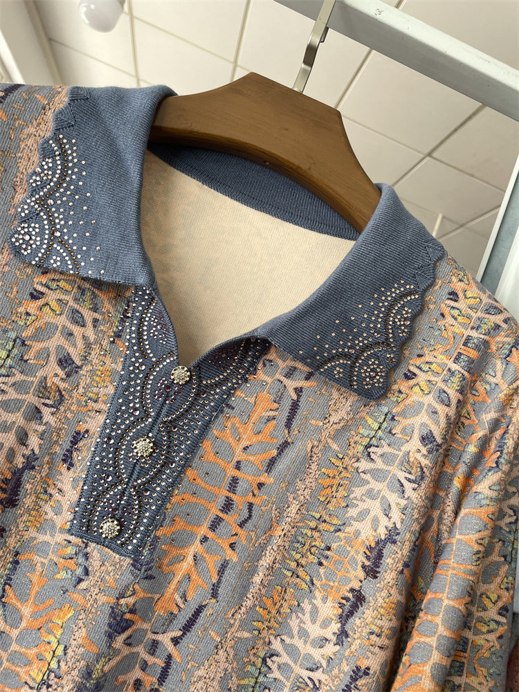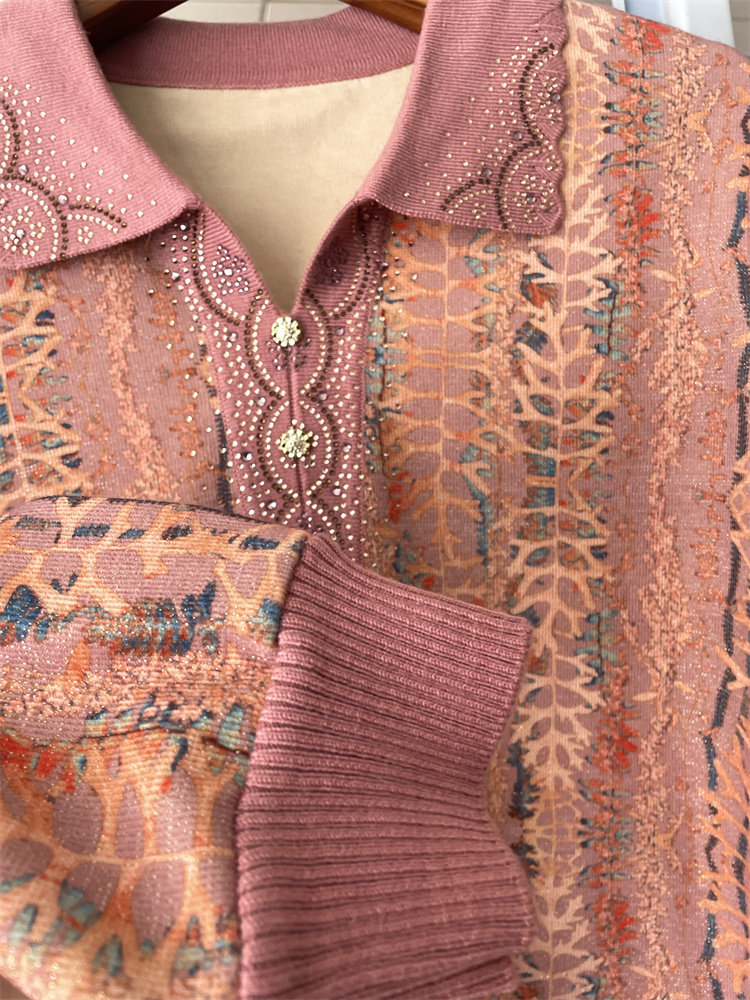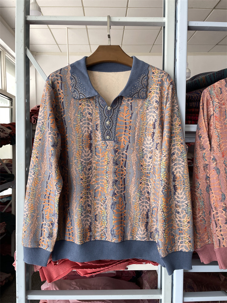 Mother's Autumn Polo Shirt with Floral Pattern, Long-Sleeved T-Shirt for Middle-Aged and Elderly Women, Grandma's Collared Base Shirt