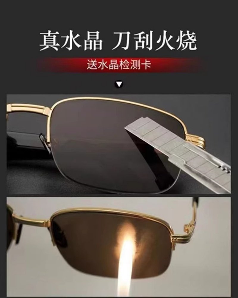 天然水晶石茶色平光250弯双曲面防紫外线抗辐射养眼太阳眼镜男女