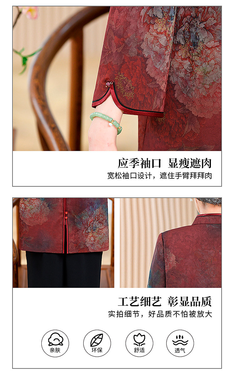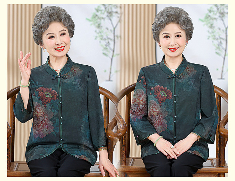 Autumn Clothing for the Elderly, Xiangyun Silk Tops, New Chinese Style Grandma Clothes, Plus Size Women's Clothing, Silk Shirts for 60-Year-Old Mothers
