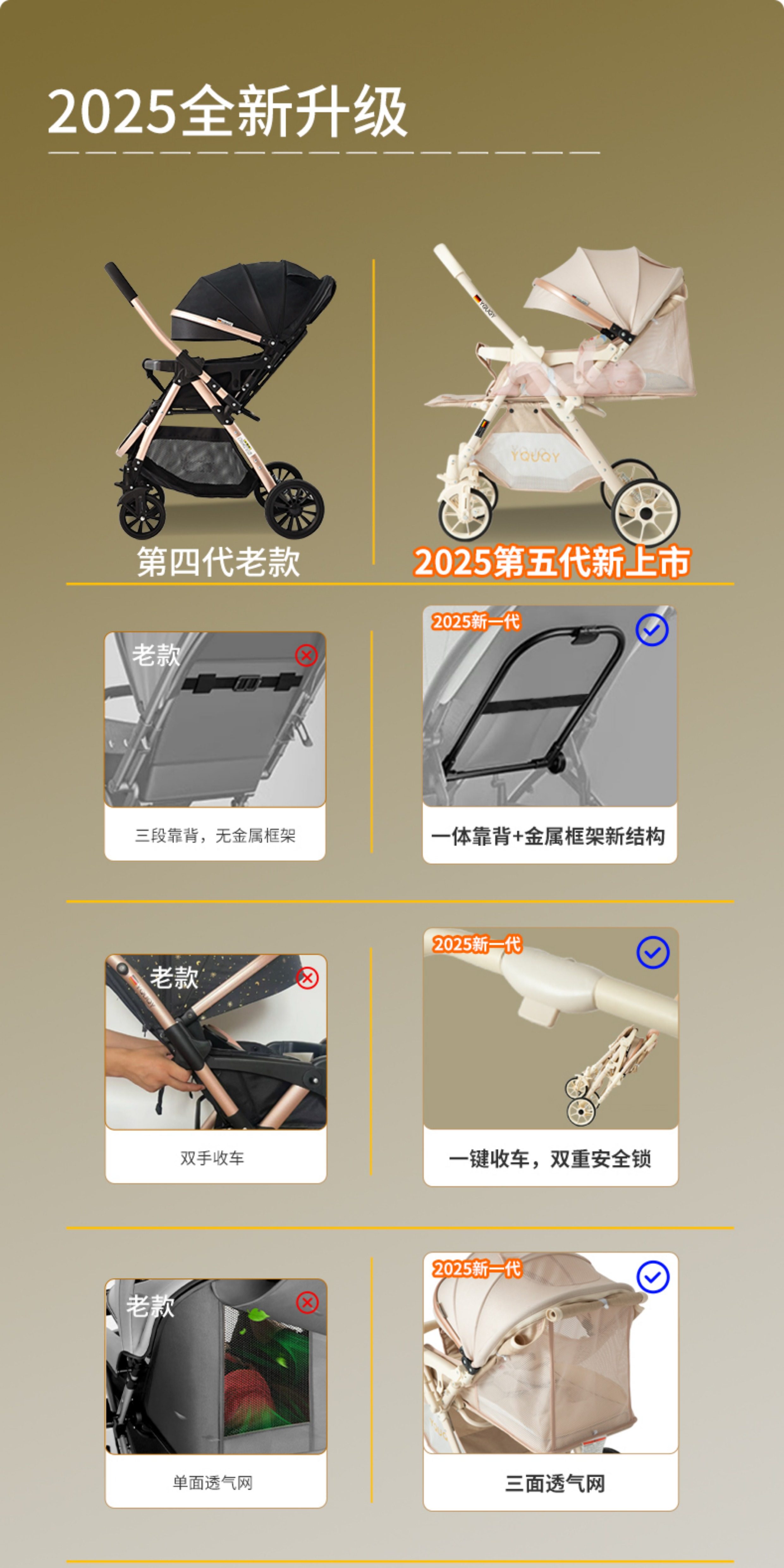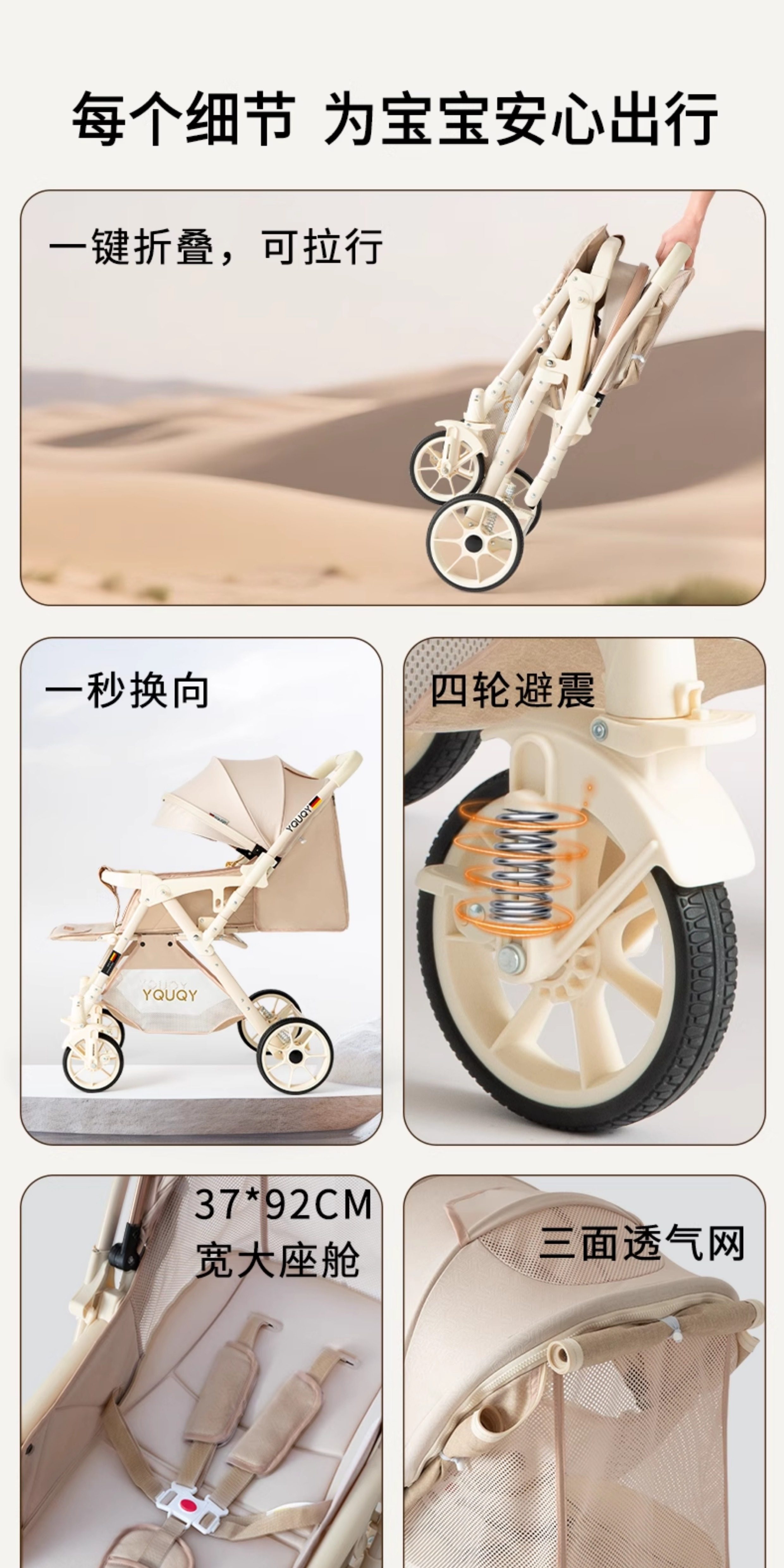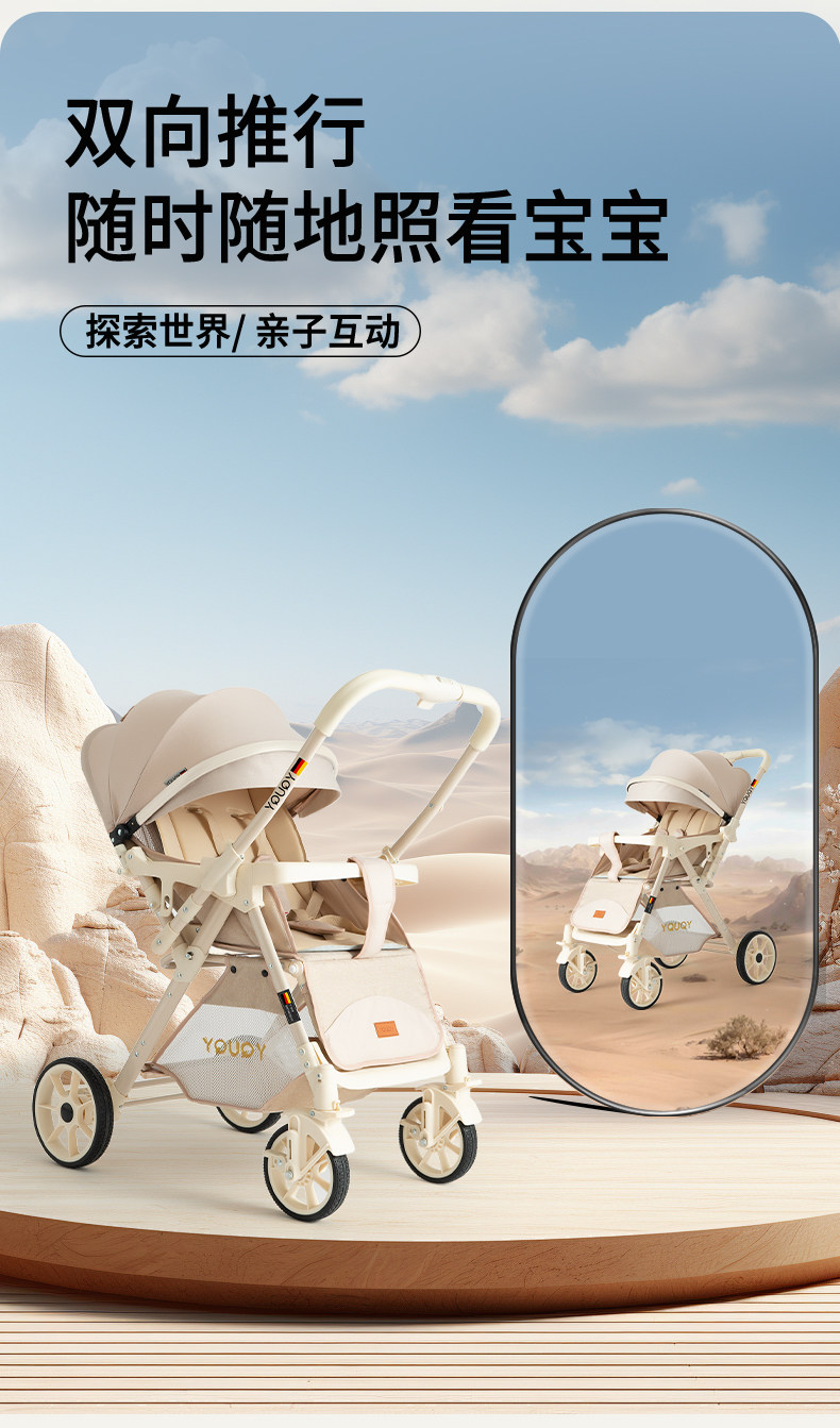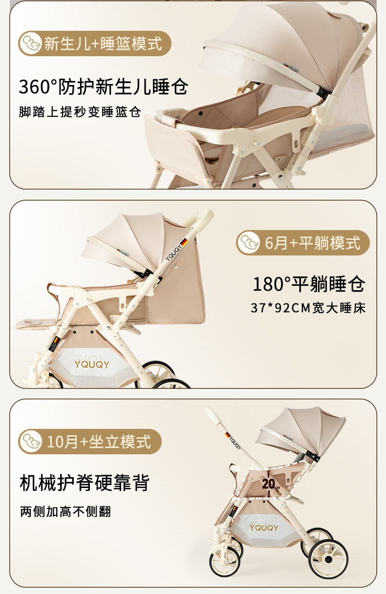 YQUQY El Cochecito De Bebé Puede Sentarse Y Acostarse, Cochecito Infantil Plegable De Dos Vías con Vista Alta para Bebé Recién Nacido De 0 A 3 Años