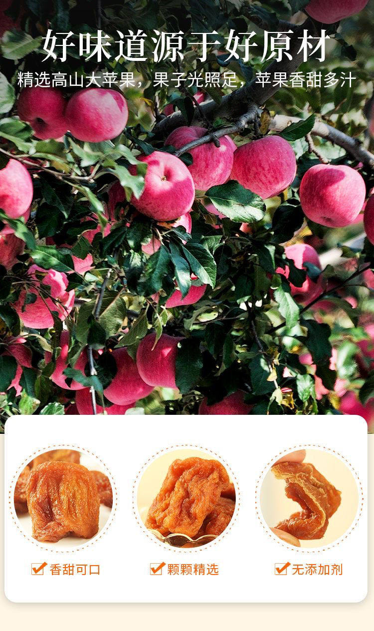 烟台苹果干不加糖三蒸三晒农家果脯办公休闲孕妇网红零食办公食品