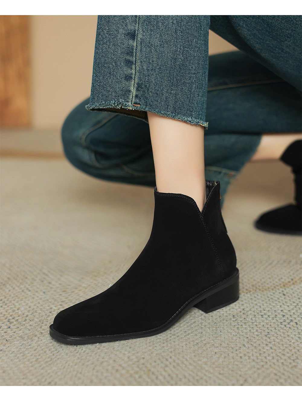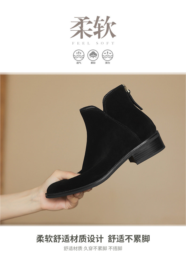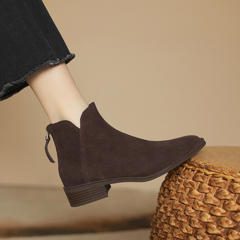 棕色翻毛皮短靴女2025新款春秋单靴中跟踝靴磨砂裸靴加绒41大码43