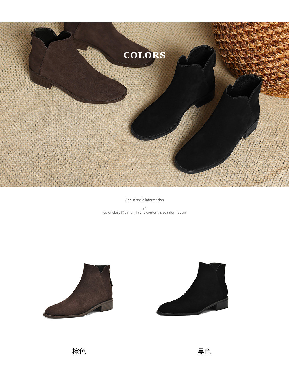 颜色分类 黑色(单里),棕色(单里),黑色(薄绒),棕色(薄绒)