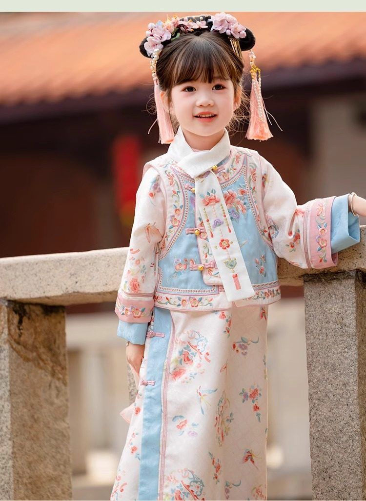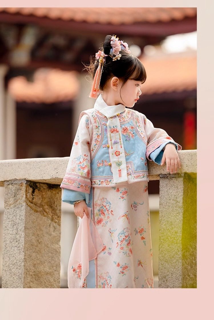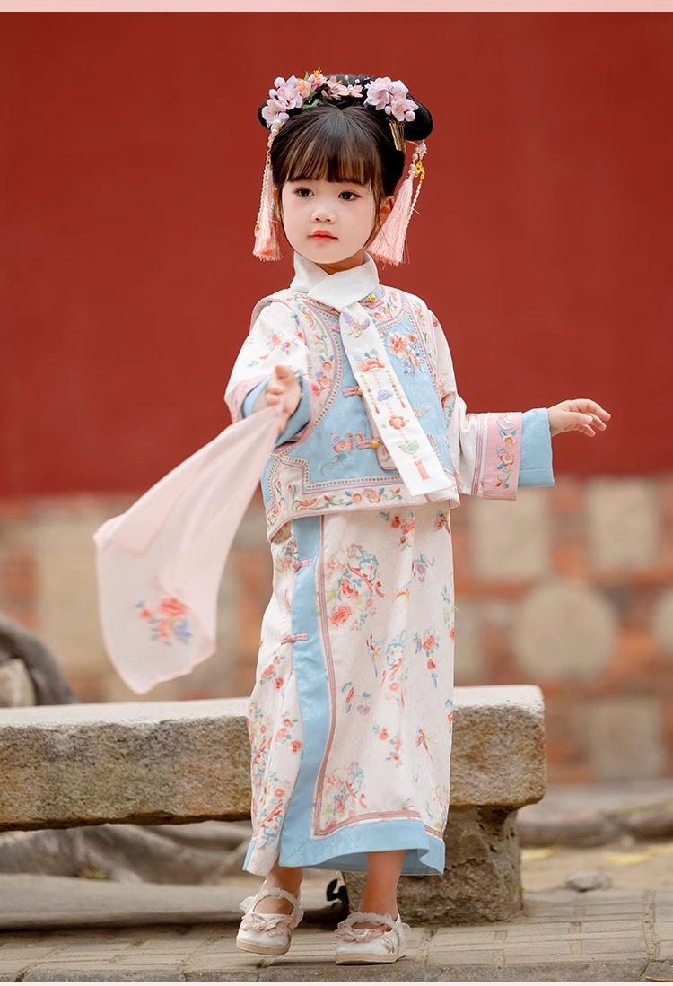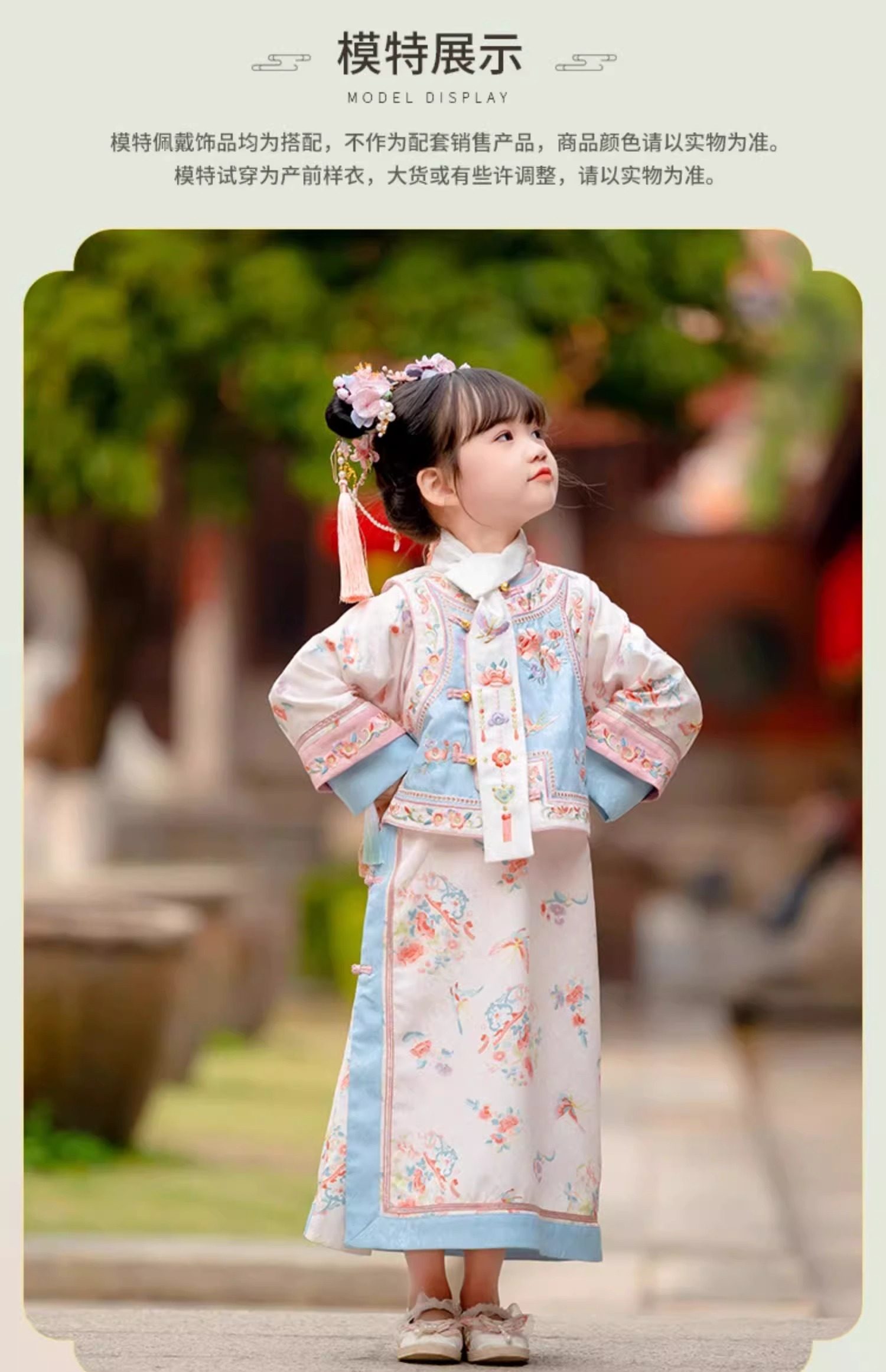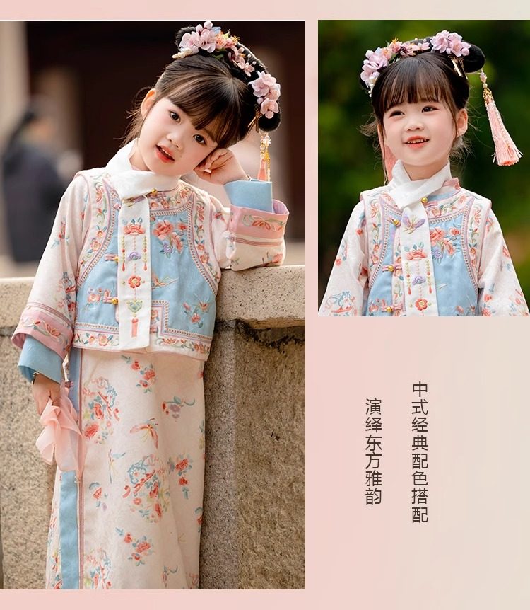 Cheongsam rosa de estilo de la dinastía Qing para niña, traje étnico Tang Manchu acolchado Hanfu para bebé, otoño e invierno, para mujer