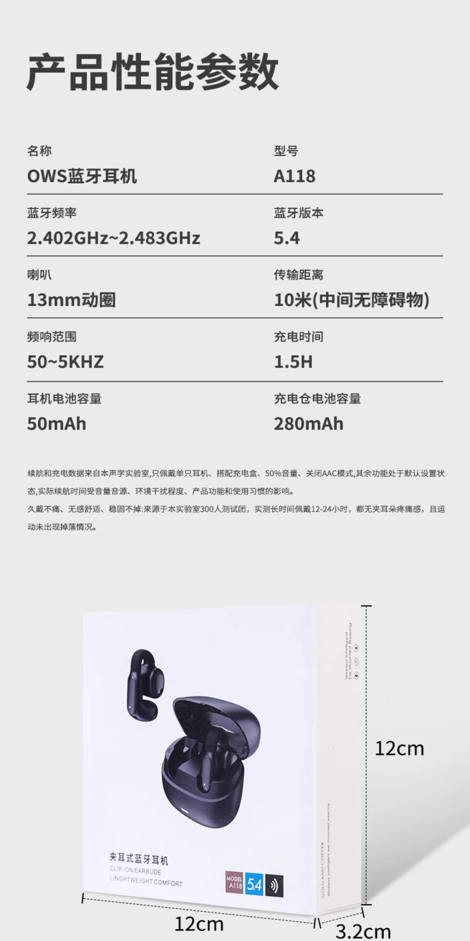 德国高端气骨传导蓝牙耳机无线高品质运动长续航不入耳跑步夹耳式