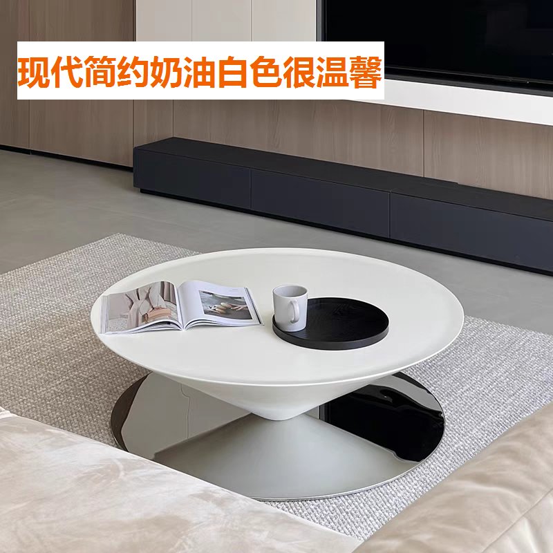Новый журнальный столик в французском стиле, кремового цвета, в форме НЛО, конический, минималистичный, для гостиной, домашний, из мрамора.