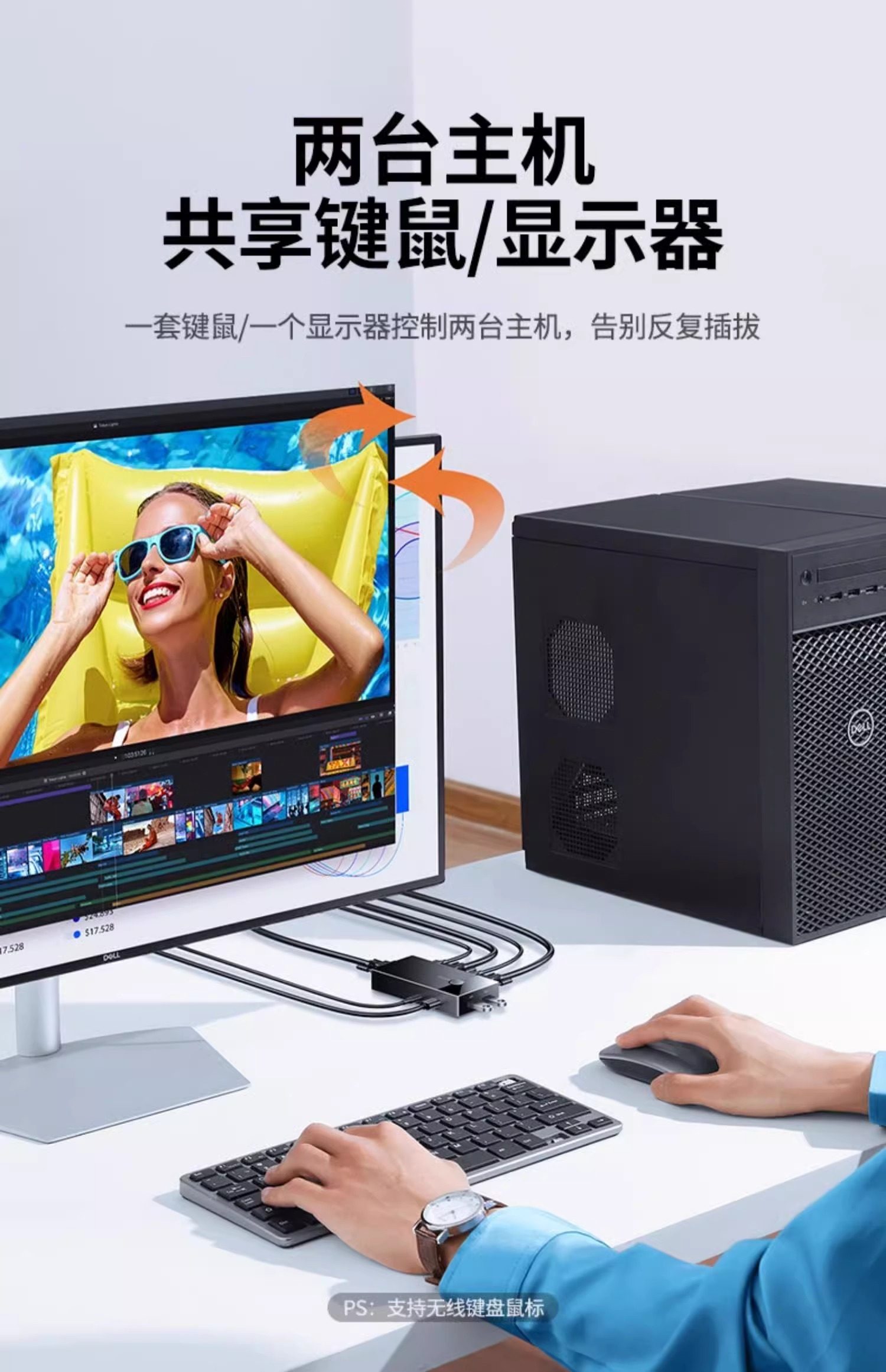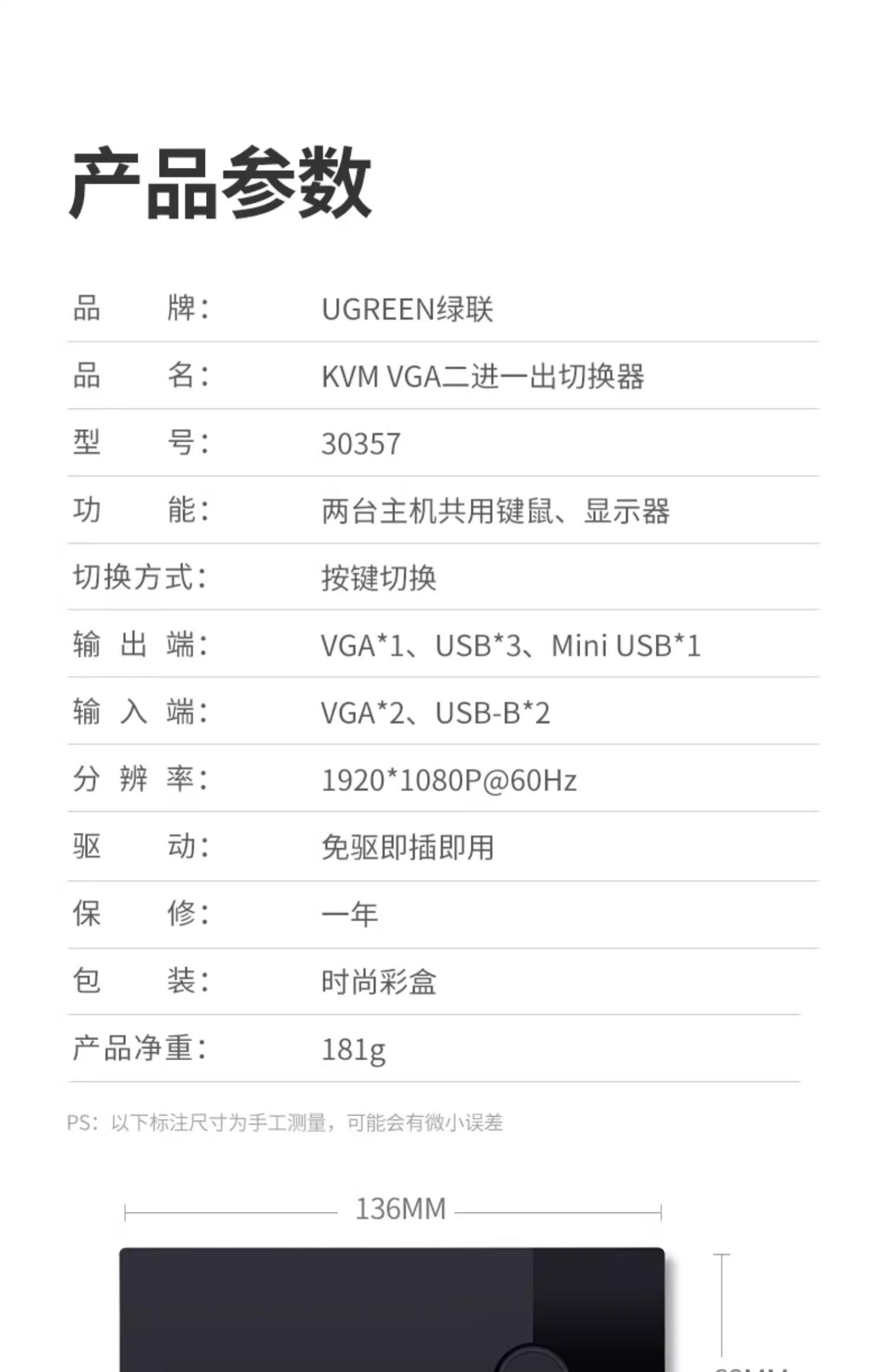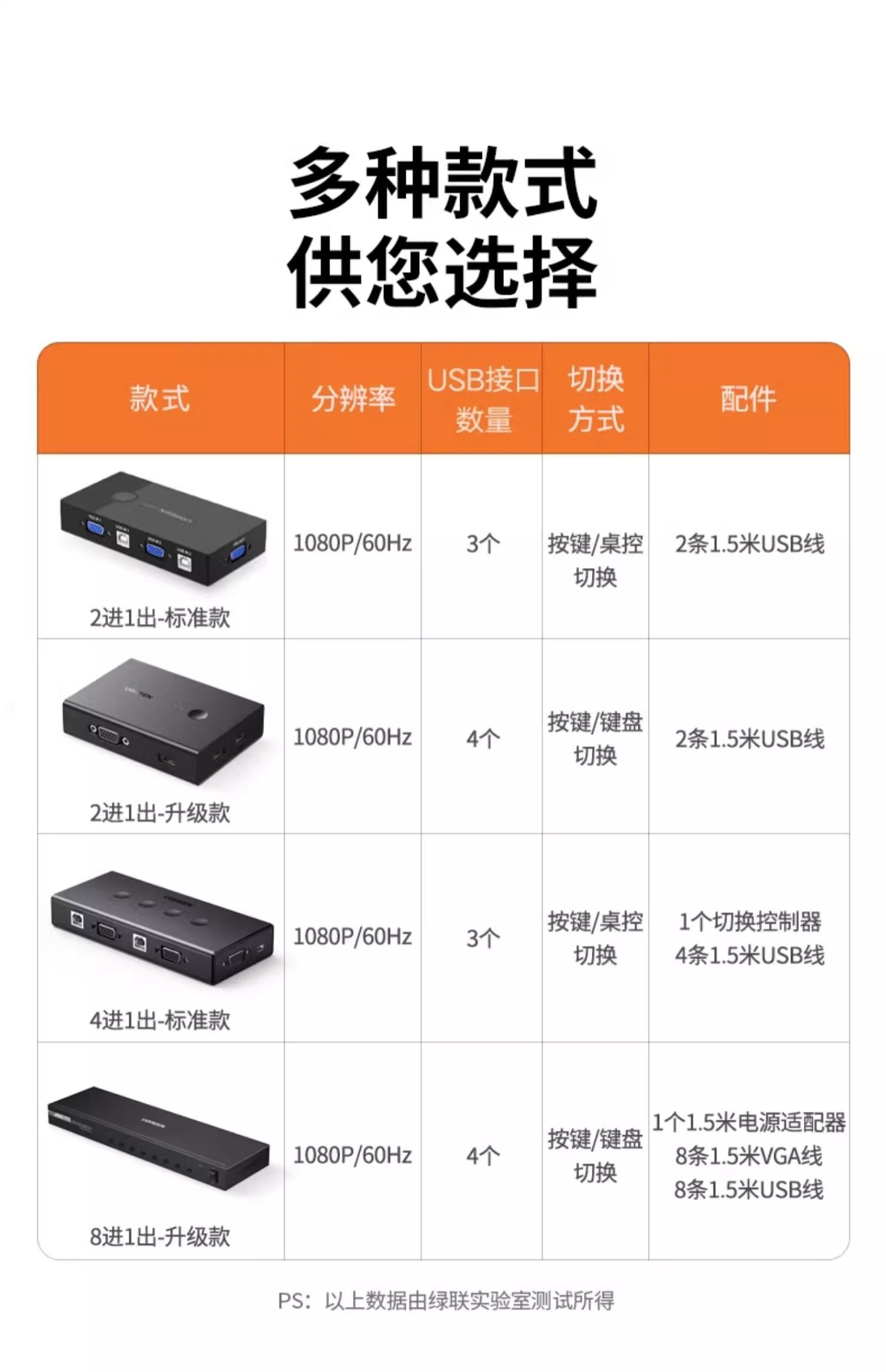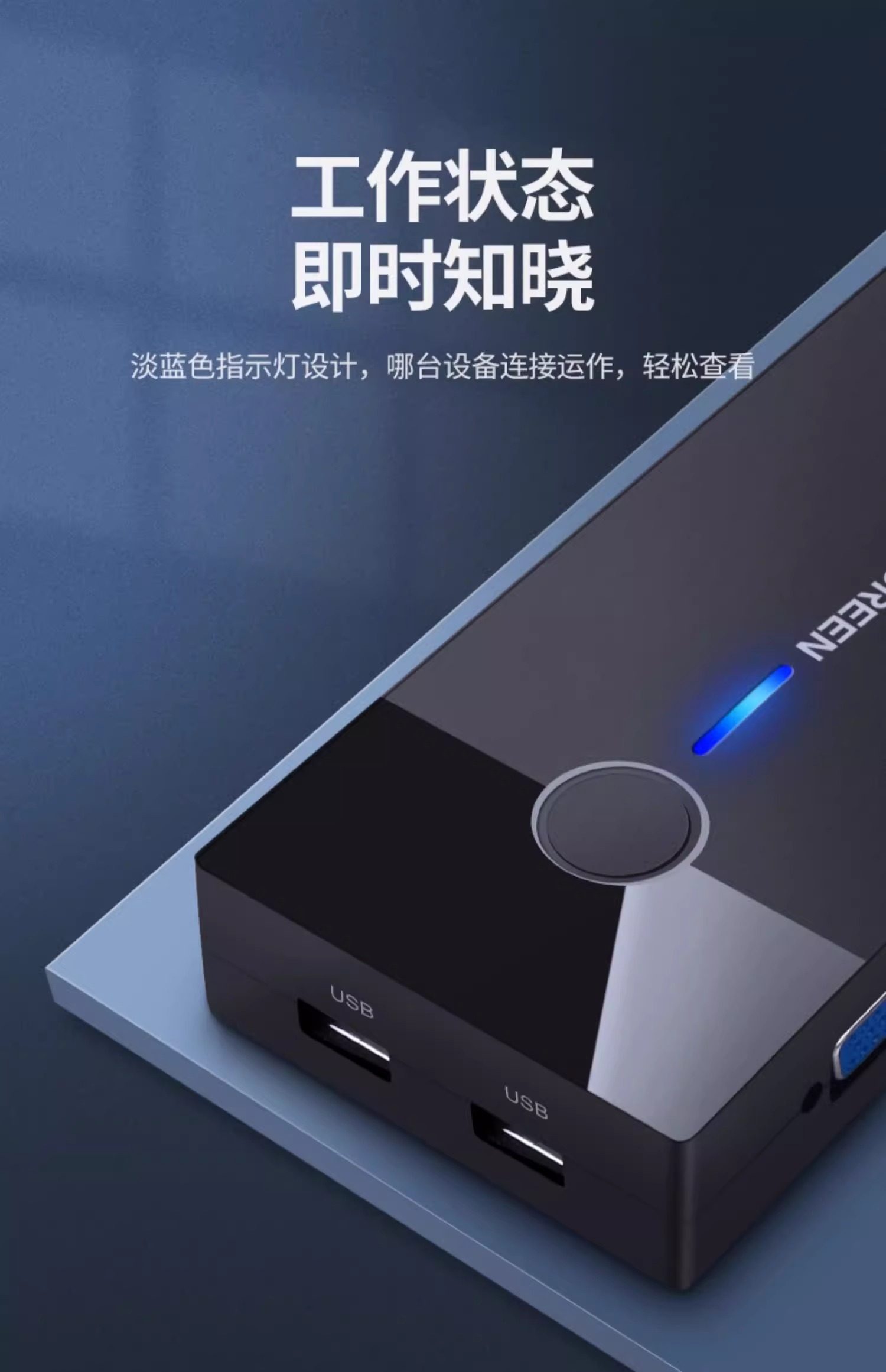 Clasificación de colores 2 entradas y 1 salida: conmutador KVM estándar con botones (con 3 puertos USB),El paquete estándar viene con 1 cable VGA de 1 metro,El paquete estándar viene con 2 cables VGA de 1 metro