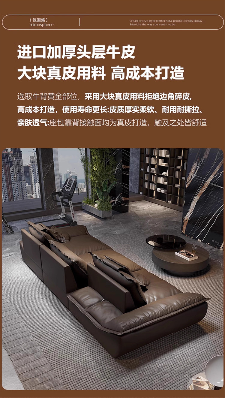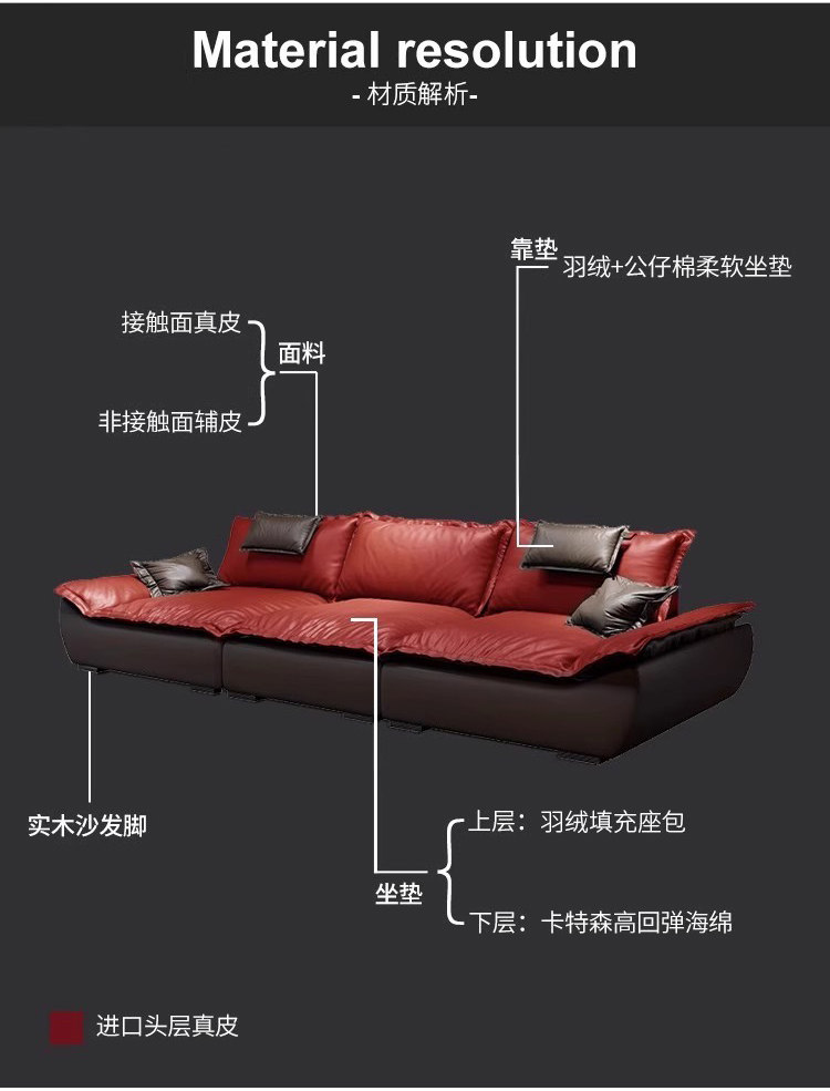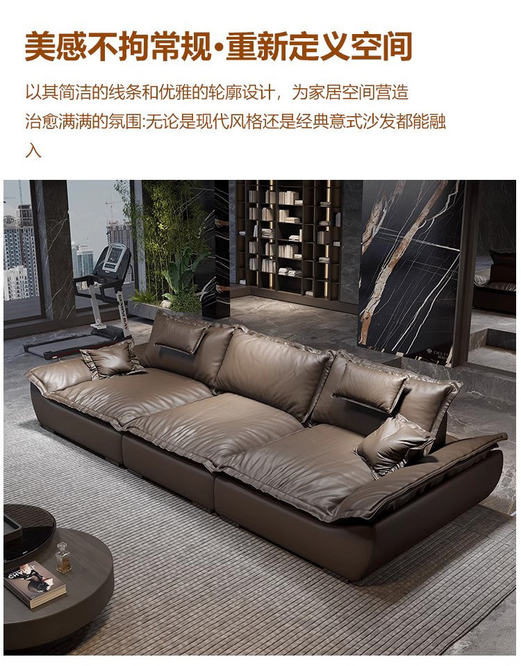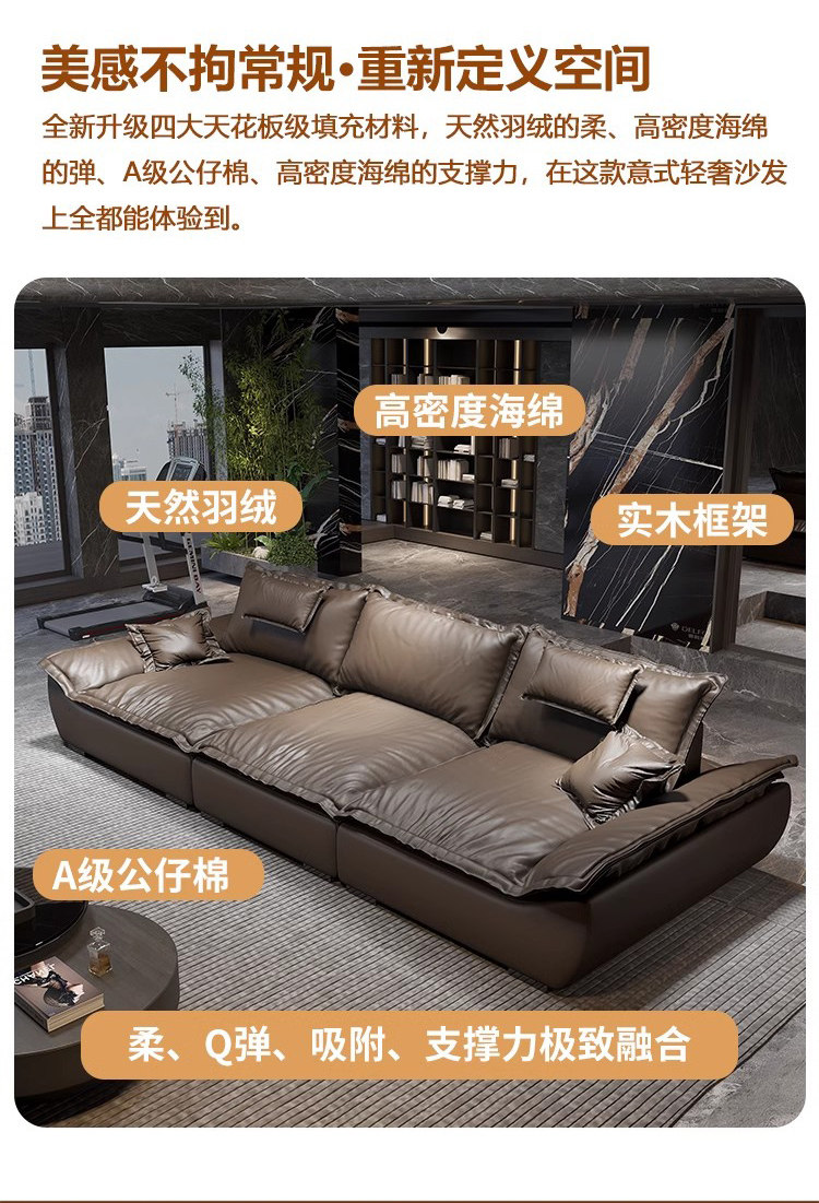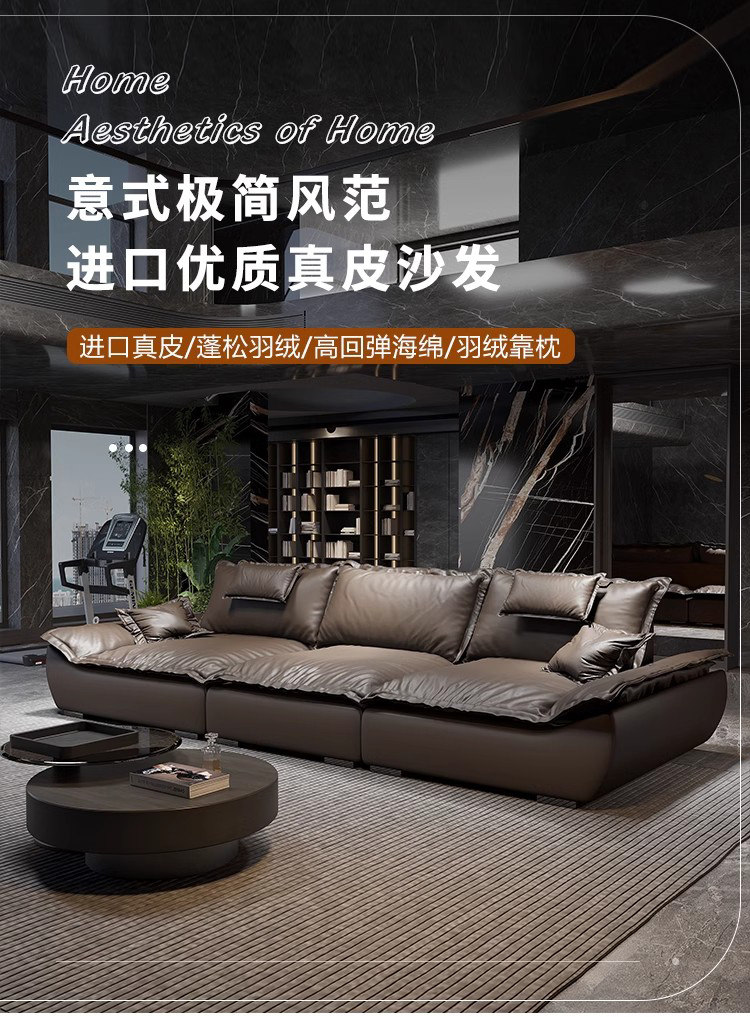 Sofá de cuero minimalista italiano Shixi, pequeño apartamento, sala de estar minimalista moderna, muebles de sofá rectos de cuero para el hogar