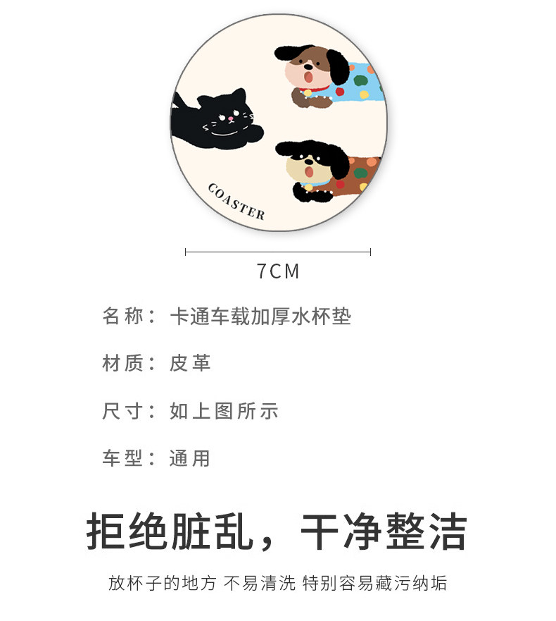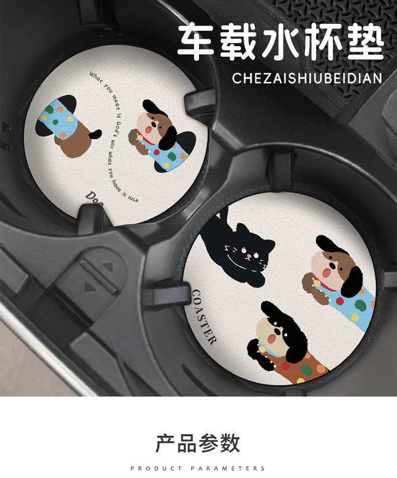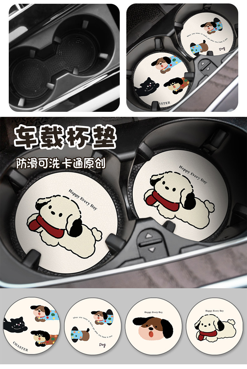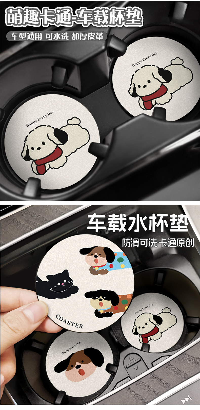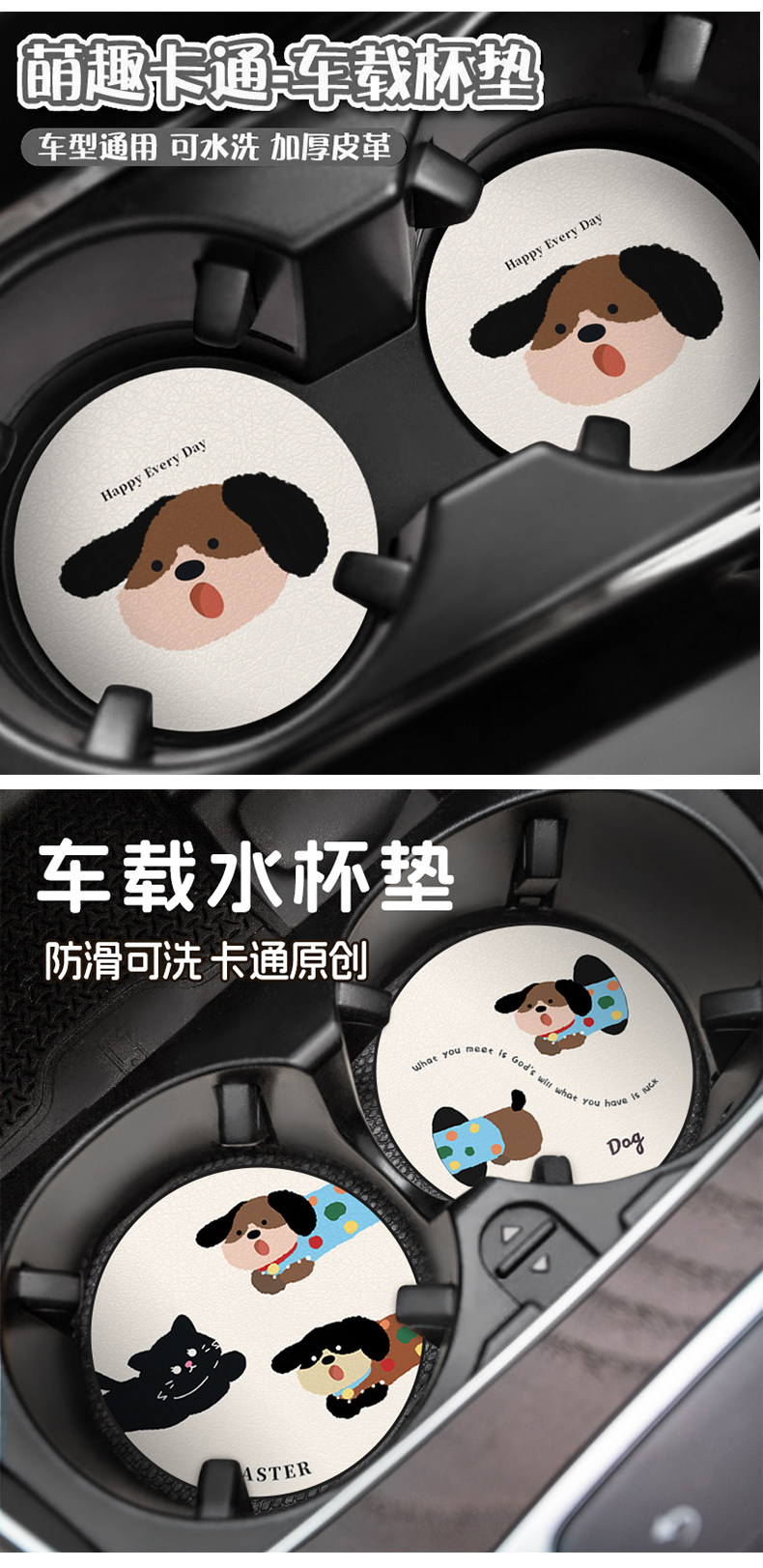 Cartoon Dachshund Car Cup Holder Universal Car Cup Mat Leather Storage Slot Cup Mat Car Interior Decoration