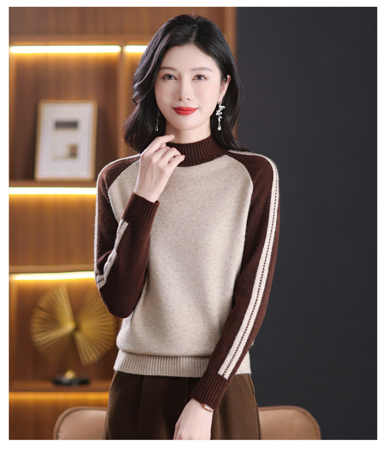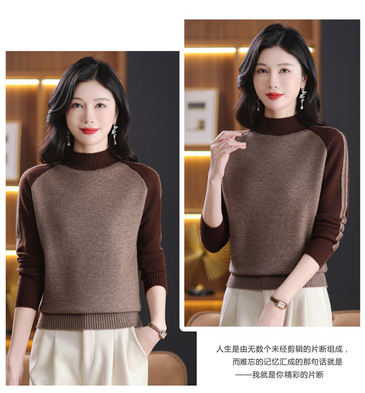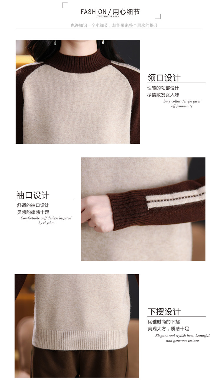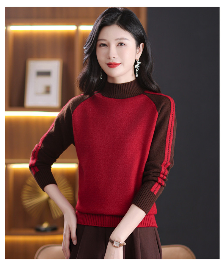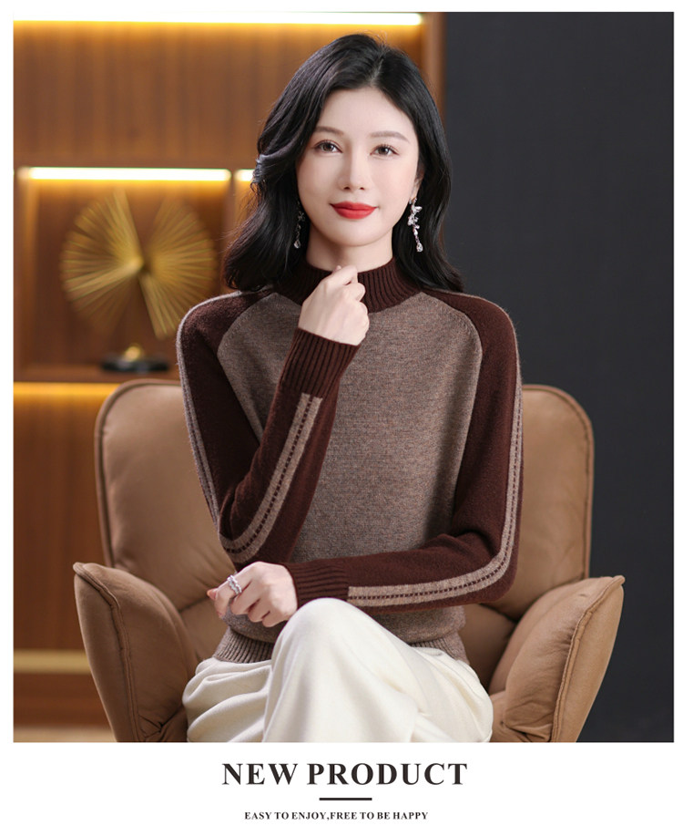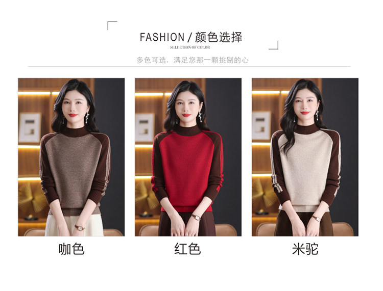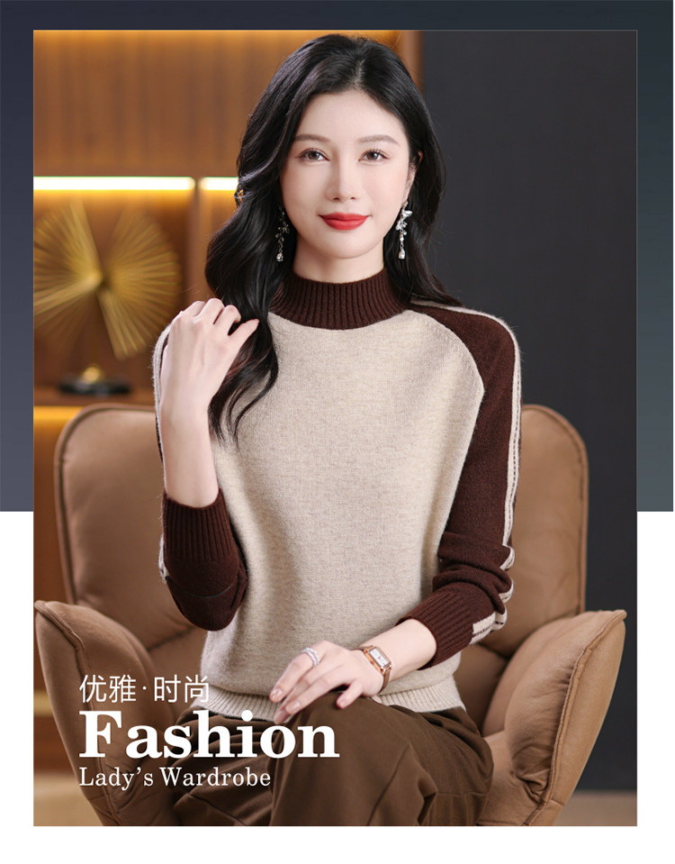 New Color-Blocked Wool Sweater for Women, Winter Thickened Half-High Collar Loose Knit Base Shirt, Stylish and Elegant Women's Sweater