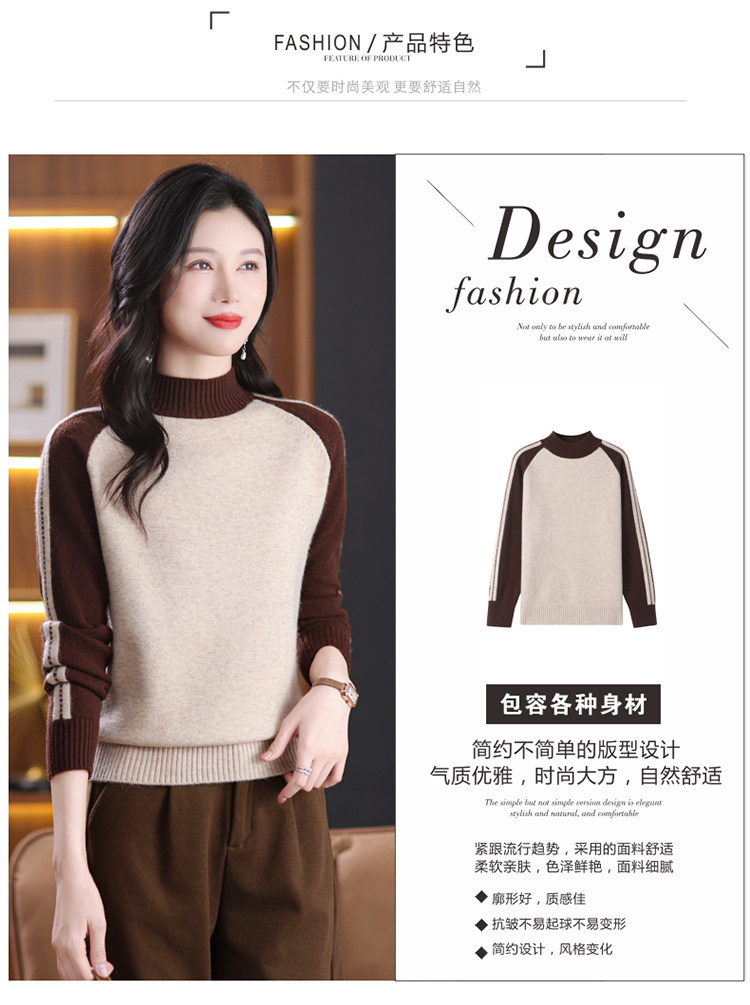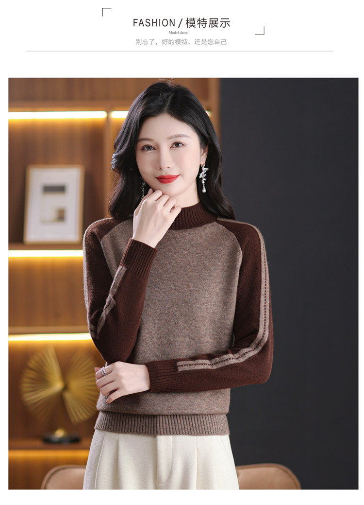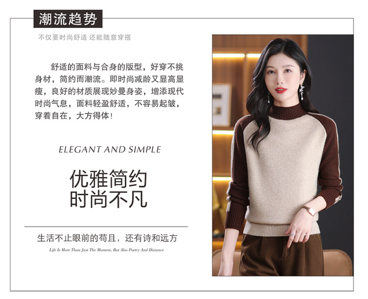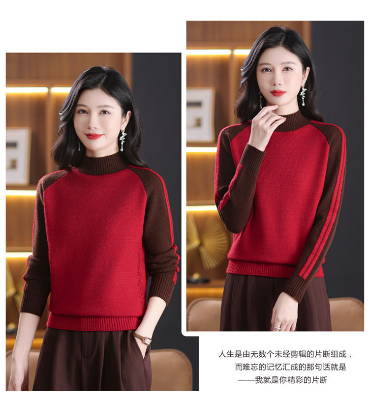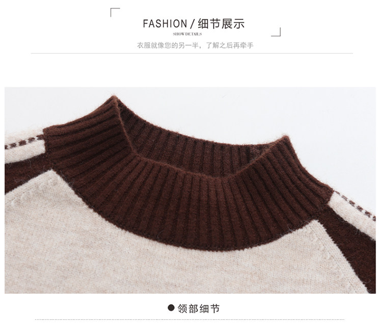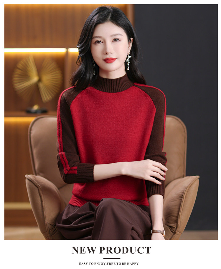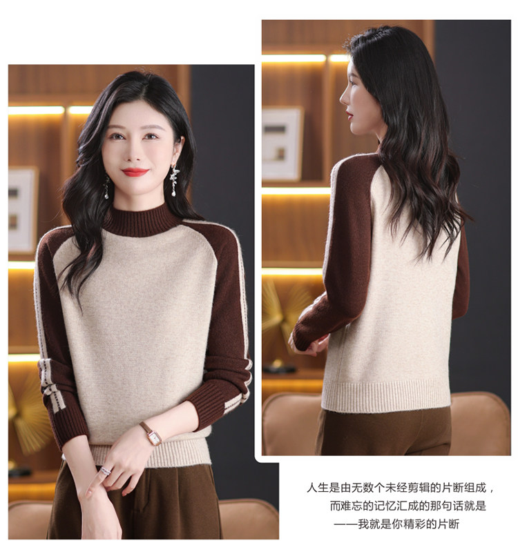 New Color-Blocked Wool Sweater for Women, Winter Thickened Half-High Collar Loose Knit Base Shirt, Stylish and Elegant Women's Sweater