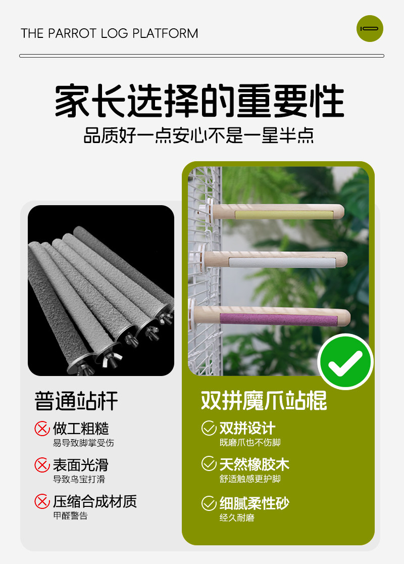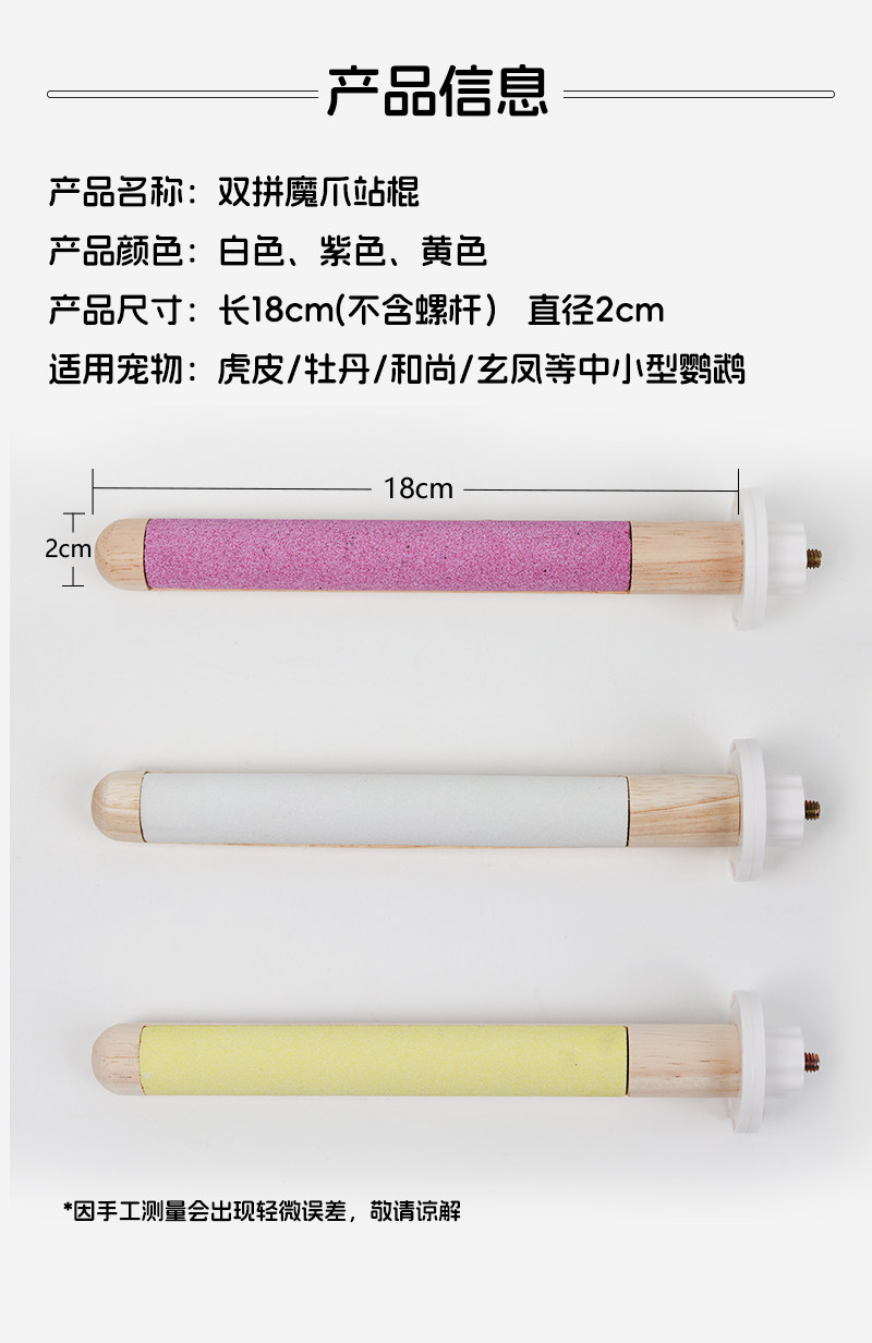 咔昂星鹦鹉站杆双拼魔爪站棍磨砂小鸟站架虎皮玄凤牡丹专用品玩具