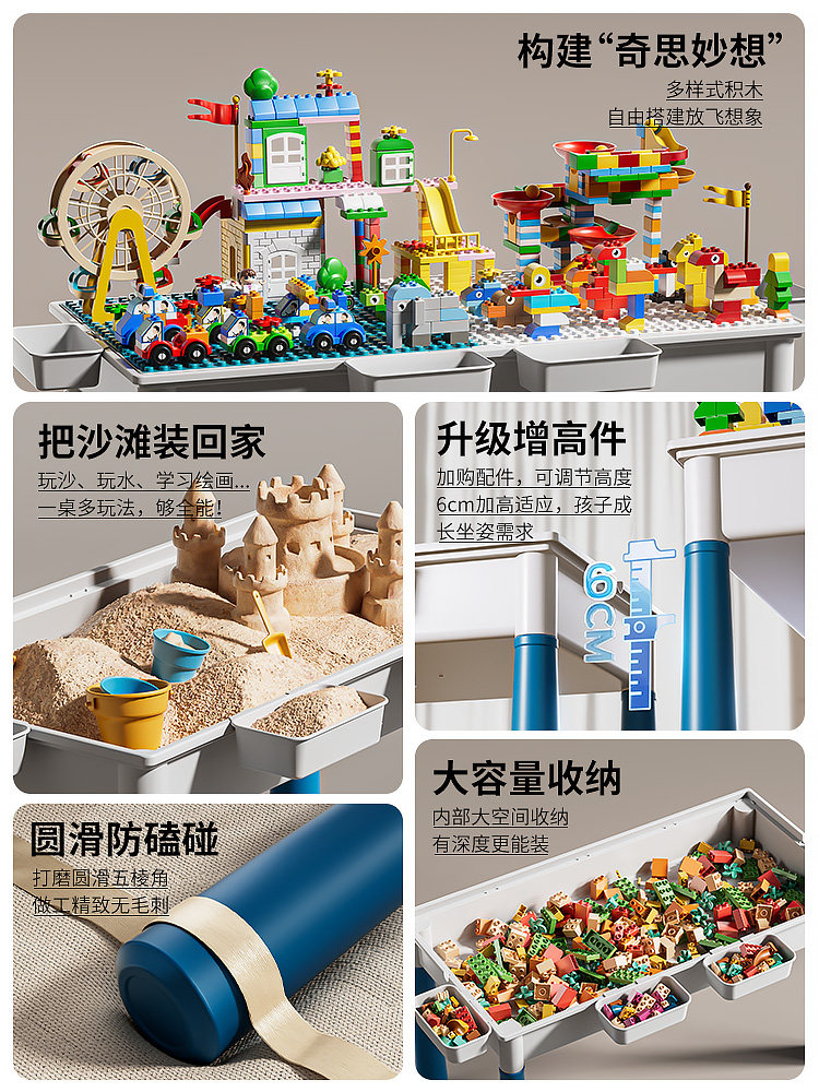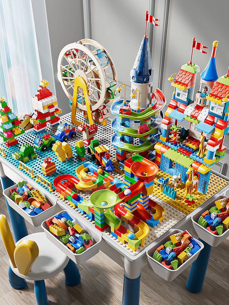 Mesa de bloques de construcción Mesa de juguete educativo ensamblada multifuncional para niños de 6 a 12 años Partículas grandes 3 Regalo de cumpleaños para bebés