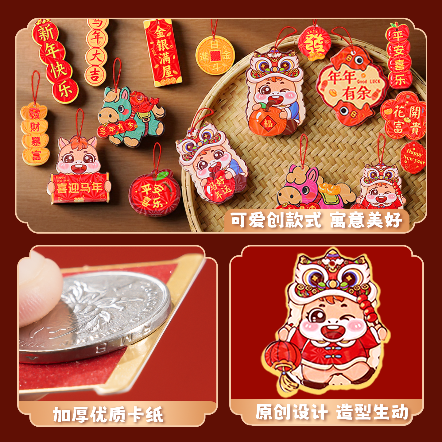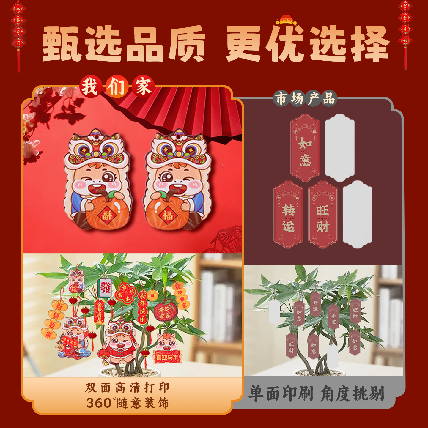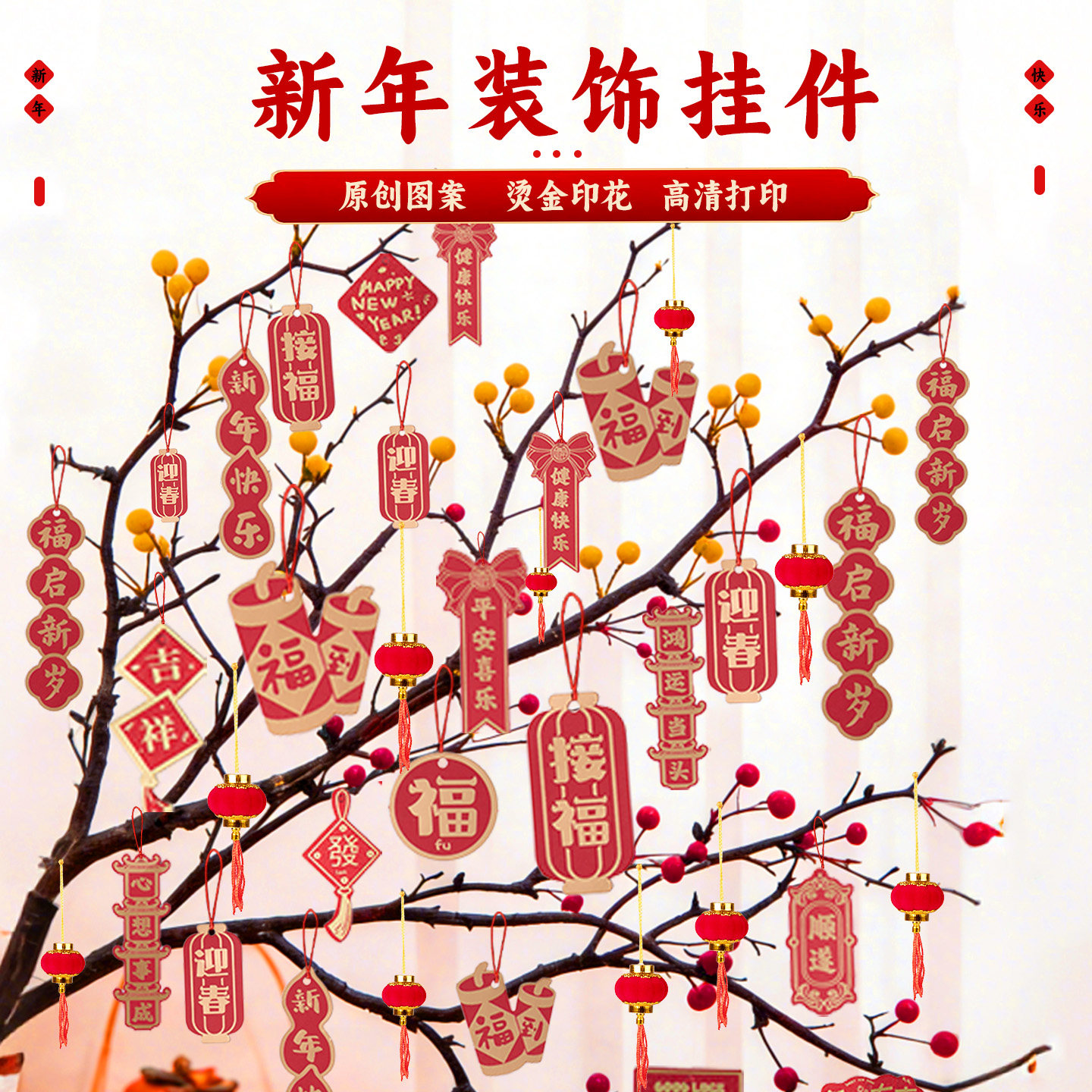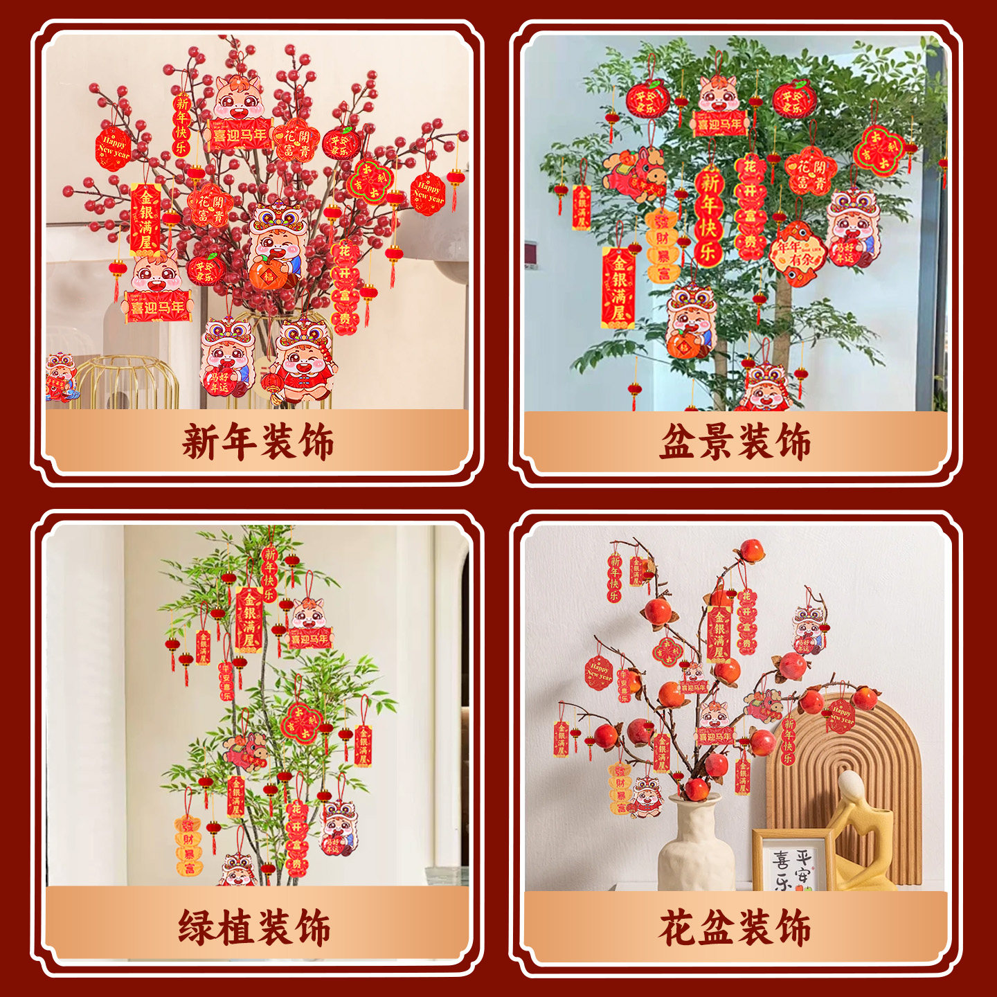 2026新年装饰挂件发财树盆景绿植树上小灯笼挂饰马年过年氛围布置